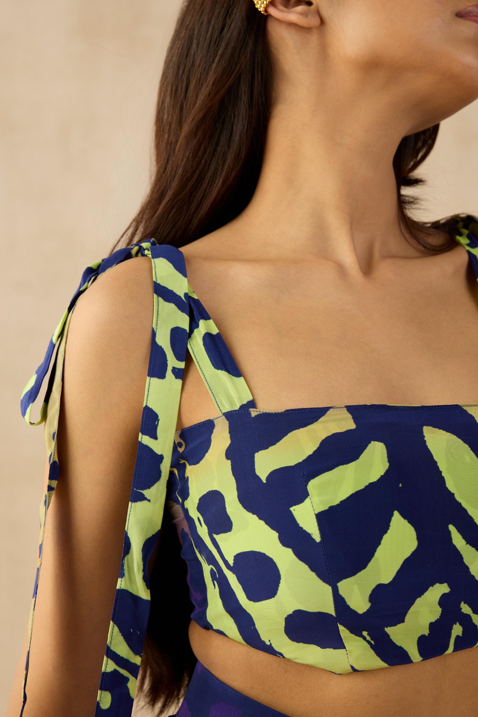 The Bali Tie-Up Top is where effortless charm meets bold style. Designed in a vibrant animal print, this cropped top features adjustable tie-up straps, allowing for a customizable fit that flatters every body type. The square neckline and structured silhouette add a touch of elegance, making it the perfect blend of comfort and sophistication. Pair it with the Bali Skirt for a statement co-ord look or style it with high-waisted pants for a chic, versatile outfit.