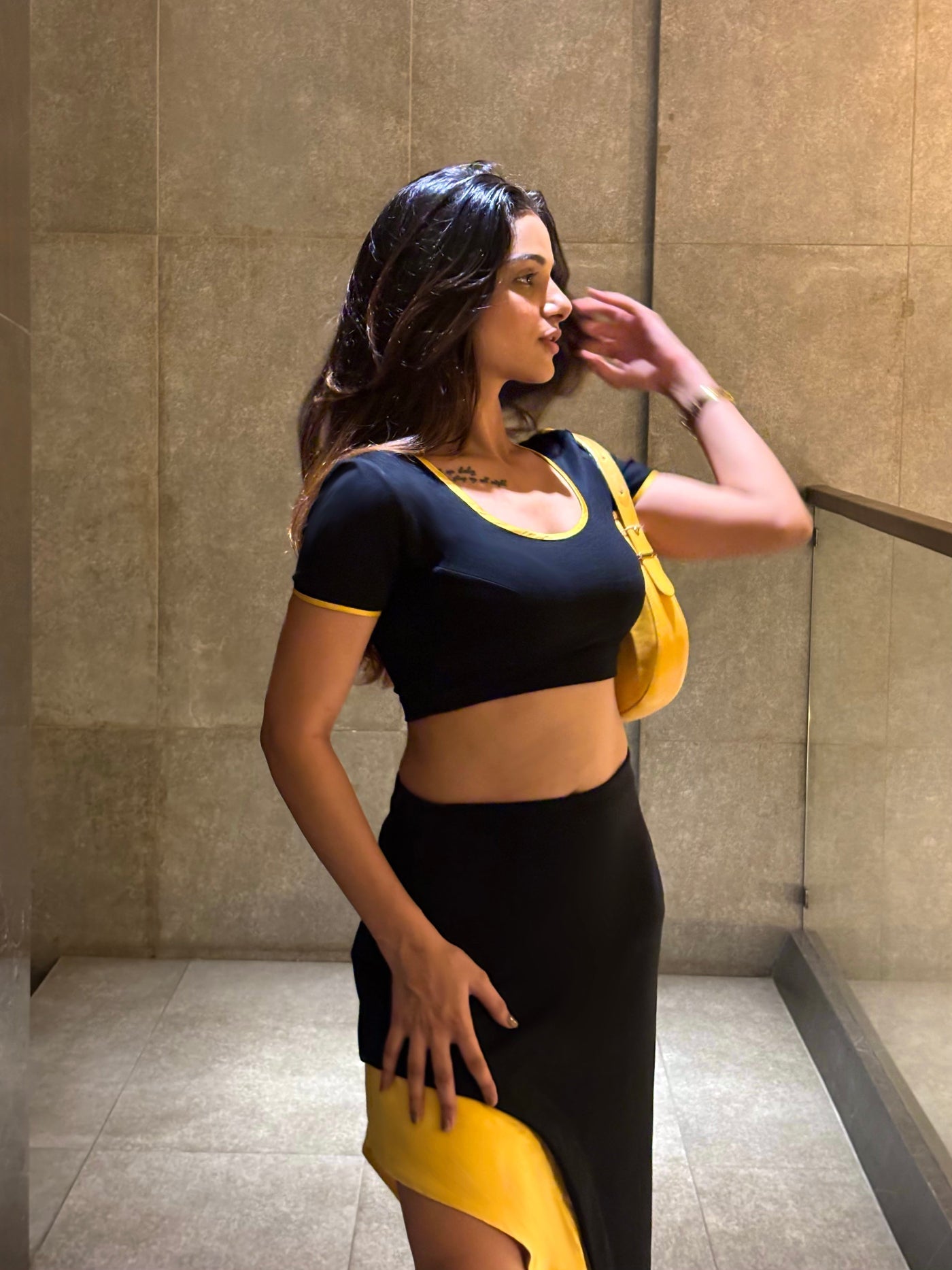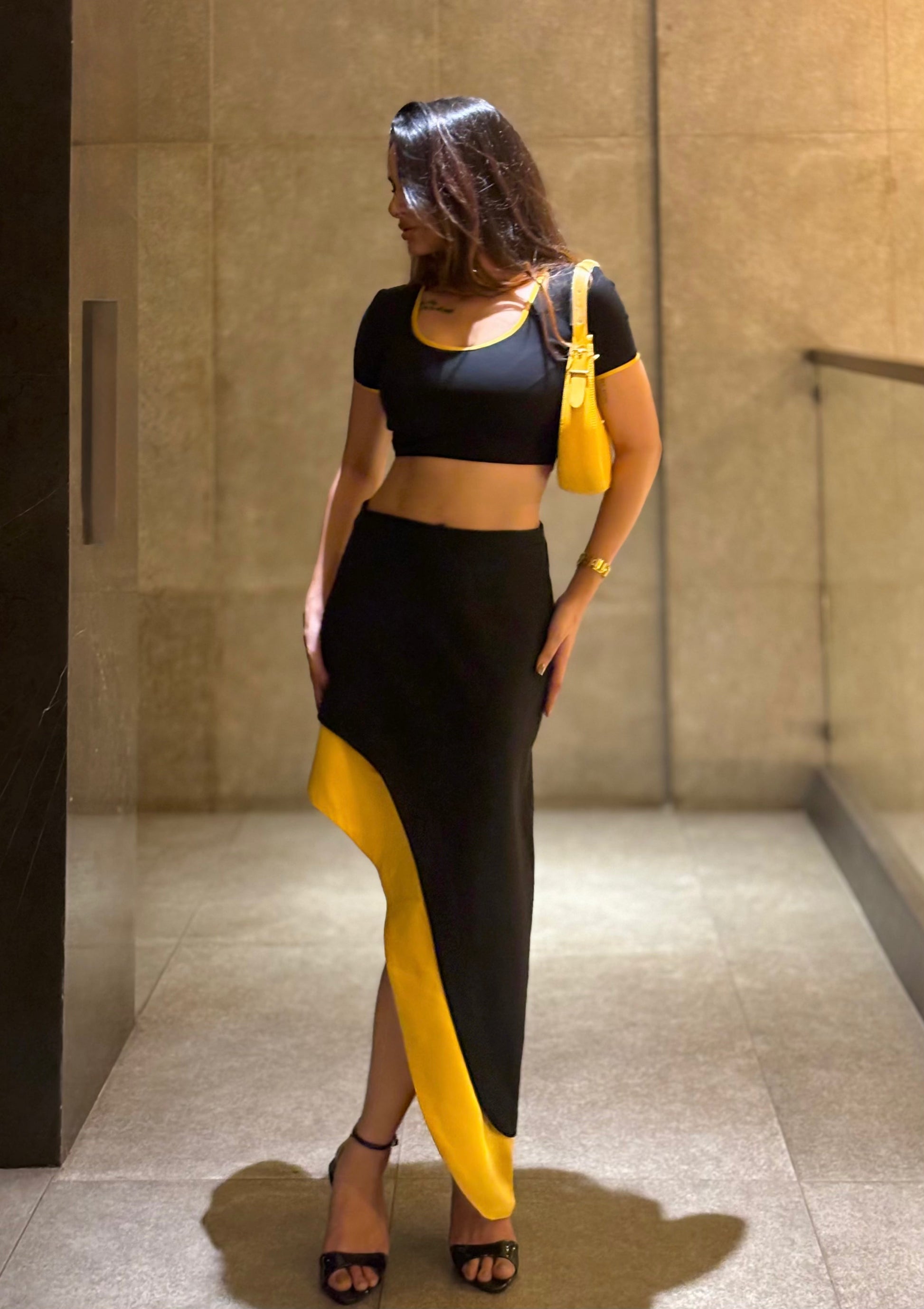Shay's bestseller painted in glowing mango co-ord for a standout presence. This eye-catching ensemble, is designed to turn heads and steal the spotlight, making it an essential addition to your wardrobe.