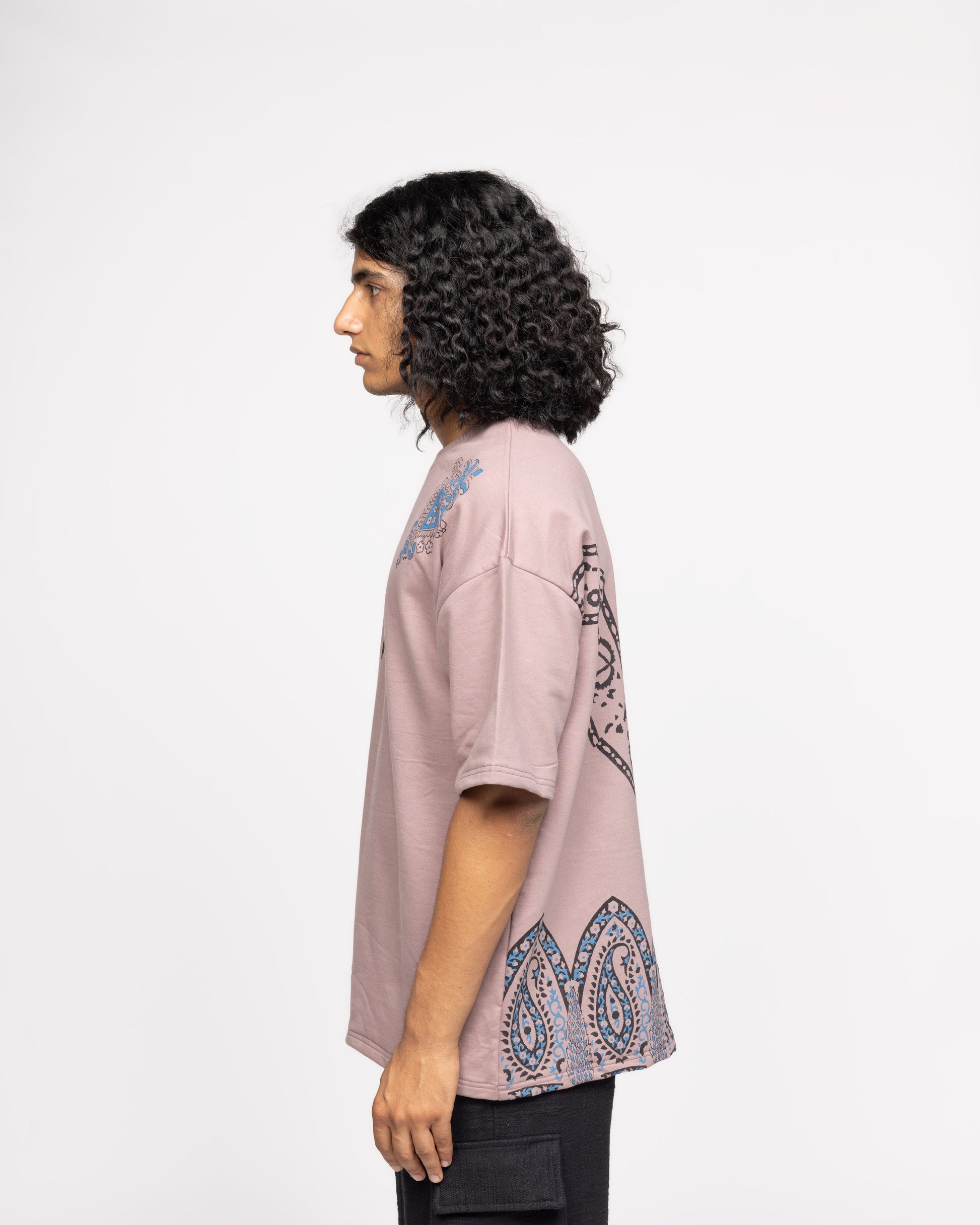 Crafted with precision and care, the Mauve Block Printed T-shirt is meticulously handblocked and printed by Pankaj Sonawa, a fourth-generation artisan, using traditional wooden blocks. The rich mauve colour palette adds a touch of elegance, while the conventional motifs are portrayed in a modern light. This juxtaposition of tradition and contemporary design creates a unique and eye-catching piece.