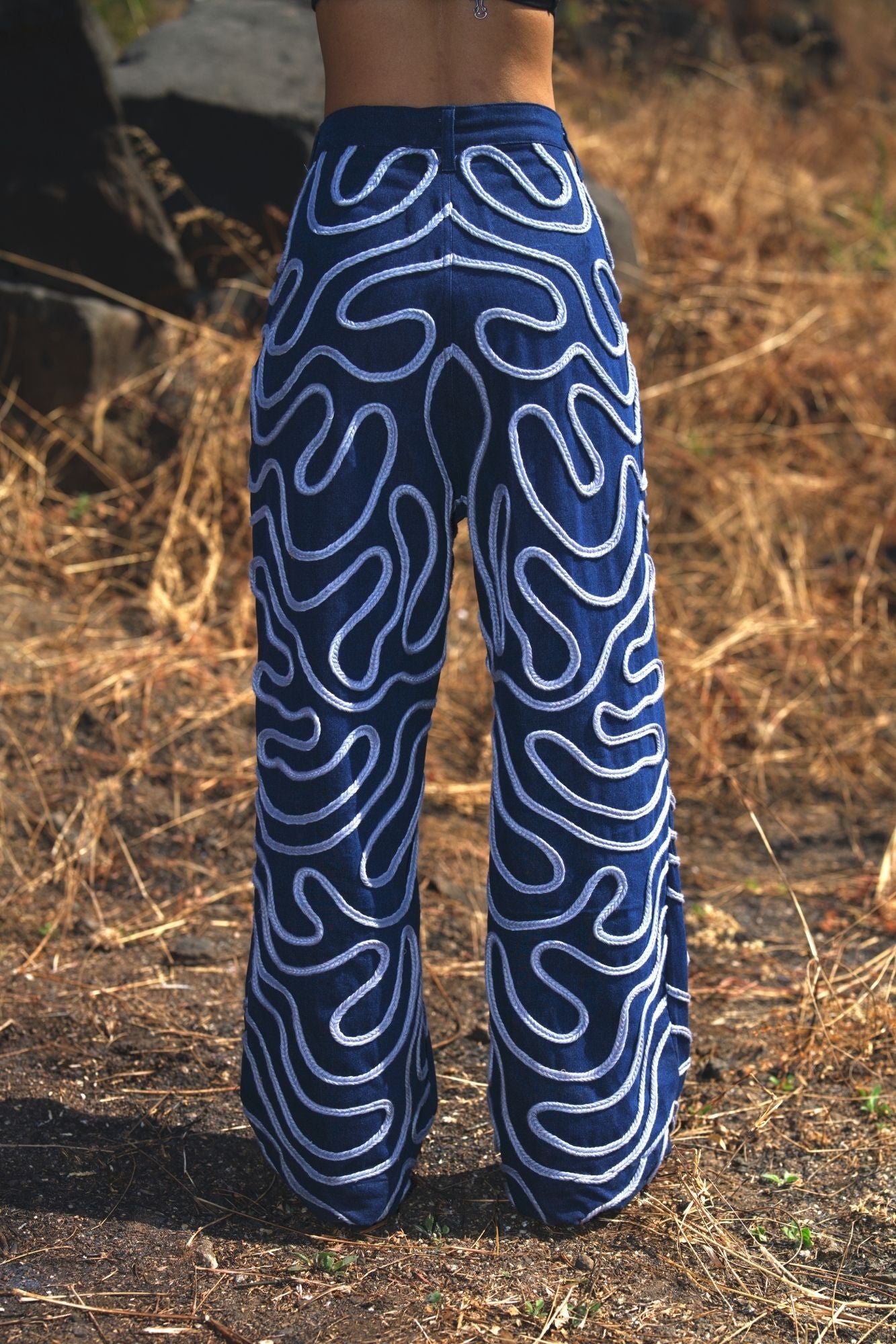 Description – Experience fashion and art come together with our MAZE PANTS. These pants boasts a unique hand braided yarn design, inspired by the intricate structure of a maze. Make a statement with this one-of-a-kind piece that is both stylish and eye-catching.