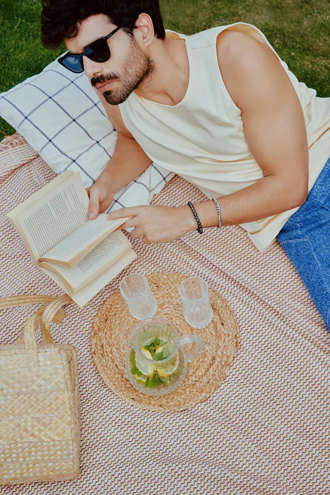 mid rise - front fly zip closure - pintucks - side pockets - geometrical panels - contrast top stitch - back patch pocket - regular fit