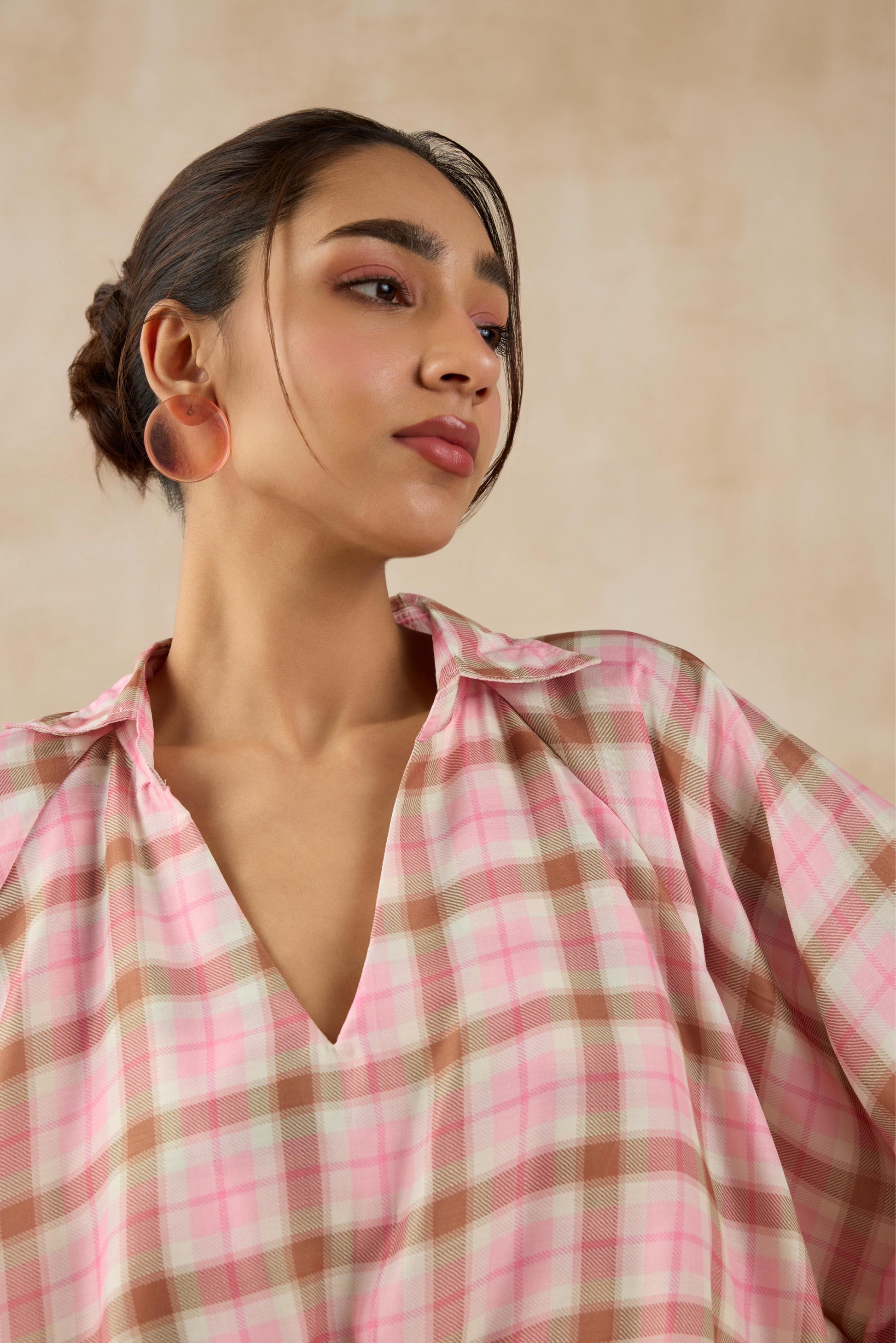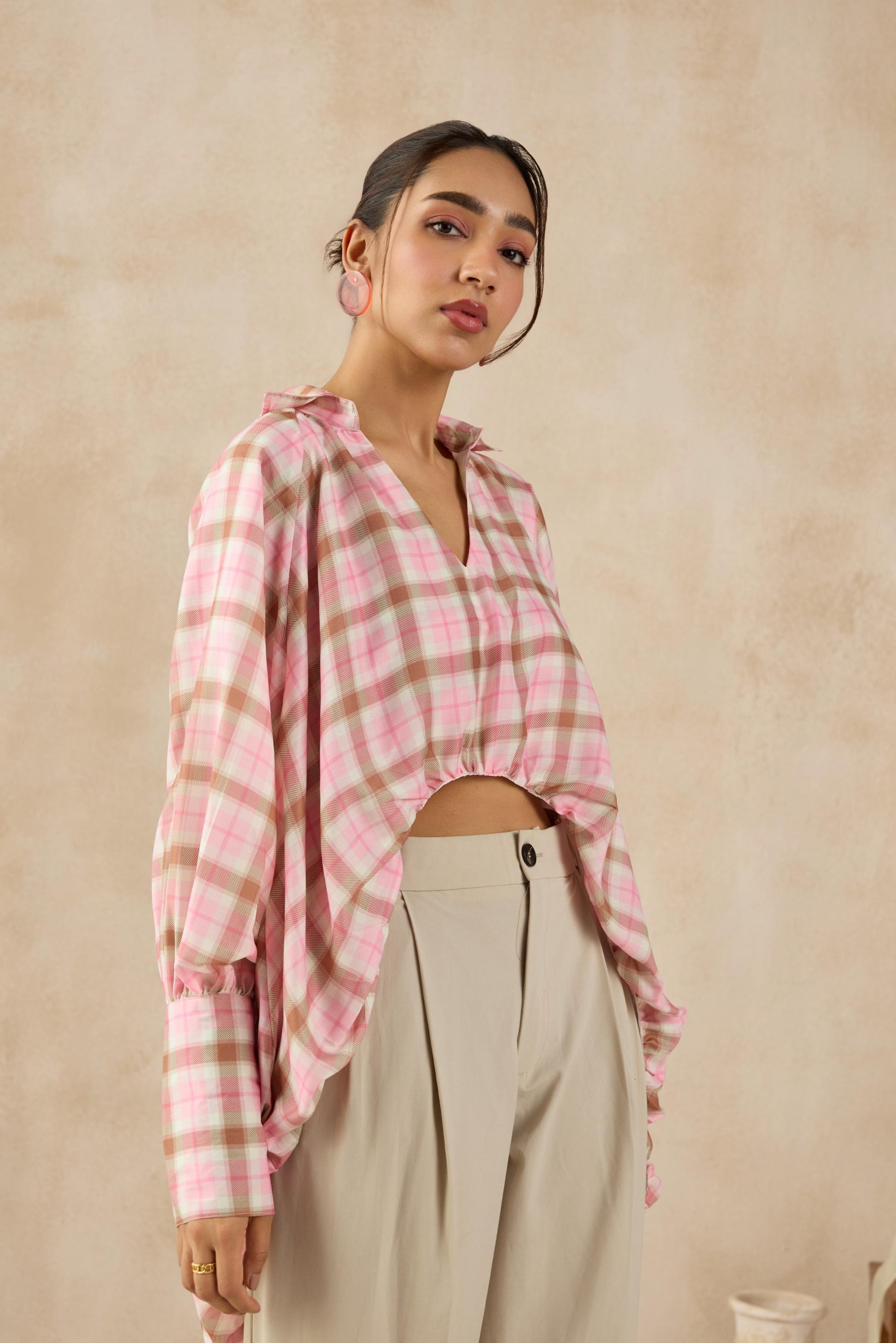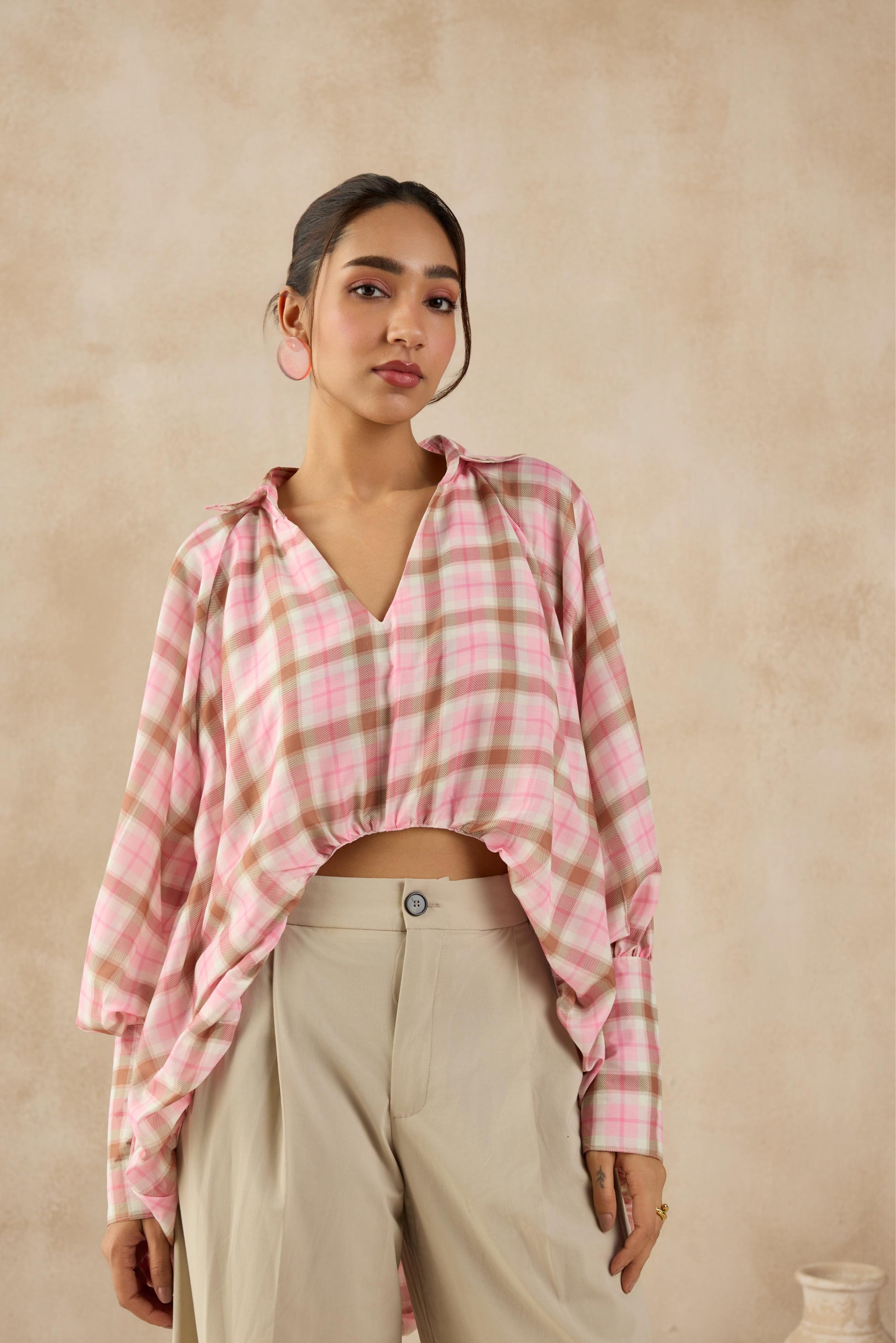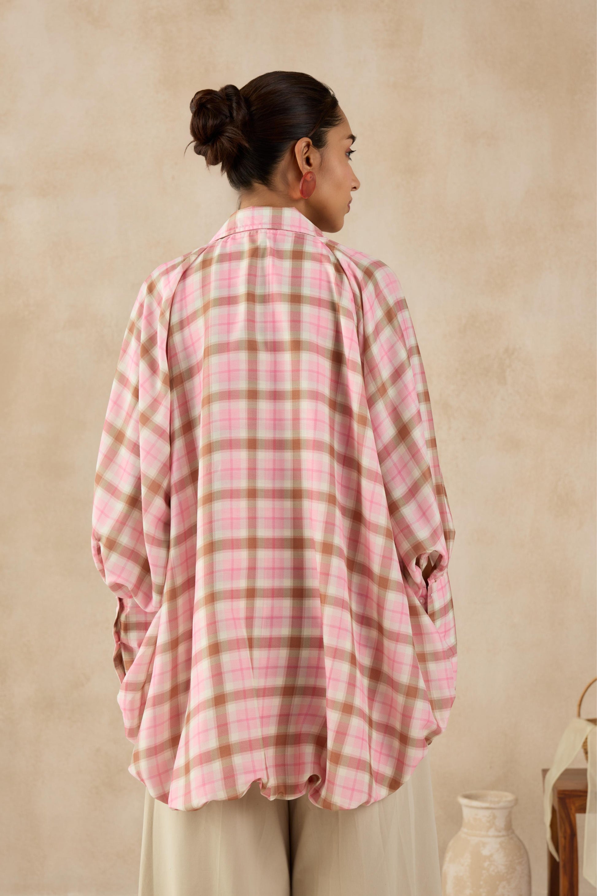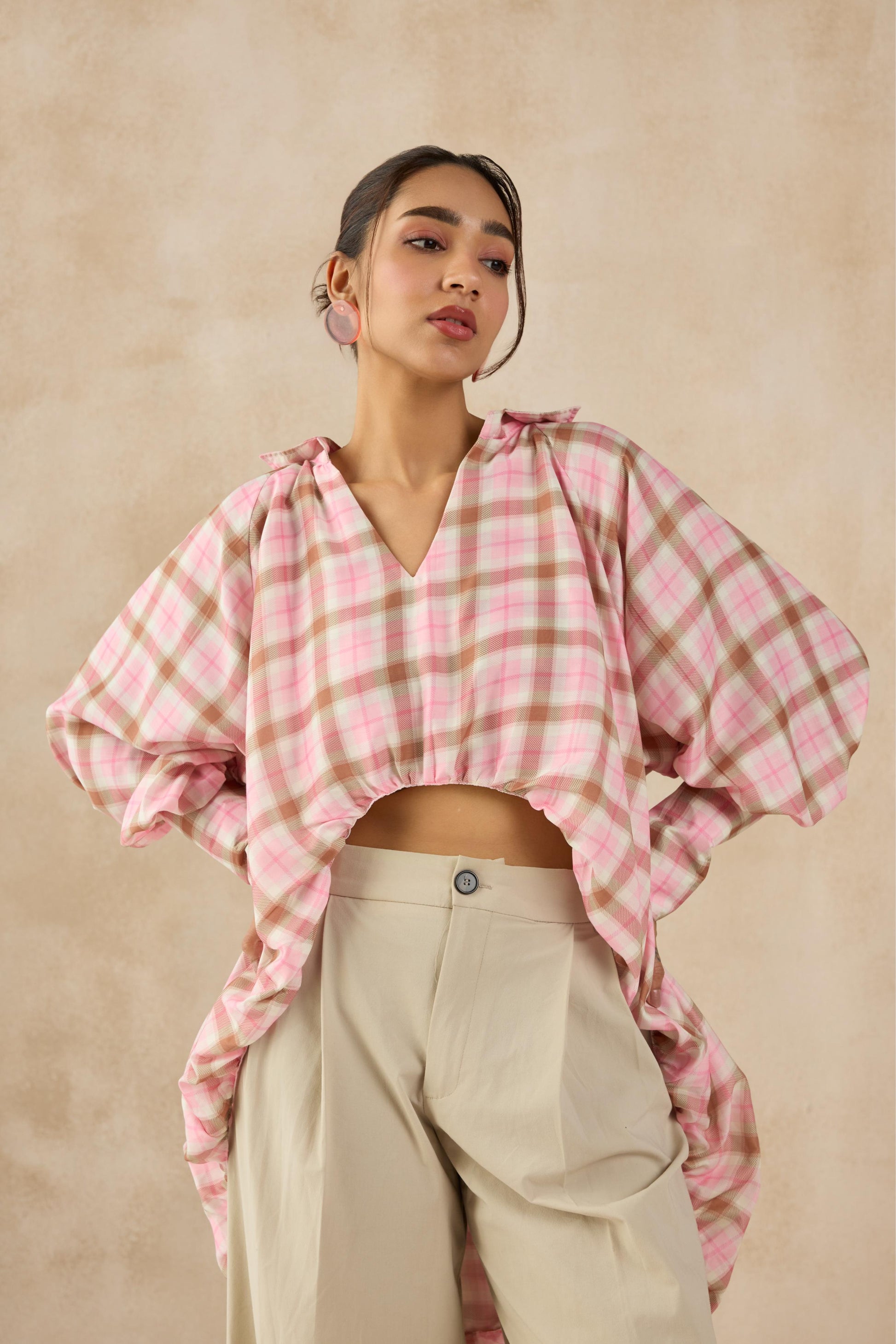The Milan Shirt is a bold reimagination of classic checkered print, designed for effortless versatility. Crafted from premium linen blend, it features balloon sleeves, a deep neckline, and a flowing high-low hemline that drapes beautifully. The relaxed silhouette allows for endless styling possibilities. Perfect for those who love understated drama, this piece blends comfort, movement, and modern sophistication, making it a must-have for any contemporary wardrobe.