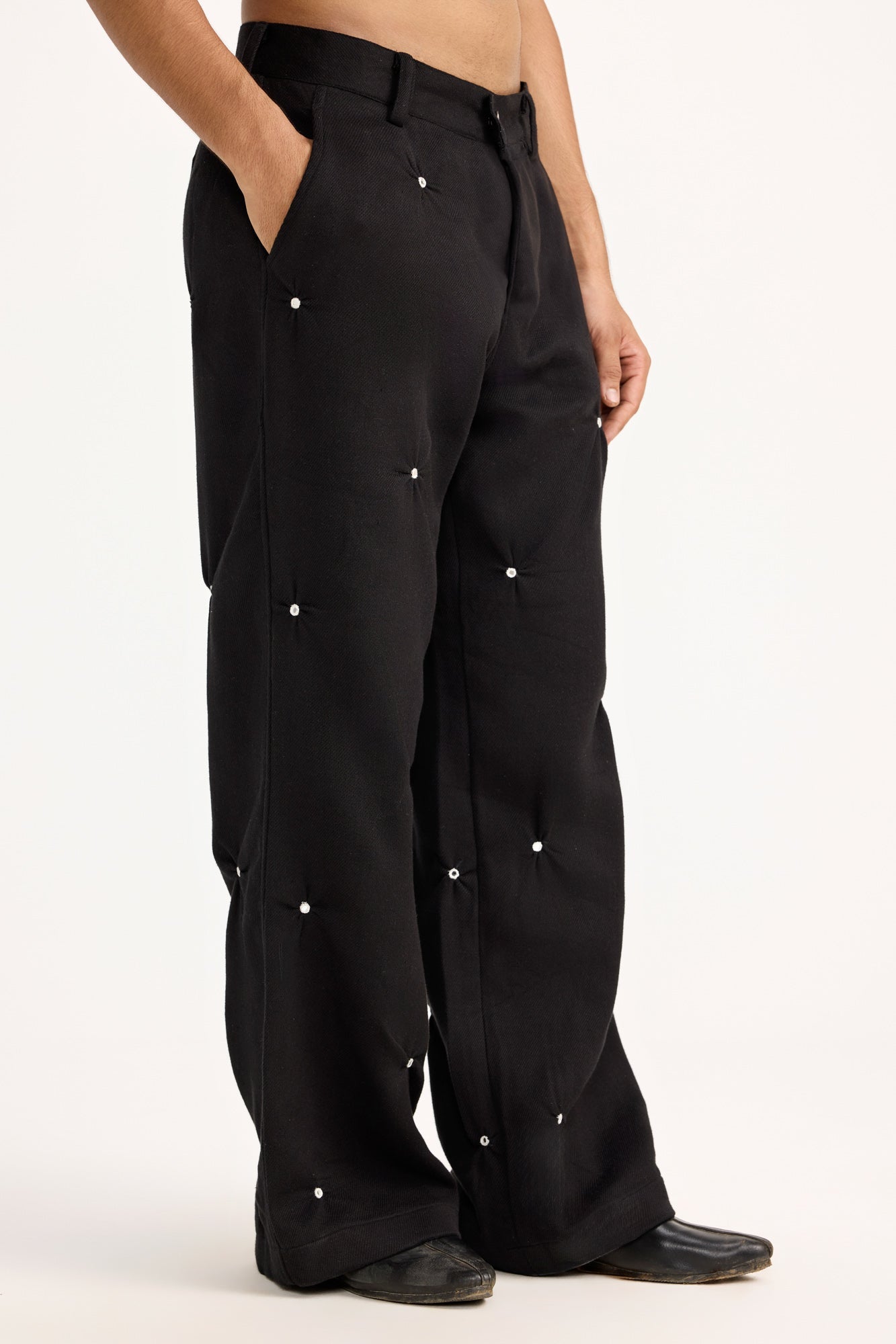 The Mirror Work Handmade Pant is a reflection of Farak's dedication to sustainable fashion and traditional craftsmanship. This piece embodies the brand’s commitment to creating artisanal garments with zero electricity consumption, allowing the essence of slow fashion to shine through. The handwoven fabric forms the foundation of this jacket, celebrating the heritage of meticulous craftsmanship. Adorned with intricate mirror work across the surface, this pant is entirely handmade. Each stitch, and mirror, is a testament to the skill and dedication of artisans, blending sustainability with luxurious detail in a garment that is as unique as the hands that created it.