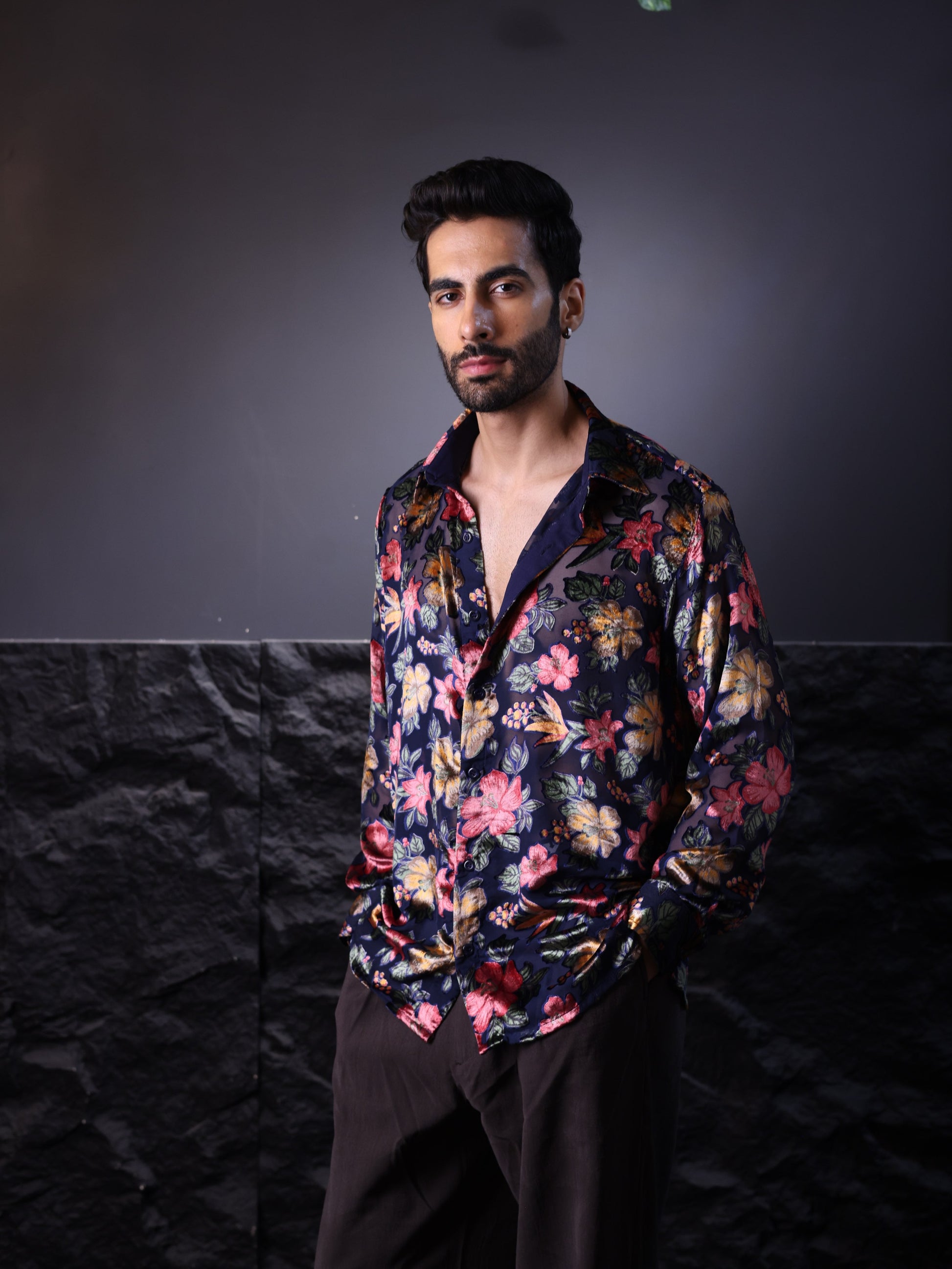 Step into effortless elegance with our Moonlight Floral Shirt — a stunning blend of bold florals and refined design. Crafted from a luxurious, satin-like fabric with a soft sheen, this shirt features a vivid all-over floral print that pops against a rich, dark base. The lightweight, fluid silhouette offers a perfect balance between statement style and wearable comfort. Pair it with sharp tailoring or dress it down with denim for versatile, head-turning looks — day or night.