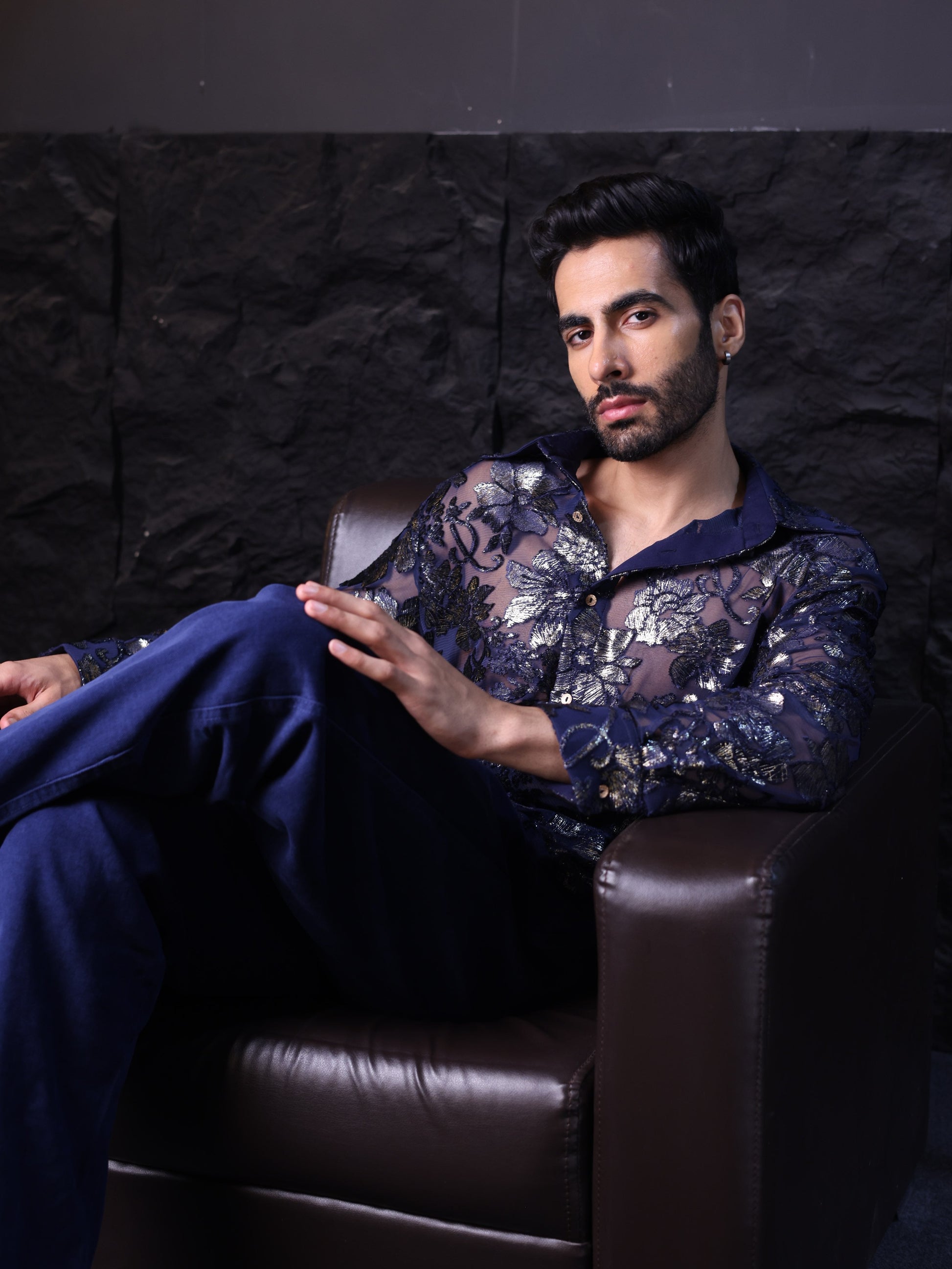 Dramatic, sensual, and opulent — the Shadow Bloom Jacket is designed to turn heads. Crafted from sheer black fabric adorned with metallic floral embroidery, this piece brings together dark romance and modern edge. The relaxed fit, gold-toned front zipper, and effortless silhouette make it an ideal layer for both day and night. Style it over a minimal base for high-impact contrast, or wear it as a statement on its own for evenings that demand attention.