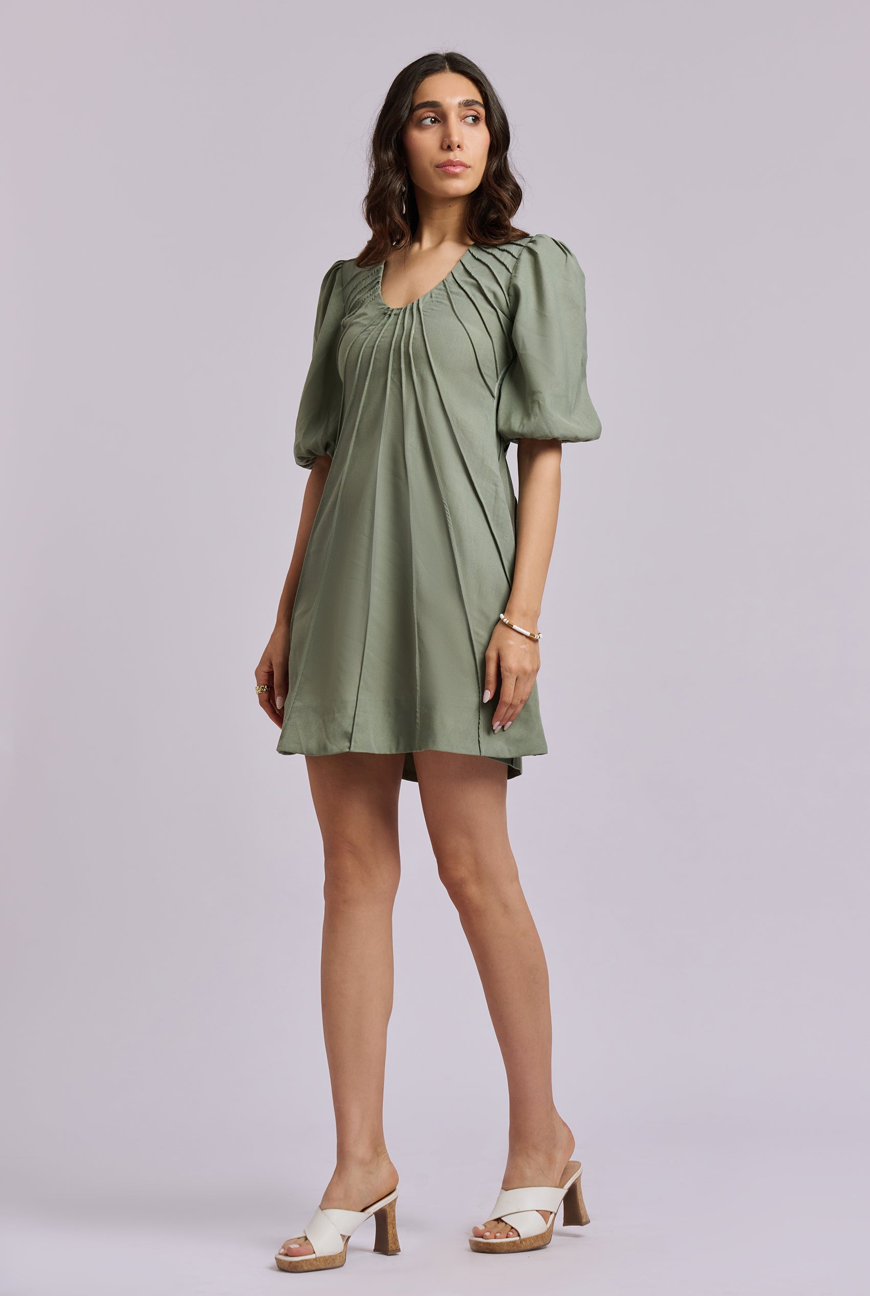 This chic short dress features slightly puffed sleeves for a playful touch. The standout detail is the intricate cord design woven throughout the dress, adding texture and a unique charm. Perfect for casual outings or stylish gatherings!