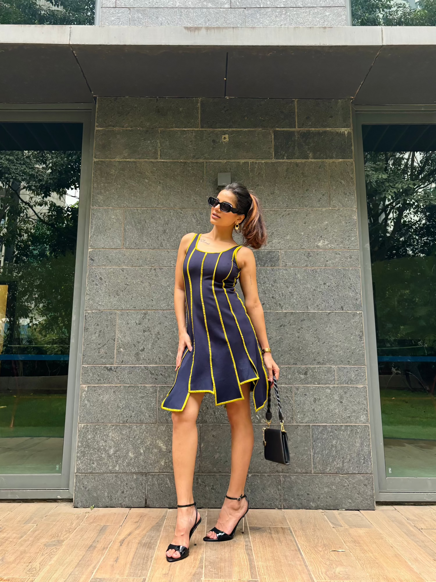 Navy & Lime Panel Dress