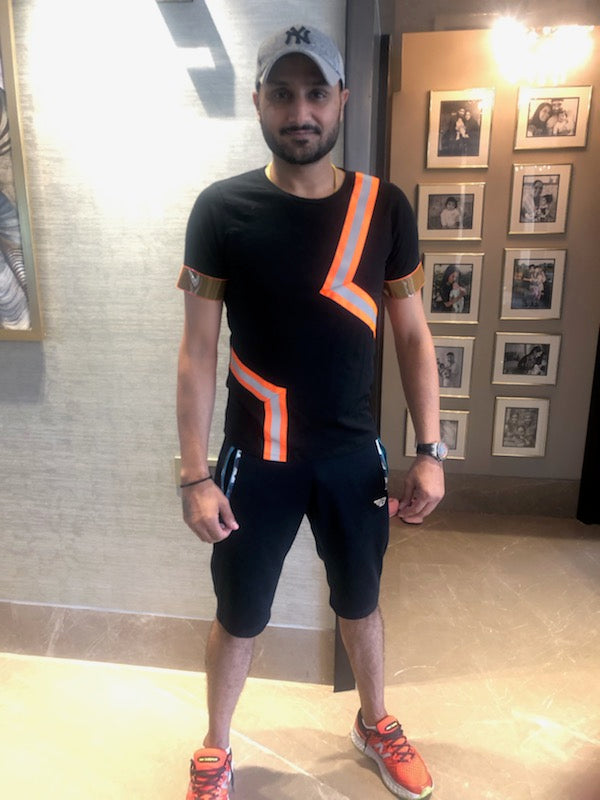 Unisex round neckline t-shirt with reflective 'zig zag' detailing on the front with short sleeves finished with PU on the hem. Style Tip- pair it up with ribbed denim jeans or cargo.