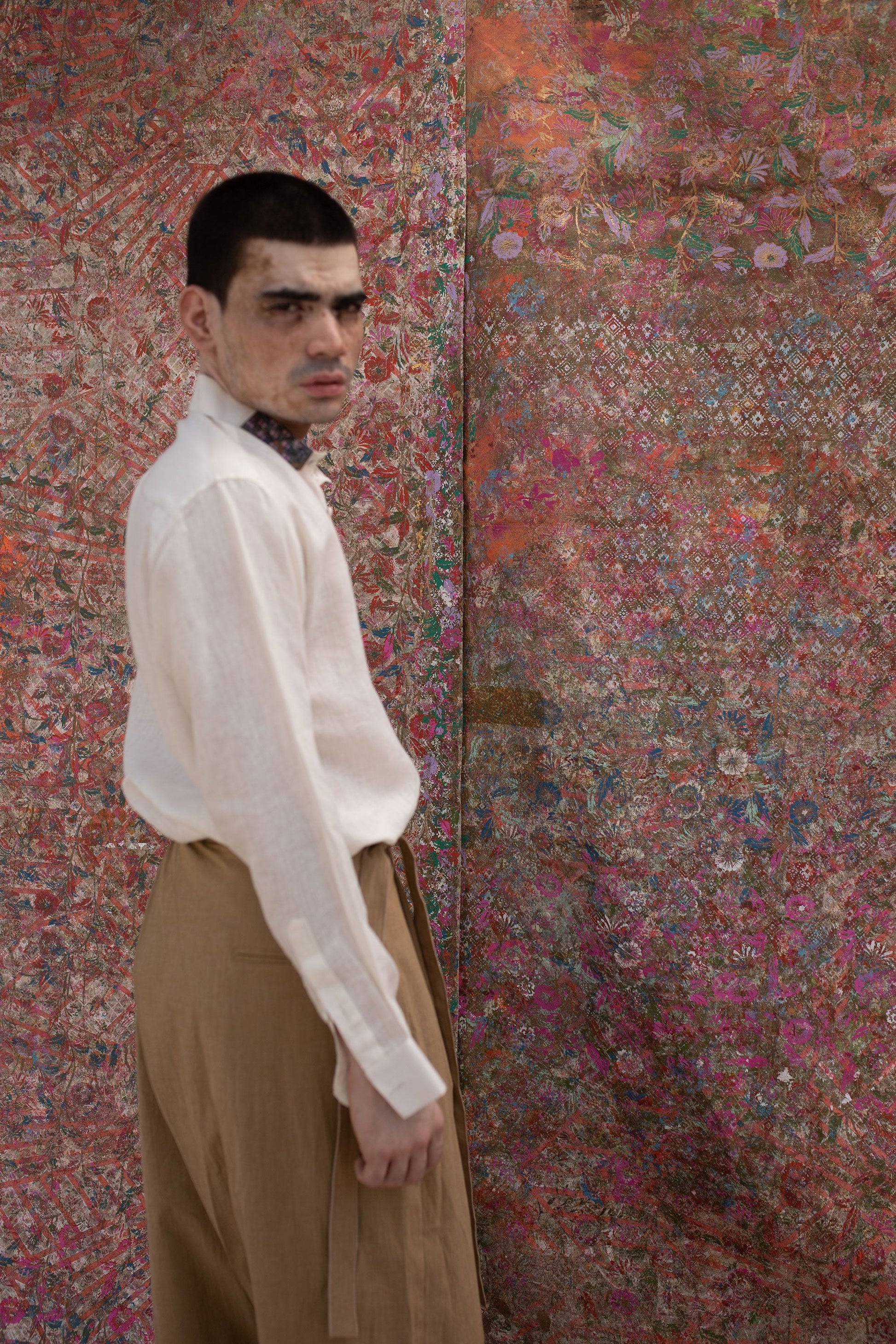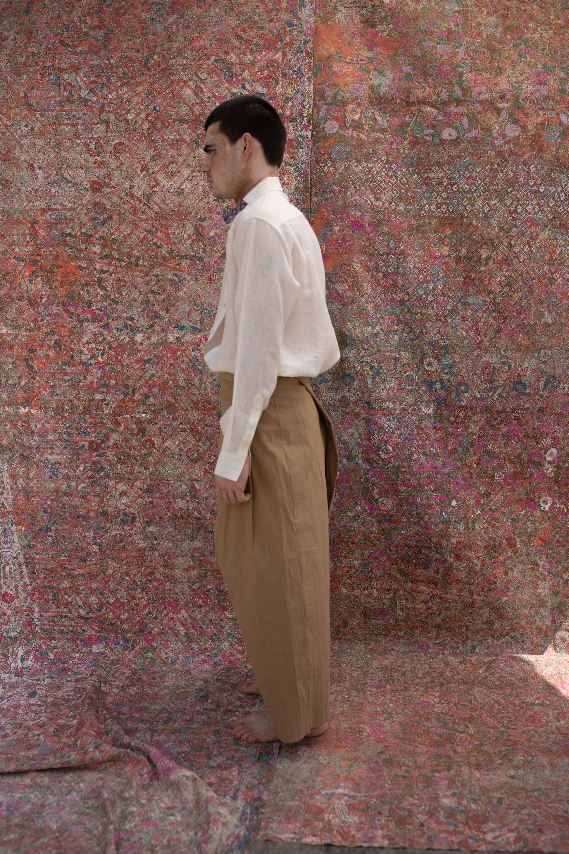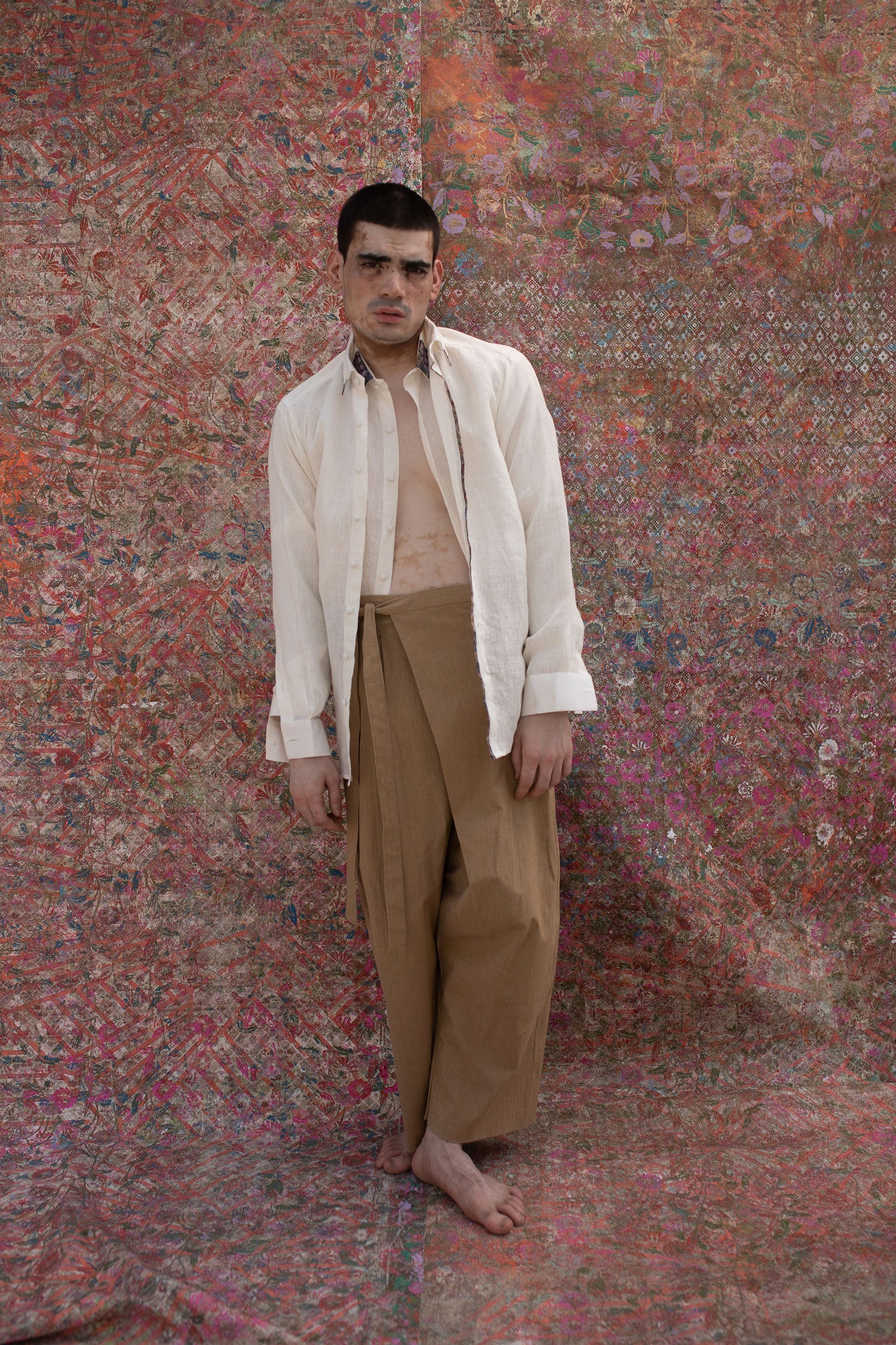 The Patina Collection is created using soft handwoven Bhagalpuri linen. These textiles are highlighted with different geometrical textures and patterns in different colors using recycled hand block print using hand carved traditional wooden blocks from Sanganer.