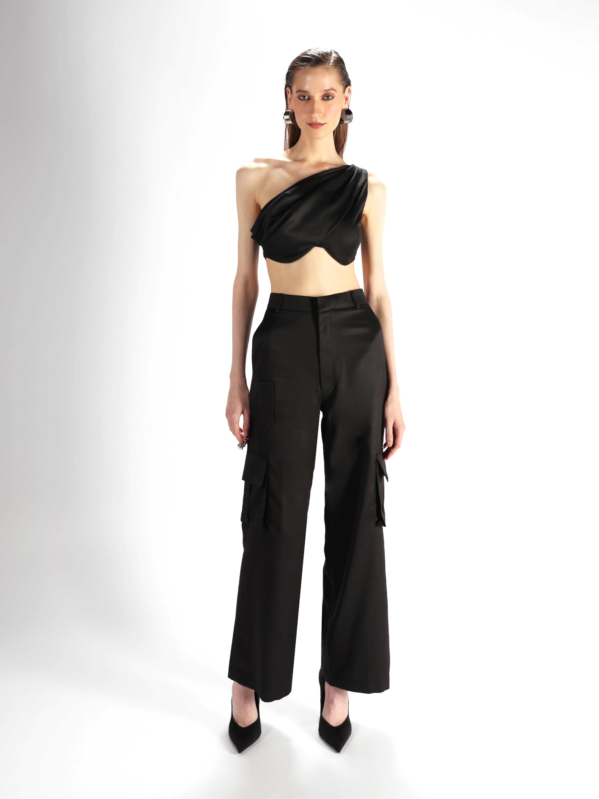 An innovative blend of structured design and modern utility, this collection combines the artistry of hand-draped tailoring with the bold functionality of high-waisted cargo pants. The Noire Underwire Bralette showcases a unique corset-inspired silhouette, while the Noire Utility Cargo pants deliver statement-making style with practical pockets and a wide-leg fit.