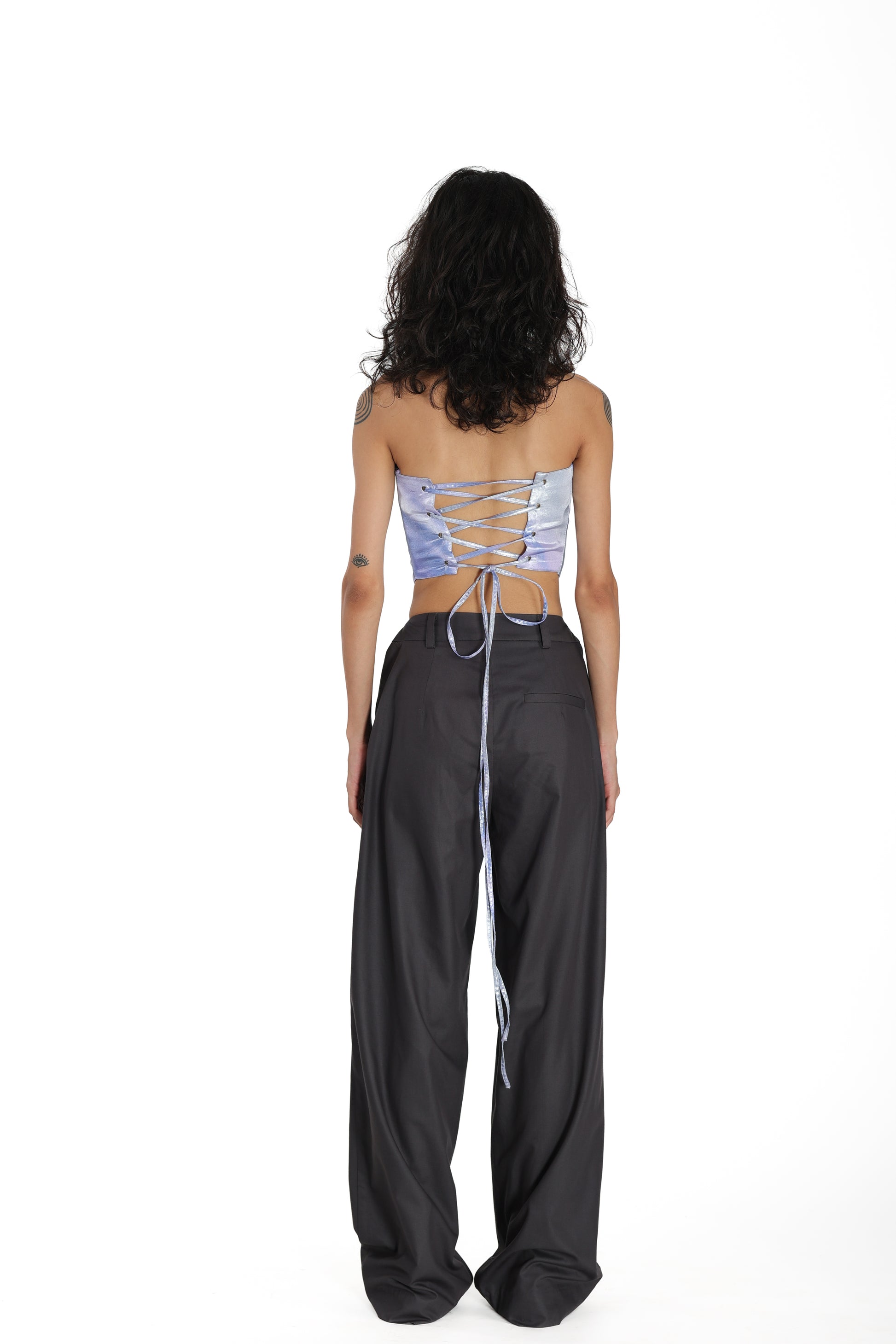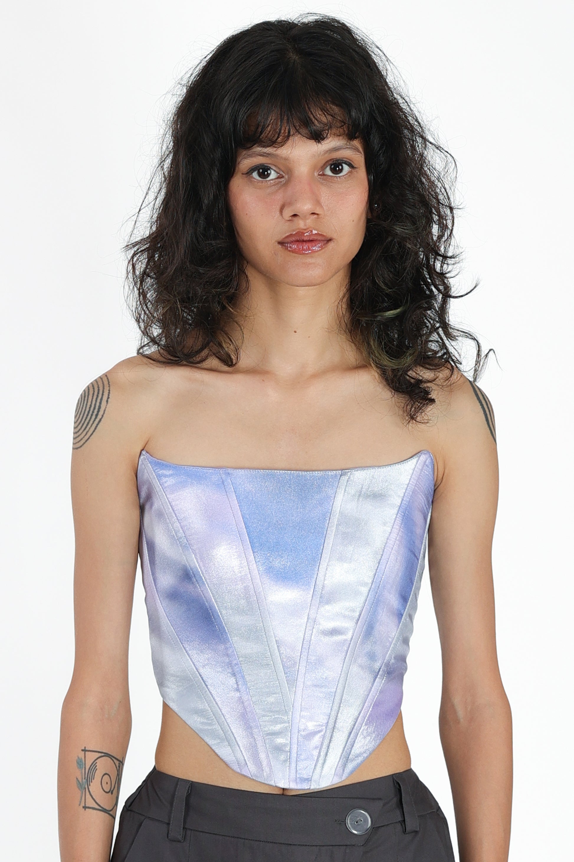 The Ocean Wave Corset is made from an incredibly lightweight fabric that boasts a subtle sheen. The distinctive print draws inspiration from the childhood memories of our creative director. What sets it apart is the enchanting color-shifting magic.