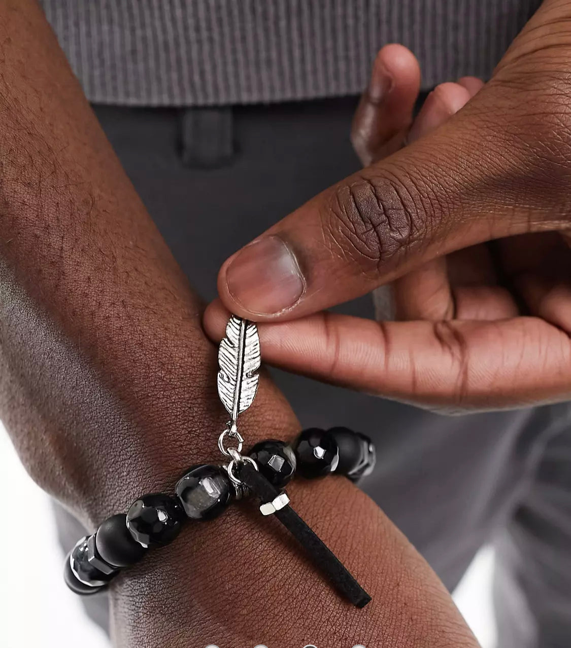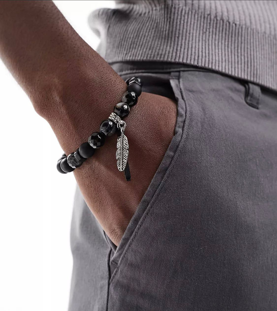 This elegant Onyx Leaf Men's Bracelet is a statement piece that combines style and natural elements. Crafted with an onyx leaf charm, it exudes a sense of sophistication and masculinity. Its unique design makes it a perfect addition to any outfit, offering a subtle touch of nature and intrigue.