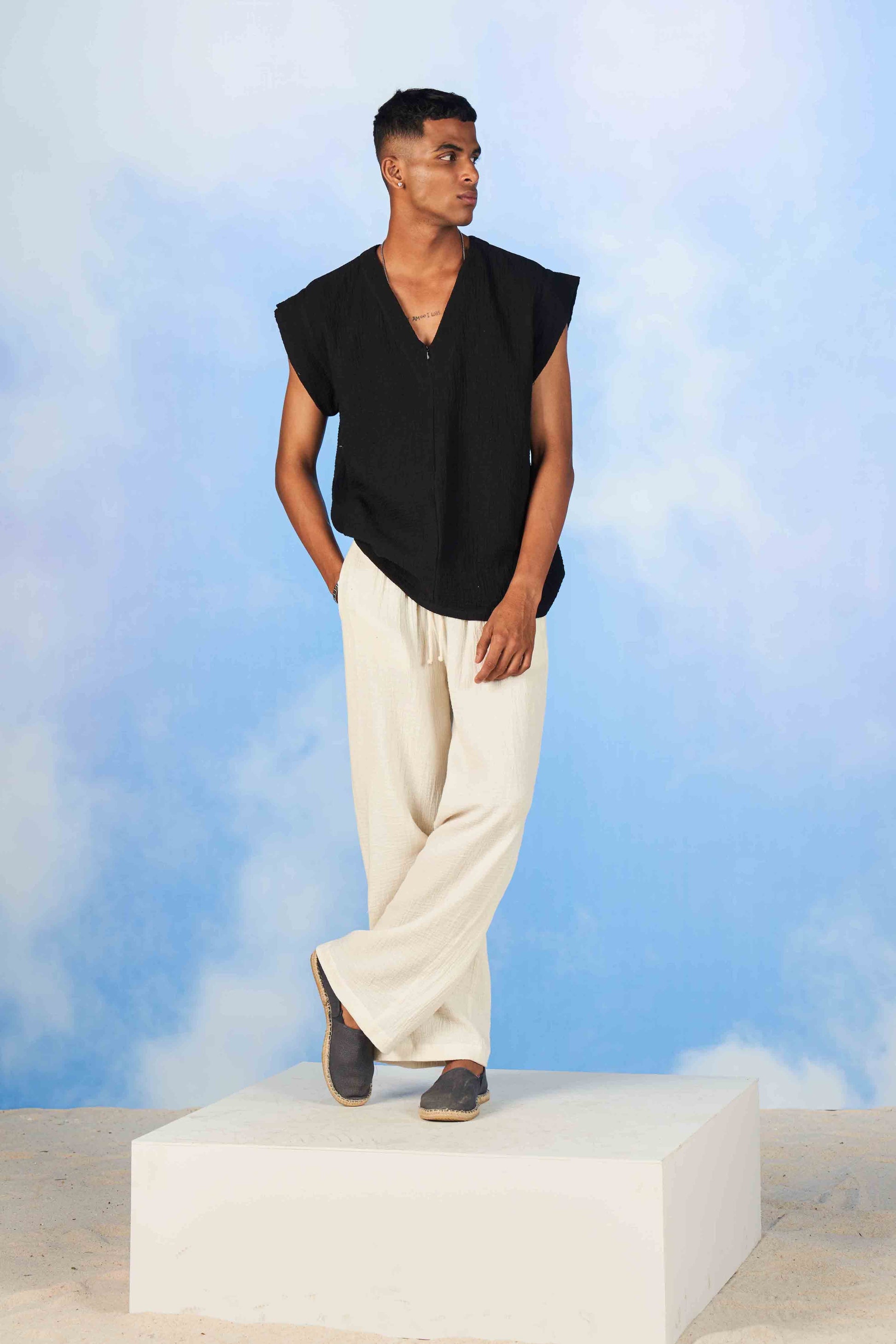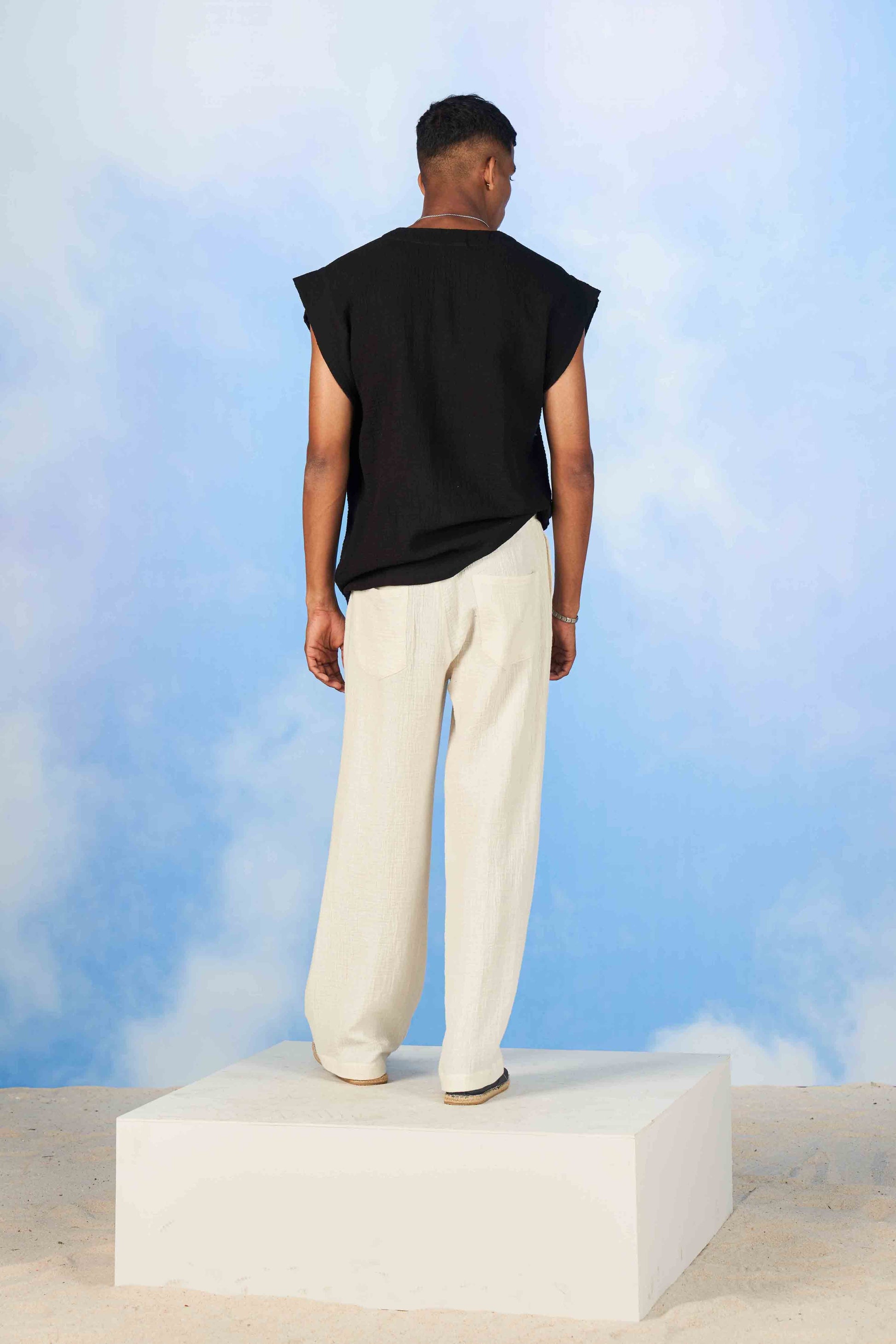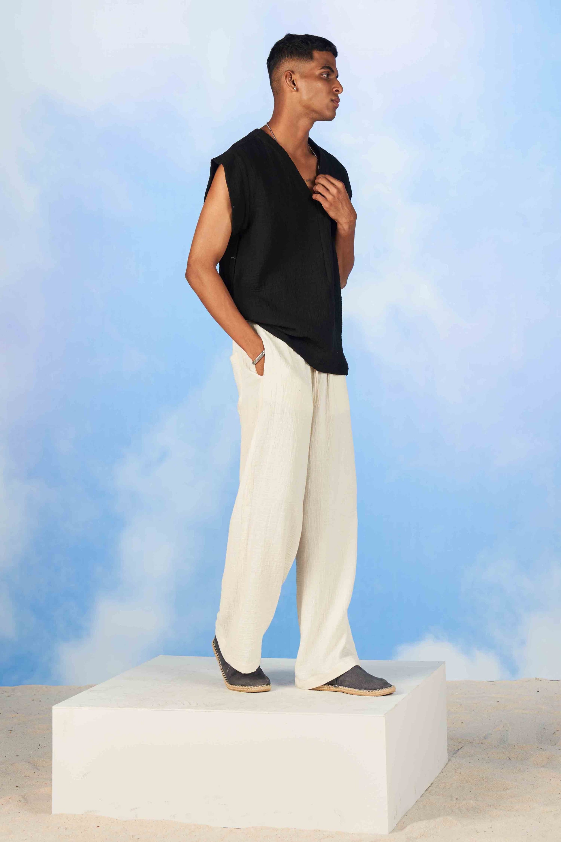 - Wrinkle Double Muslin for relaxed fit