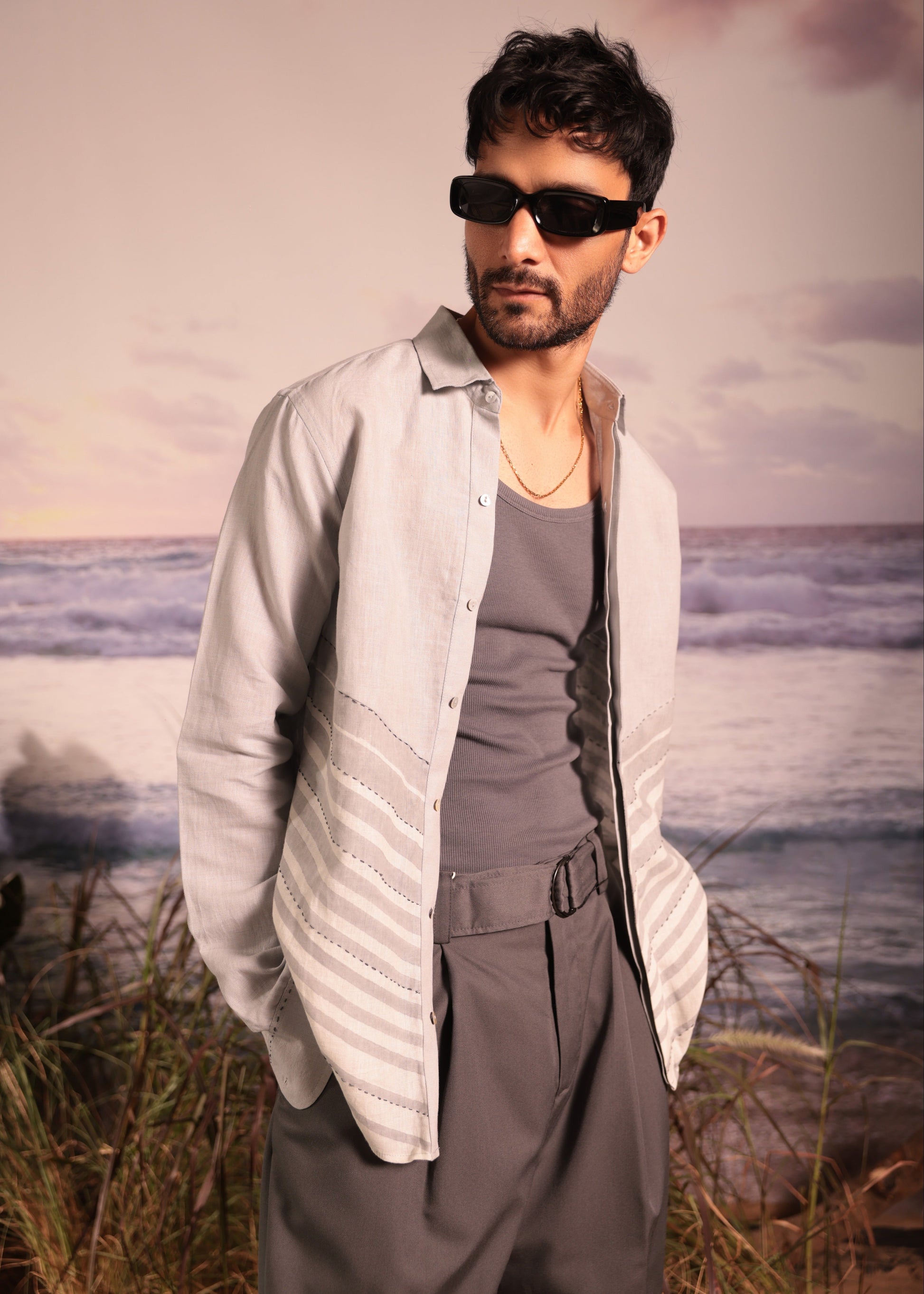 Embark on a journey of style with the Orion Passage Shirt, inspired by the guiding stars of the Orion constellation. The shirt is meticulously handcrafted over 32 hours from pure linen, ensuring breathability and comfort. It features hand block printed stripes, accentuated by kantha embroidery that adds intricate detail and texture. Designed to make you stand out, this shirt is ideal for day excursions. Navigate your style journey with this embodiment of sophistication and adventure.