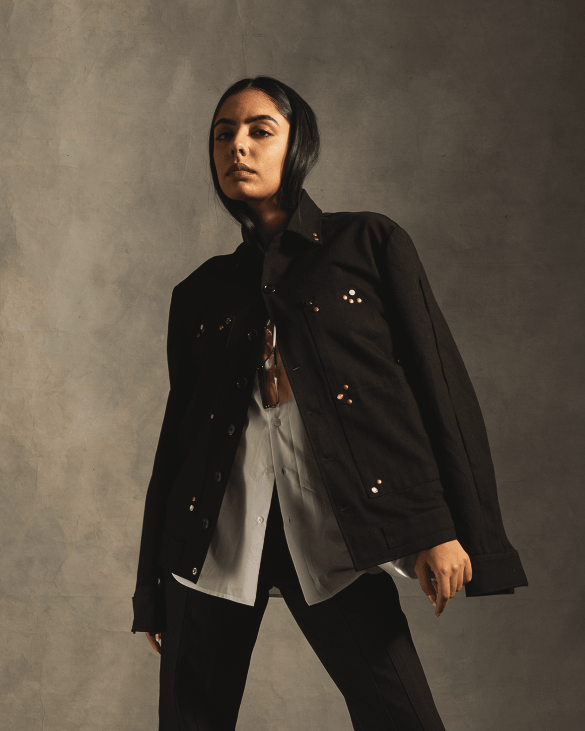 - Jacket in medium weight raw denim.