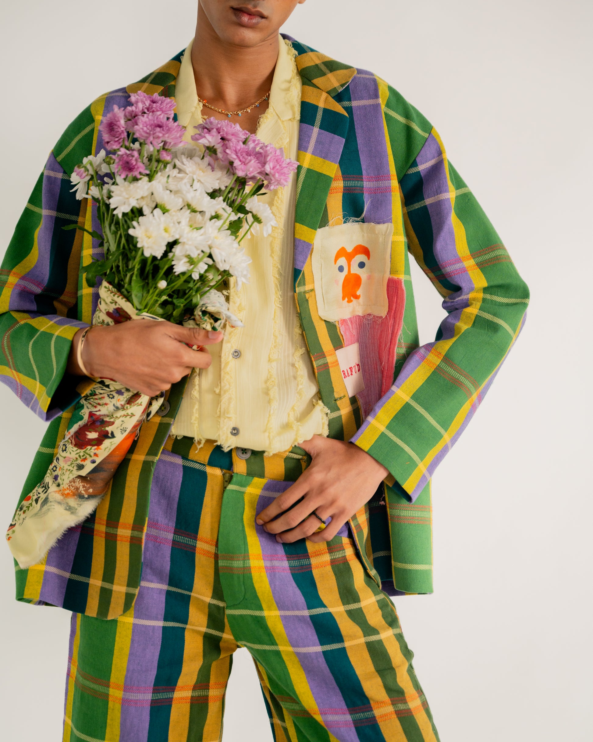 Our wide-legged trousers boast a relaxed fit. Drawing inspiration from captivating mythology, these trousers effortlessly combine comfort and captivating aesthetics. Including side pockets and elastic in the back ensures an improved fit, adding to the practicality of these vibrant-hued garments.