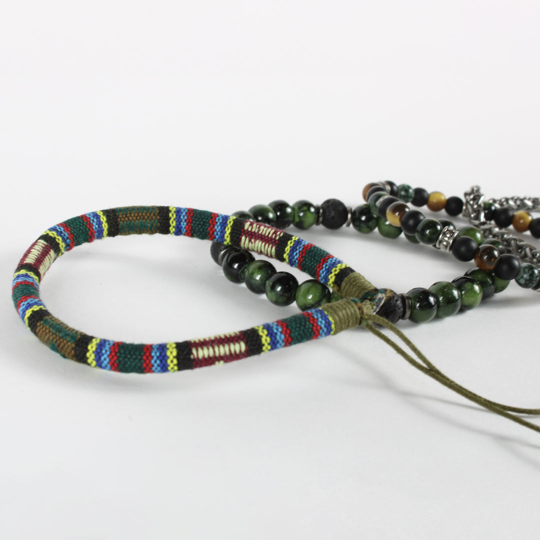 Introducing Pine Grove Bracelets, the perfect accessory for any outfit. With a stunning green three layer design, these bracelets are sure to add a touch of elegance to your wardrobe. Made from high-quality materials, they are both durable and stylish. Elevate your accessory game with Pine Grove Bracelets.
