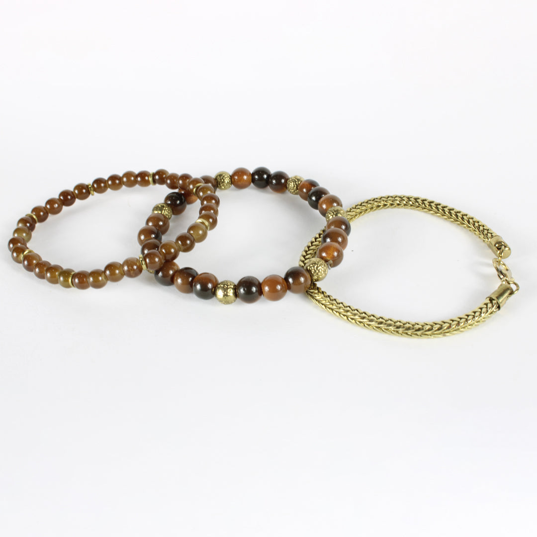 Introducing Pine Perfection Men's Bracelets - a combo of two sleek, brown and golden bracelets. Elevate your style with this versatile accessory. Made with high-quality materials, these bracelets are perfect for everyday wear or any special occasion. Upgrade your look with Pine Perfection.