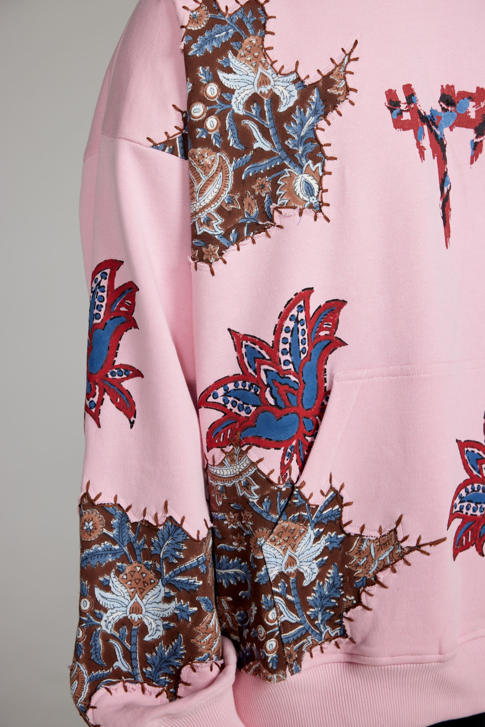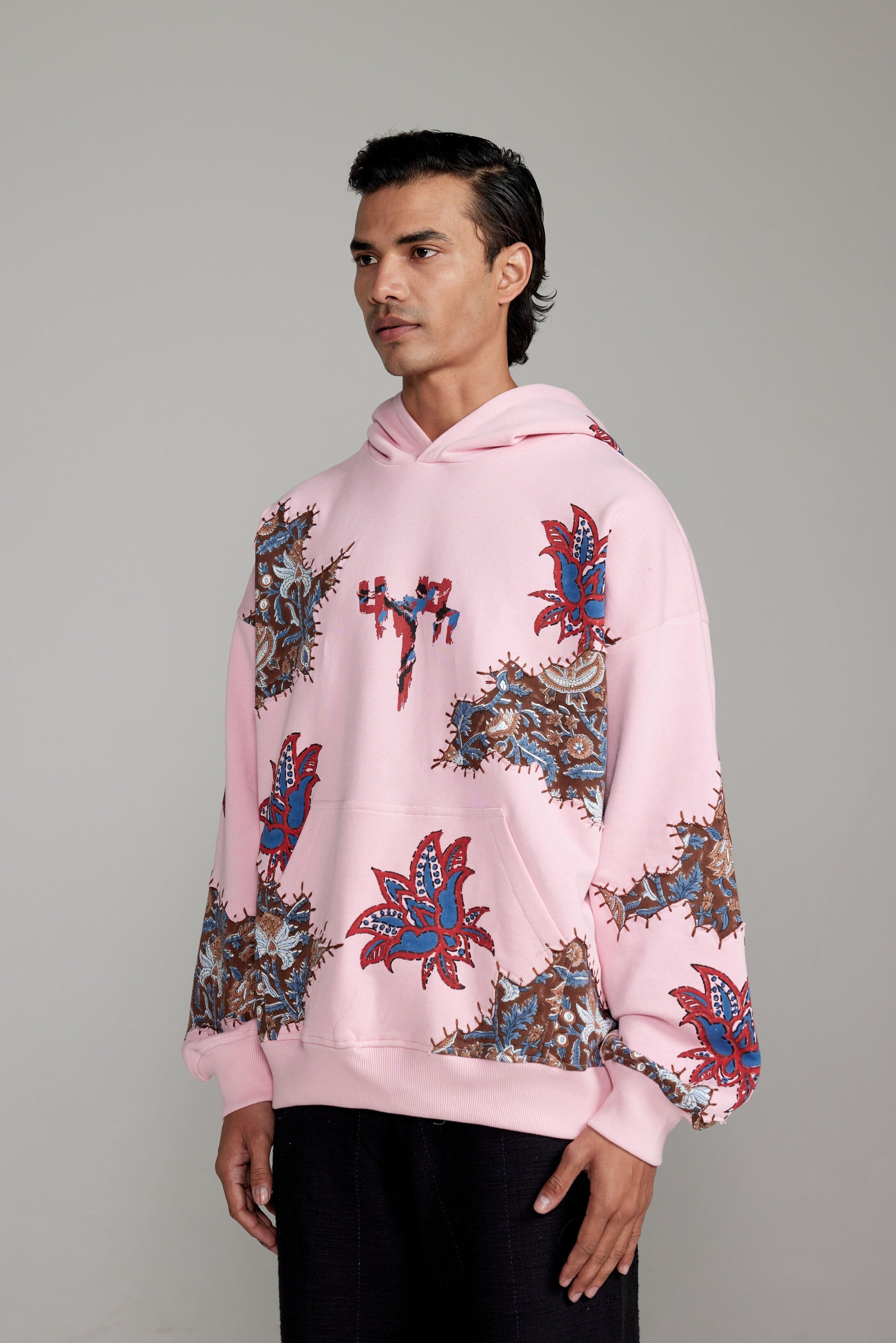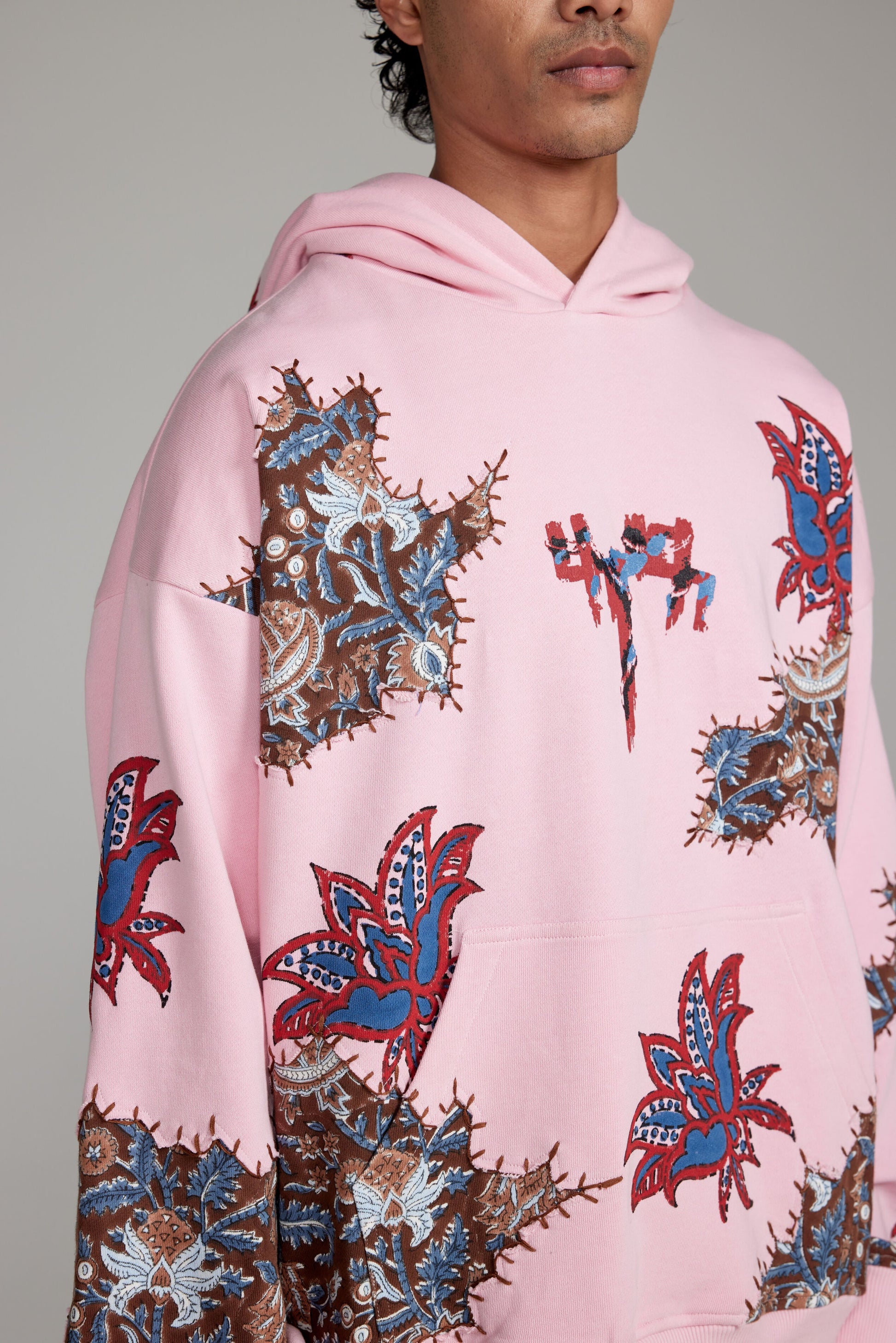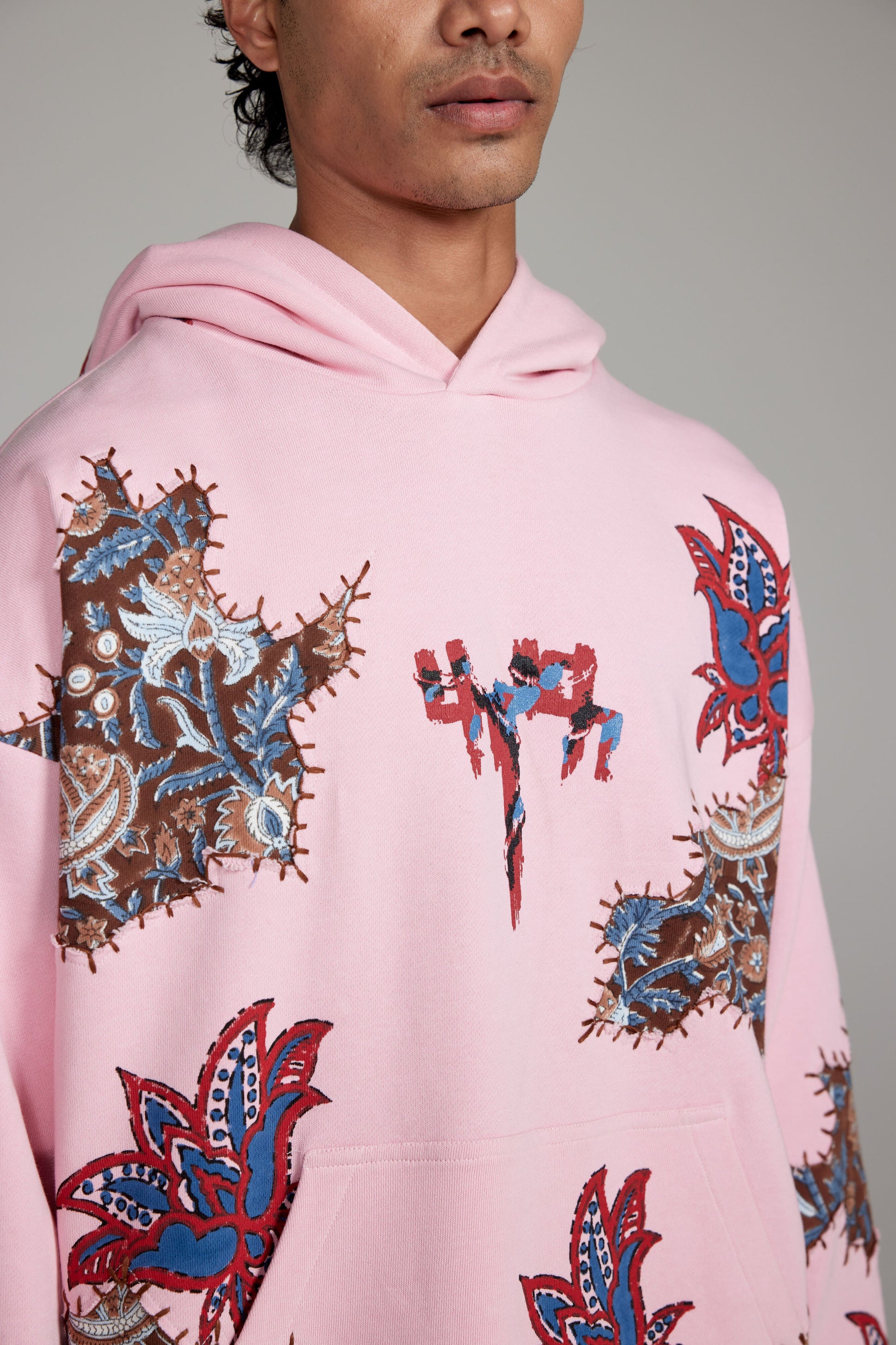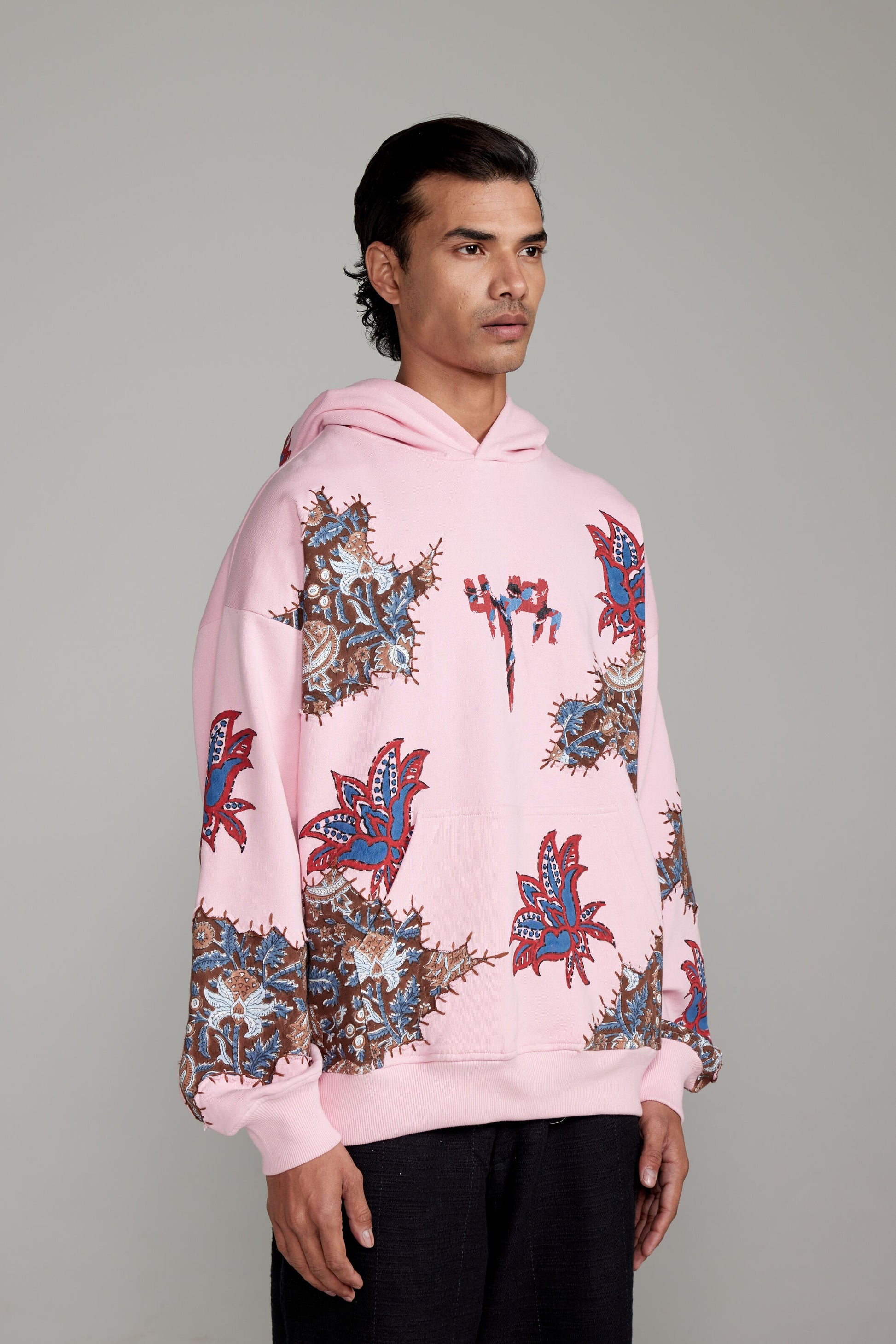 The Gulbaagh Hoodie, Farak’s artistic exploration of harmony in chaos. This vibrant piece juxtaposes bold block prints and eclectic patches against a serene base of harmonious pinks, creating a captivating balance of color and texture. Crafted with Farak’s signature precision, the hoodie blends traditional craftsmanship with contemporary design, offering a standout look that redefines modern luxury. Perfect for those who celebrate individuality.