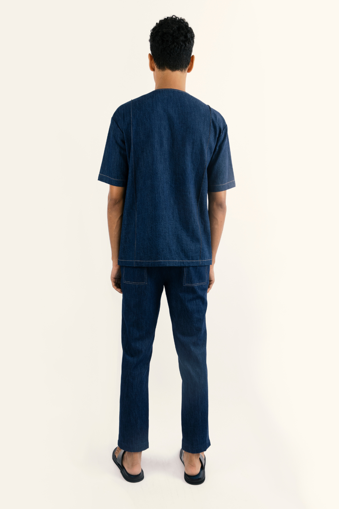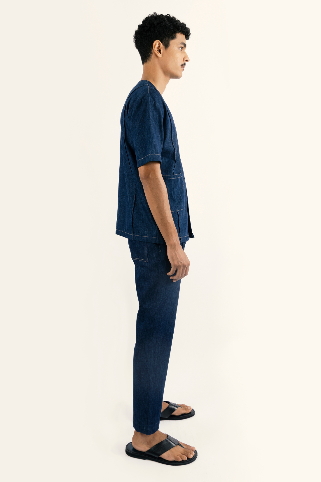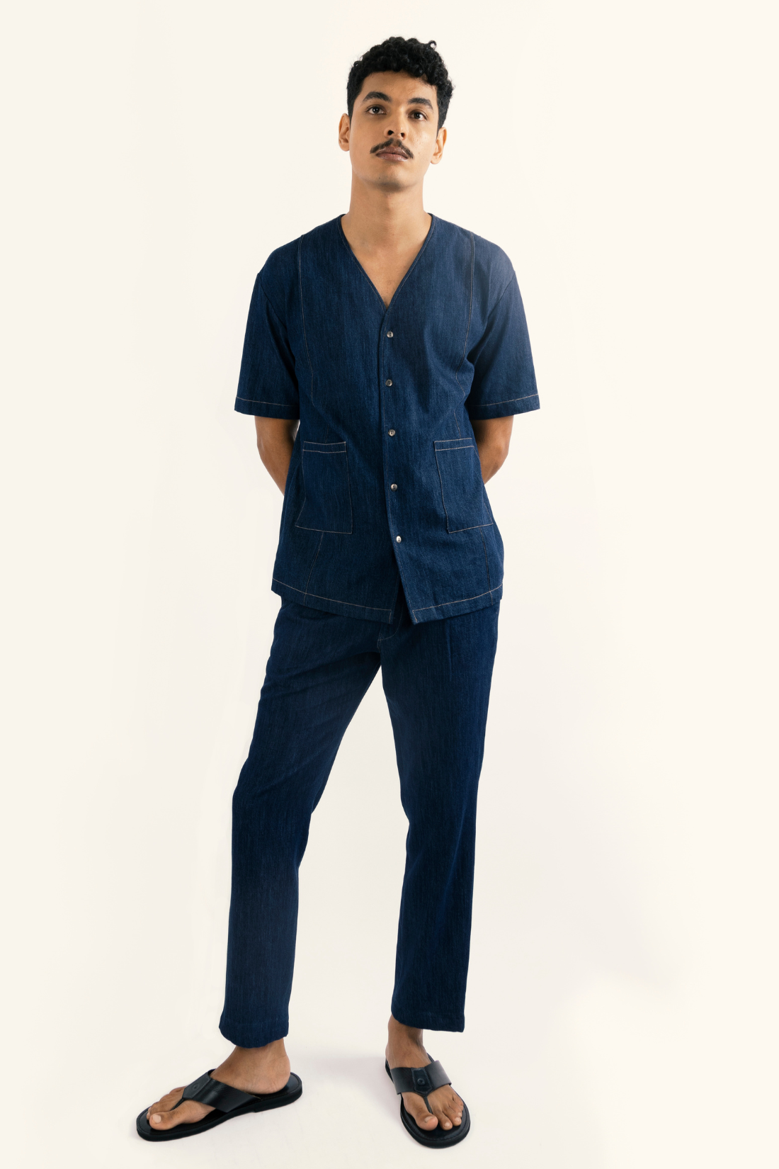 mid rise - front pleat - side pockets - contrast top stitch detail - back patch pocket - narrow legged- relaxed fit - fly front zip closure