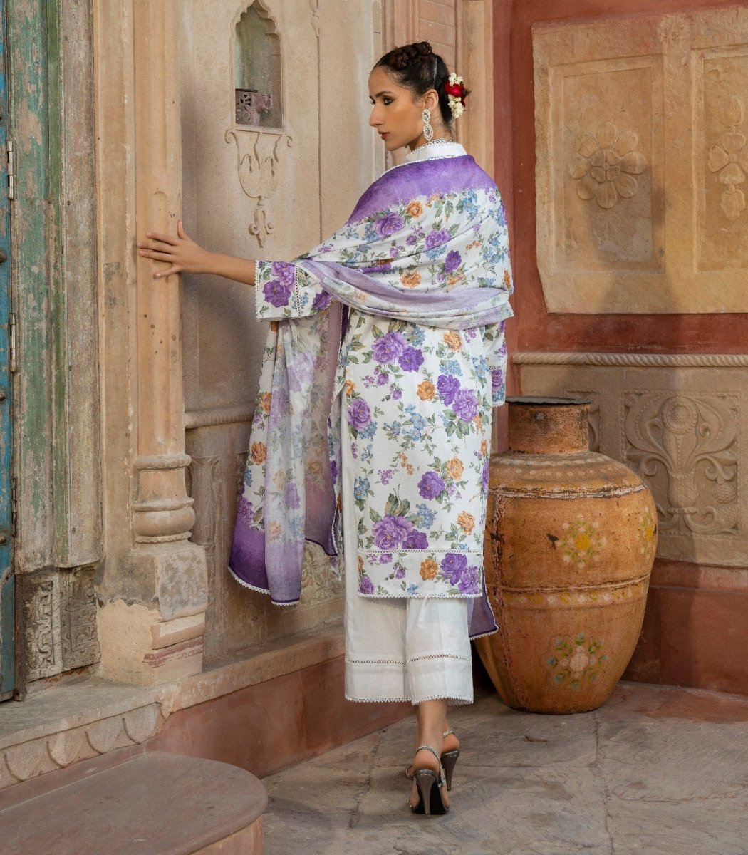 Experience the allure of our Purple printed suit with exquisite details on the yoke and a stunning printed dupatta. Elevate your fashion game and make a statement with this 3-piece ensemble.