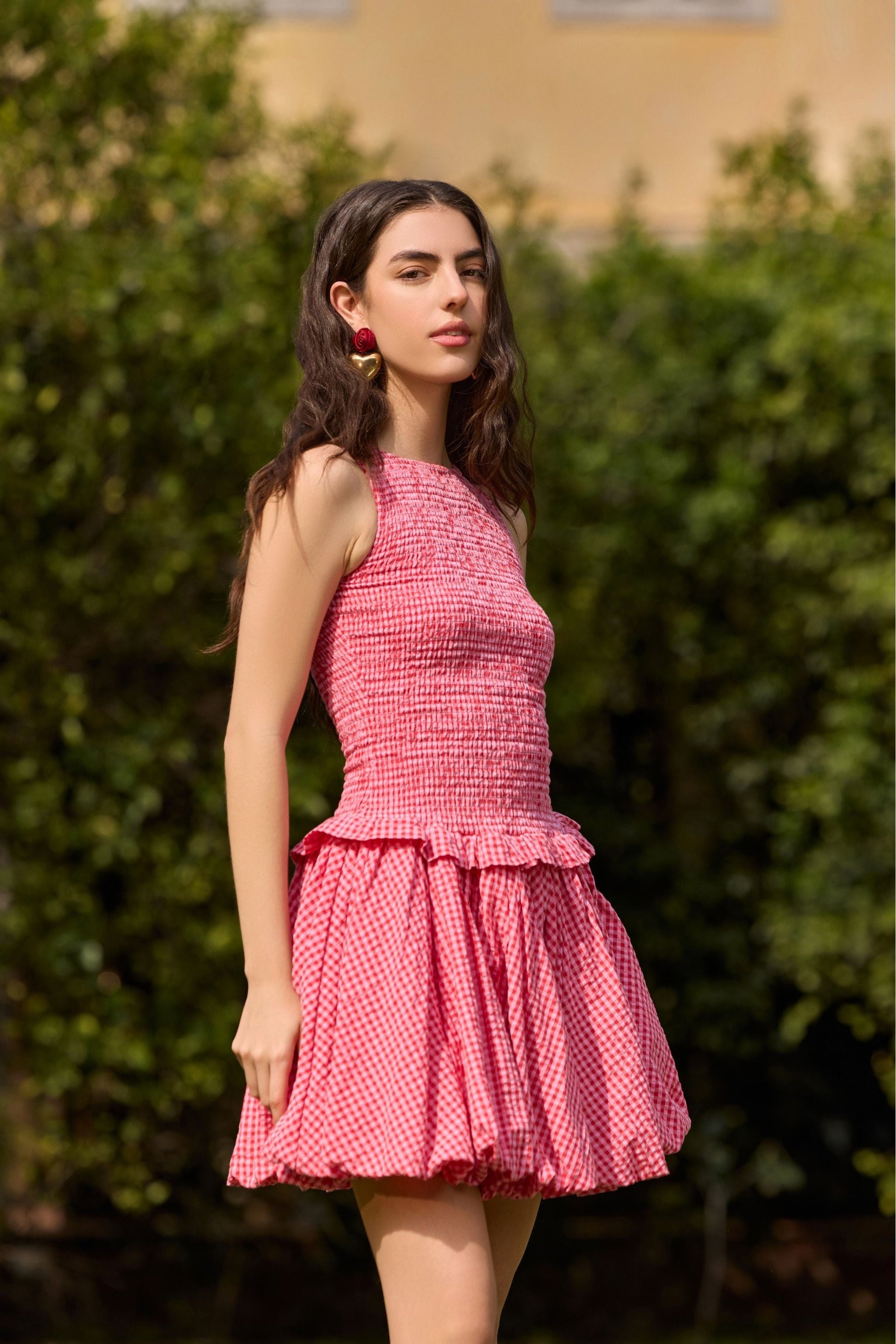 Red Gingham Bubble Hem Mini Dress