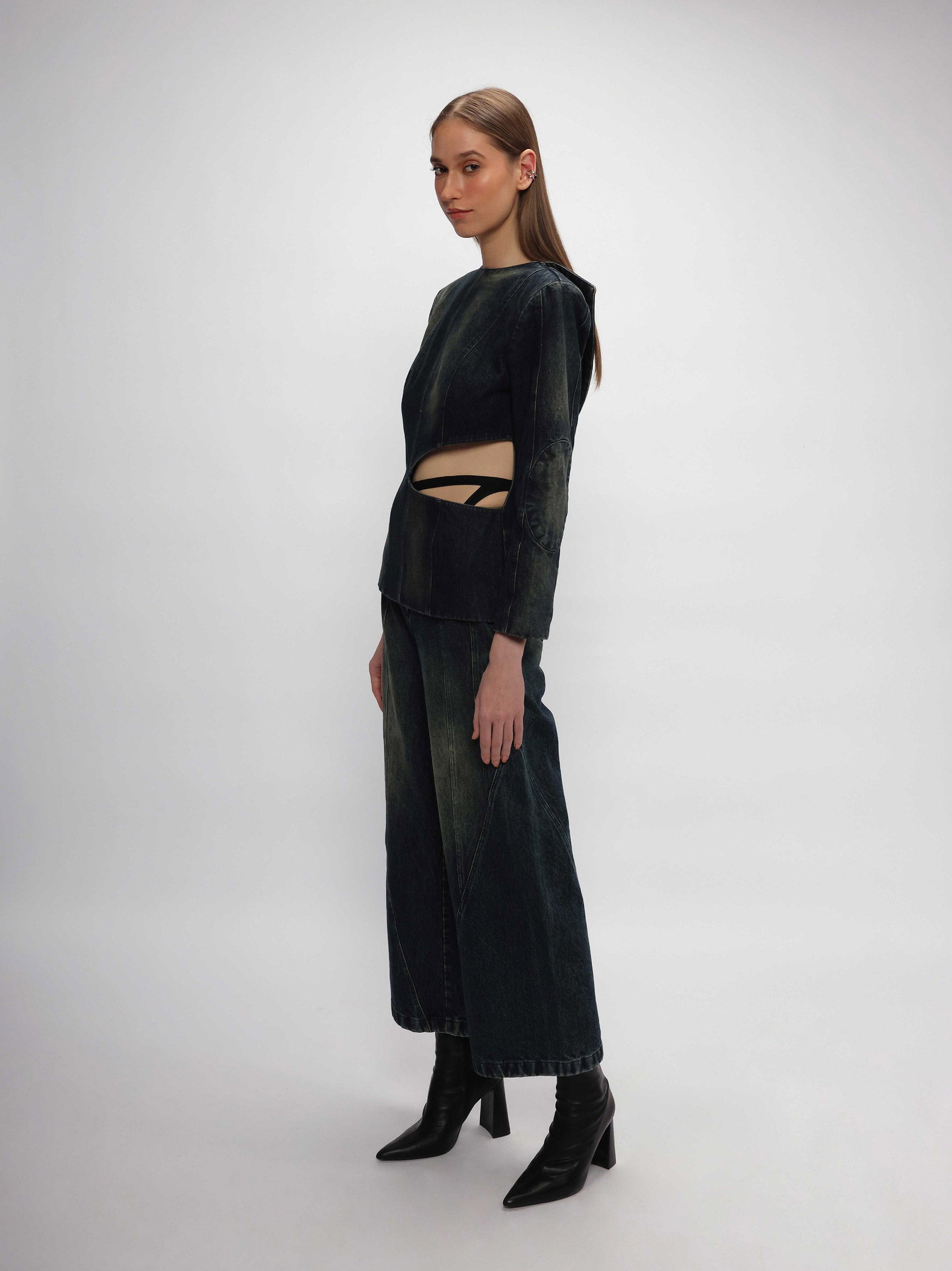 A striking pairing of deconstructed and tailored elements, these two pieces are a bold reimagining of classic denim. Designed to make a statement with their unique detailing and signature vintage wash, they offer an effortlessly chic yet versatile look.