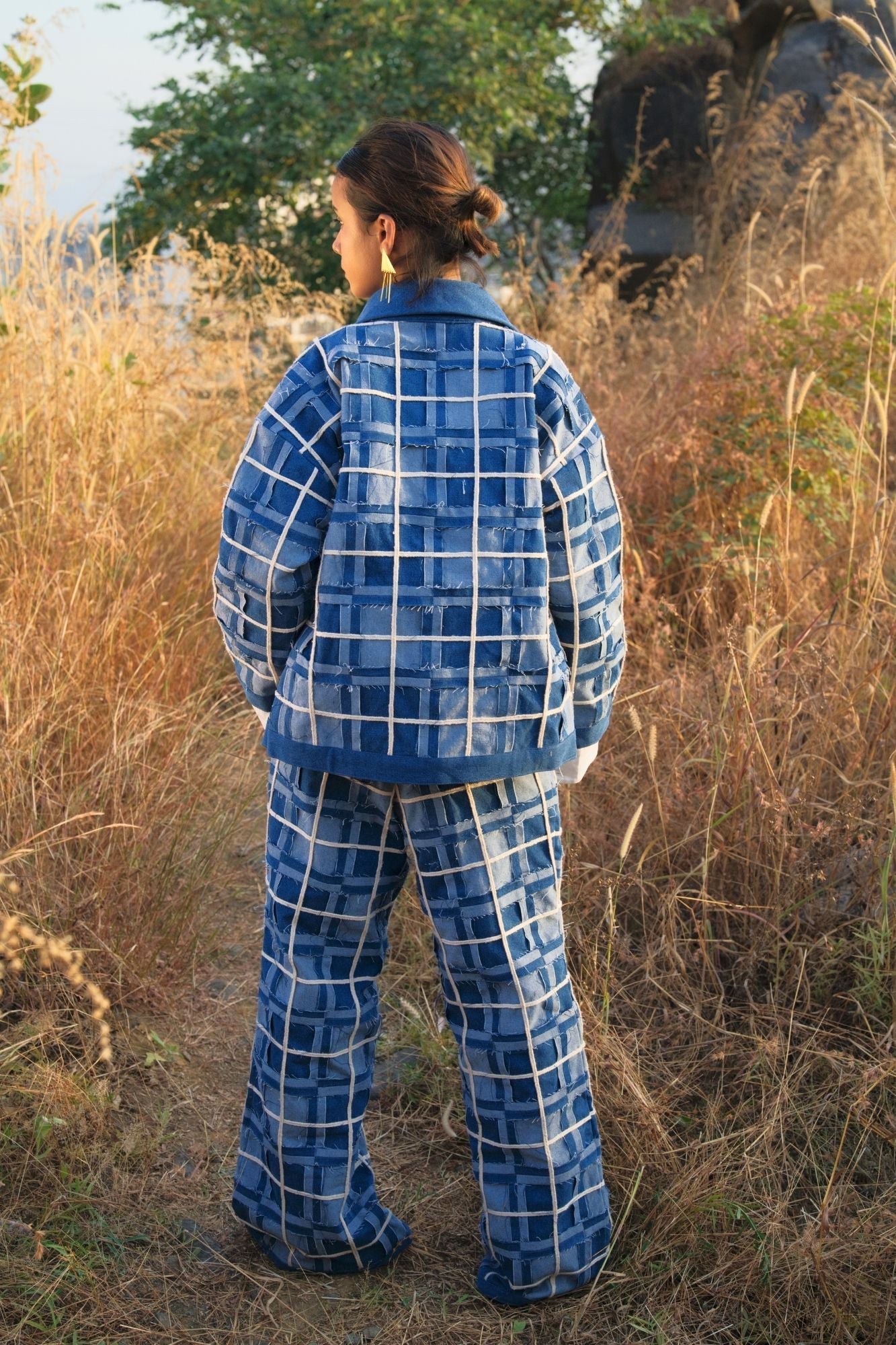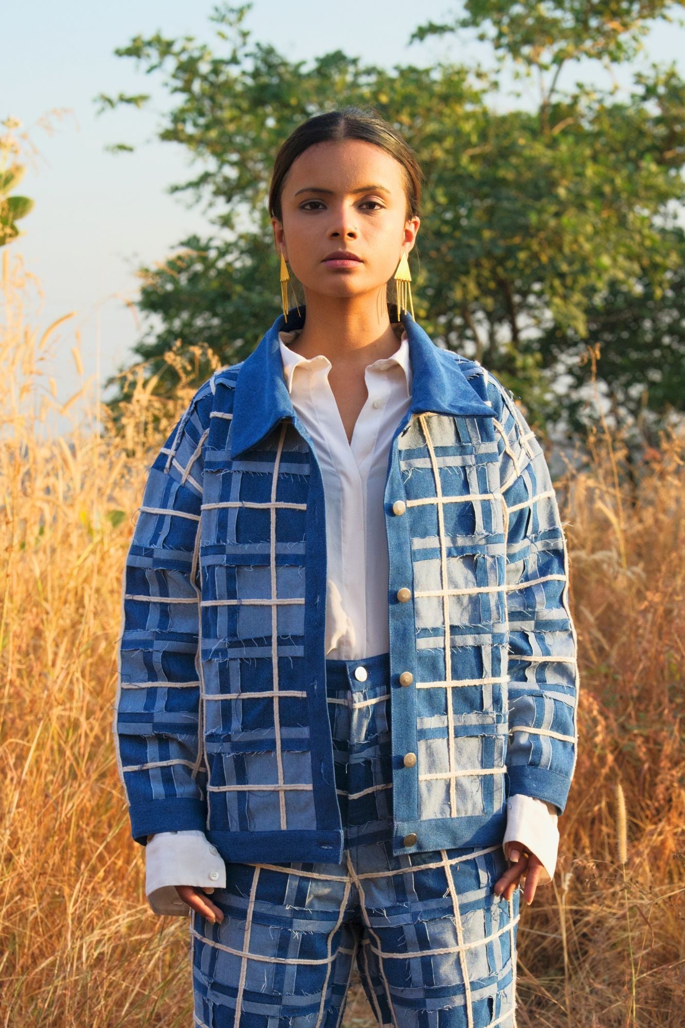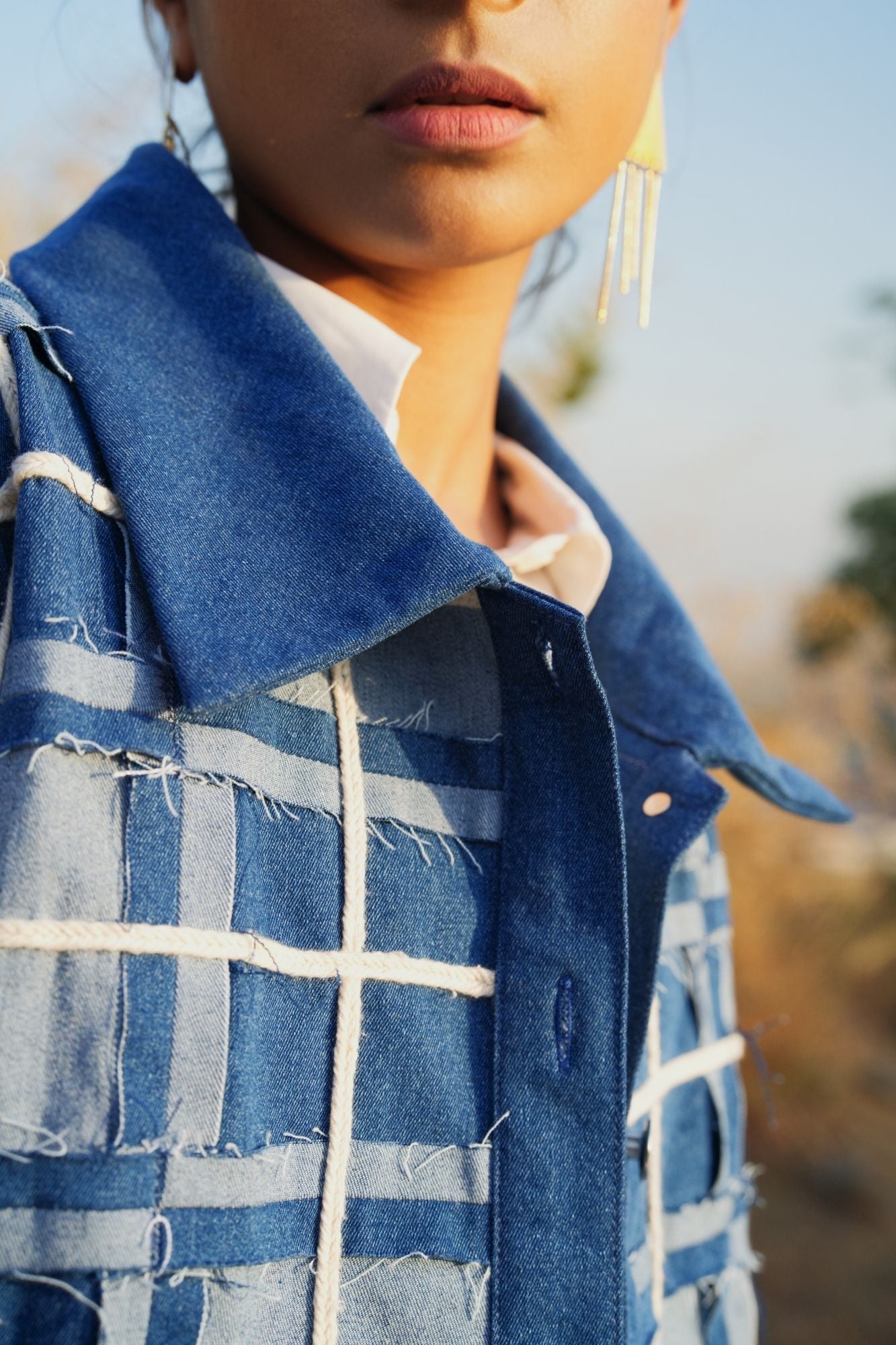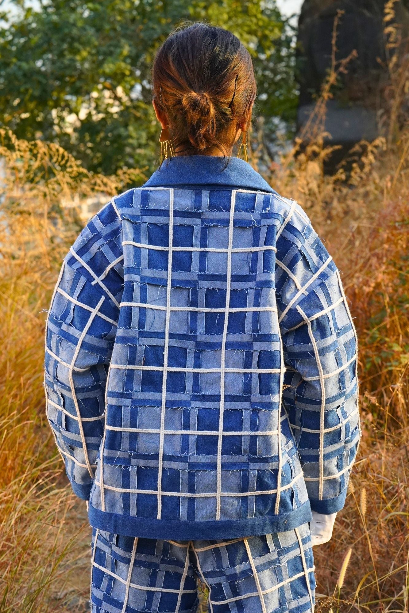 Description – Introducing GRID JACKET - expertly crafted with a unique patchwork of denim and checkered braids for a cool and stylish look. Handcrafted for added quality, these jackets are sure to make a statement. Elevate your wardrobe with GRID JACKET today!