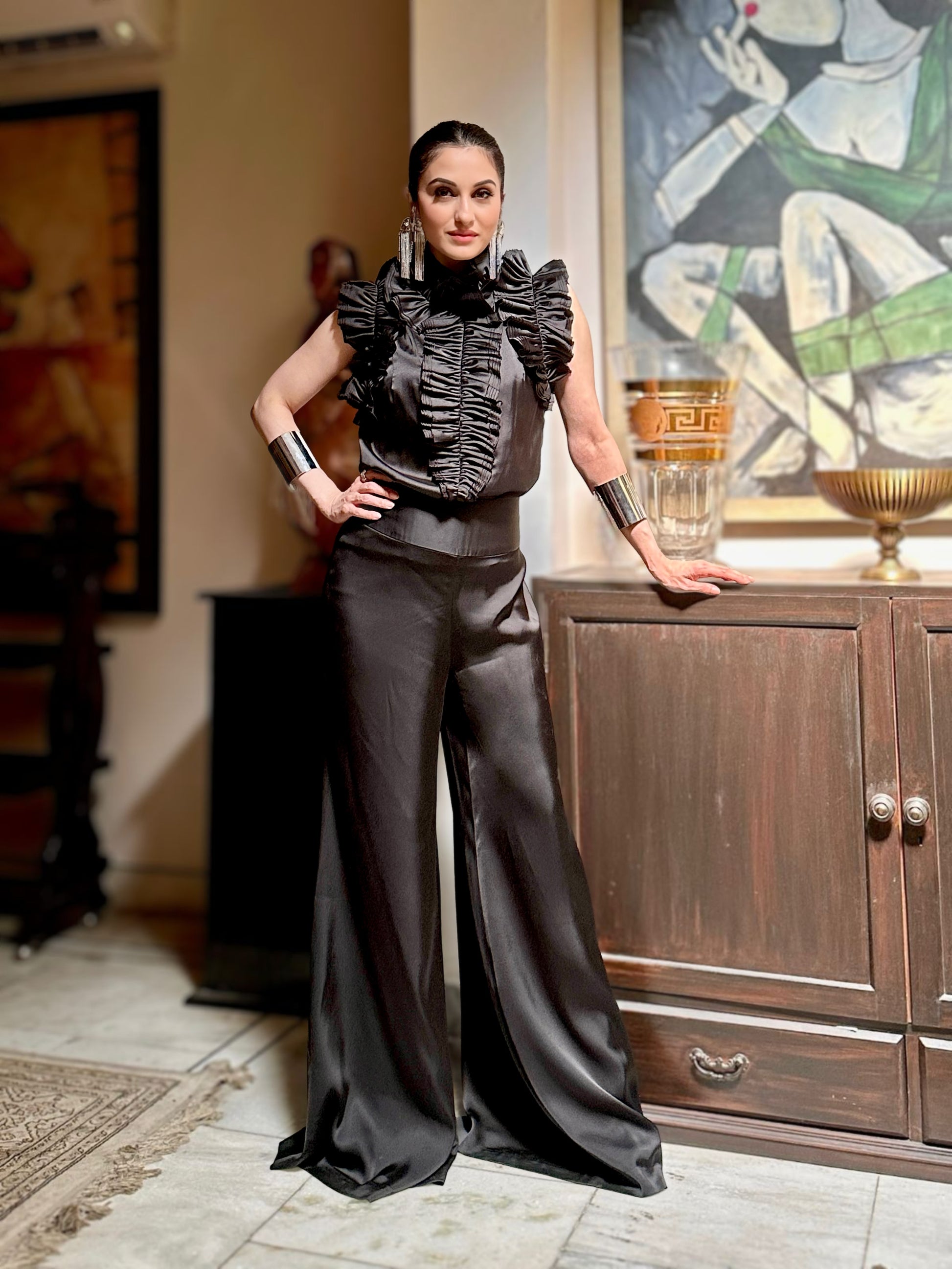 This top is a symphony of sophistication, where each ruffle flutters like a secret kept