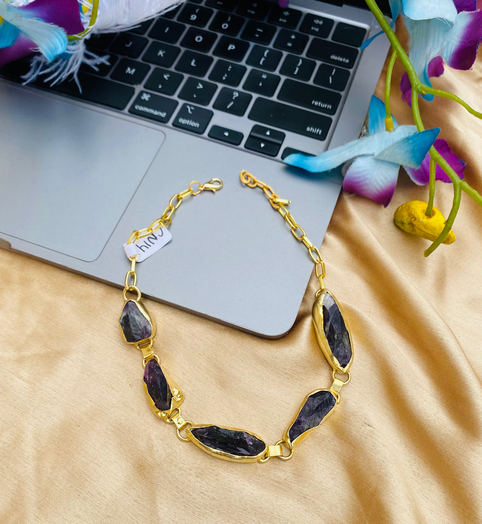 APATITE RAW STONE IN BRASS METAL WITH 18KT GOLD PLATING