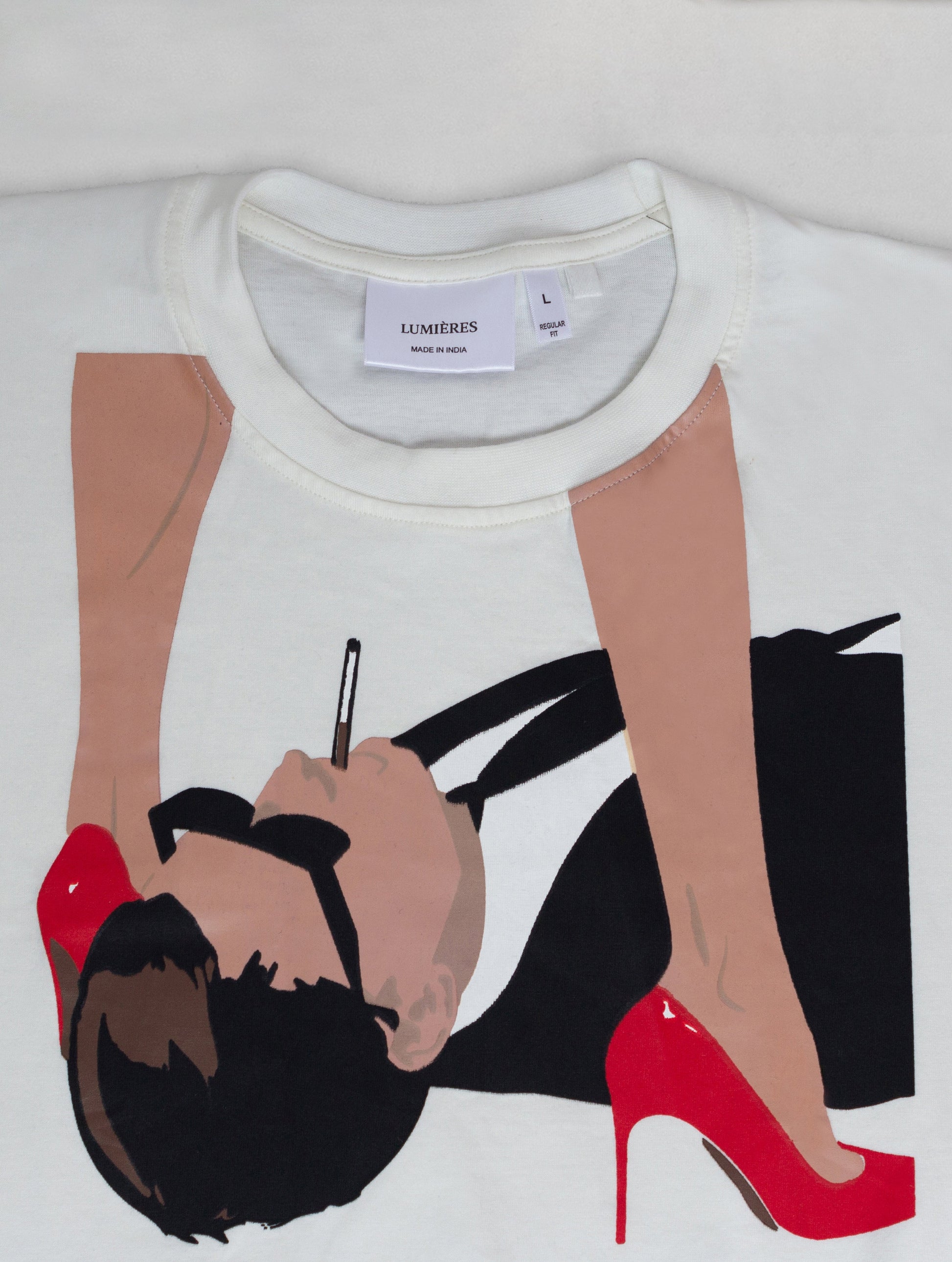 Unisex Regular Fit T-Shirt with crewneck and fitted sleeves available in 2 colorways : Charcoal and White. The design discards chauvinism and establishes assertiveness and confidence of a woman.