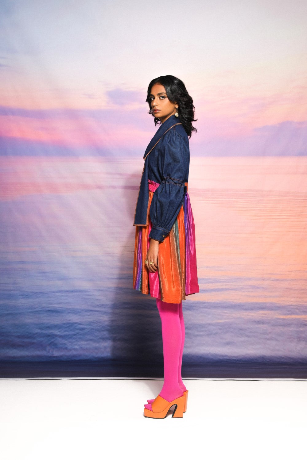 - A mix of cupro crepe and denim giving the dress a fresh look.