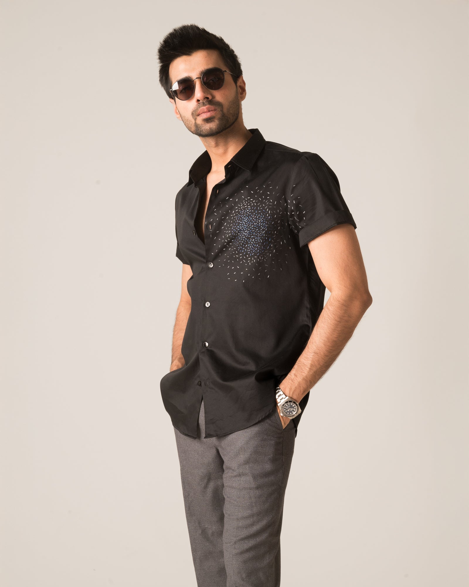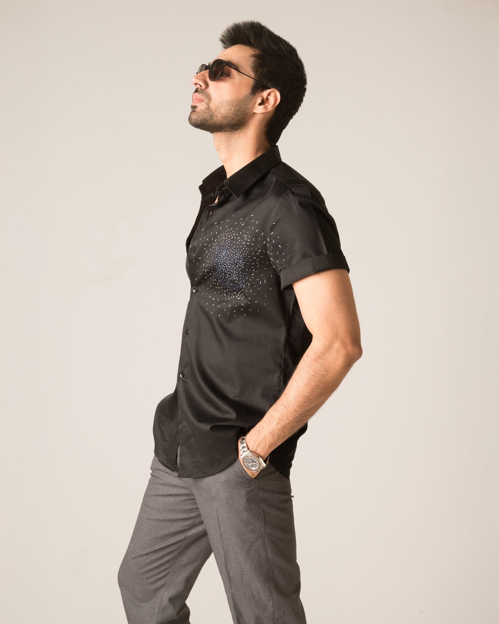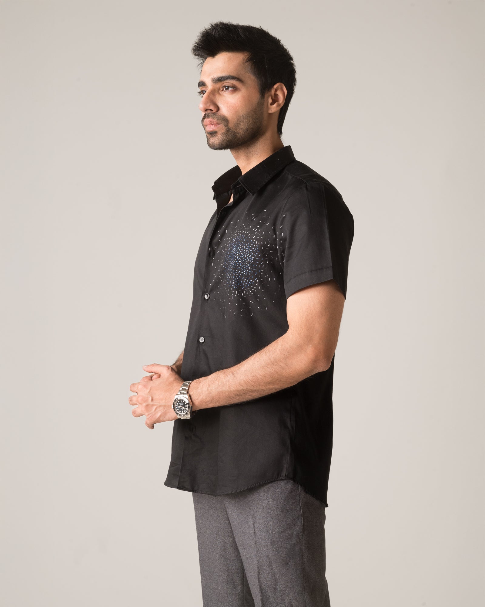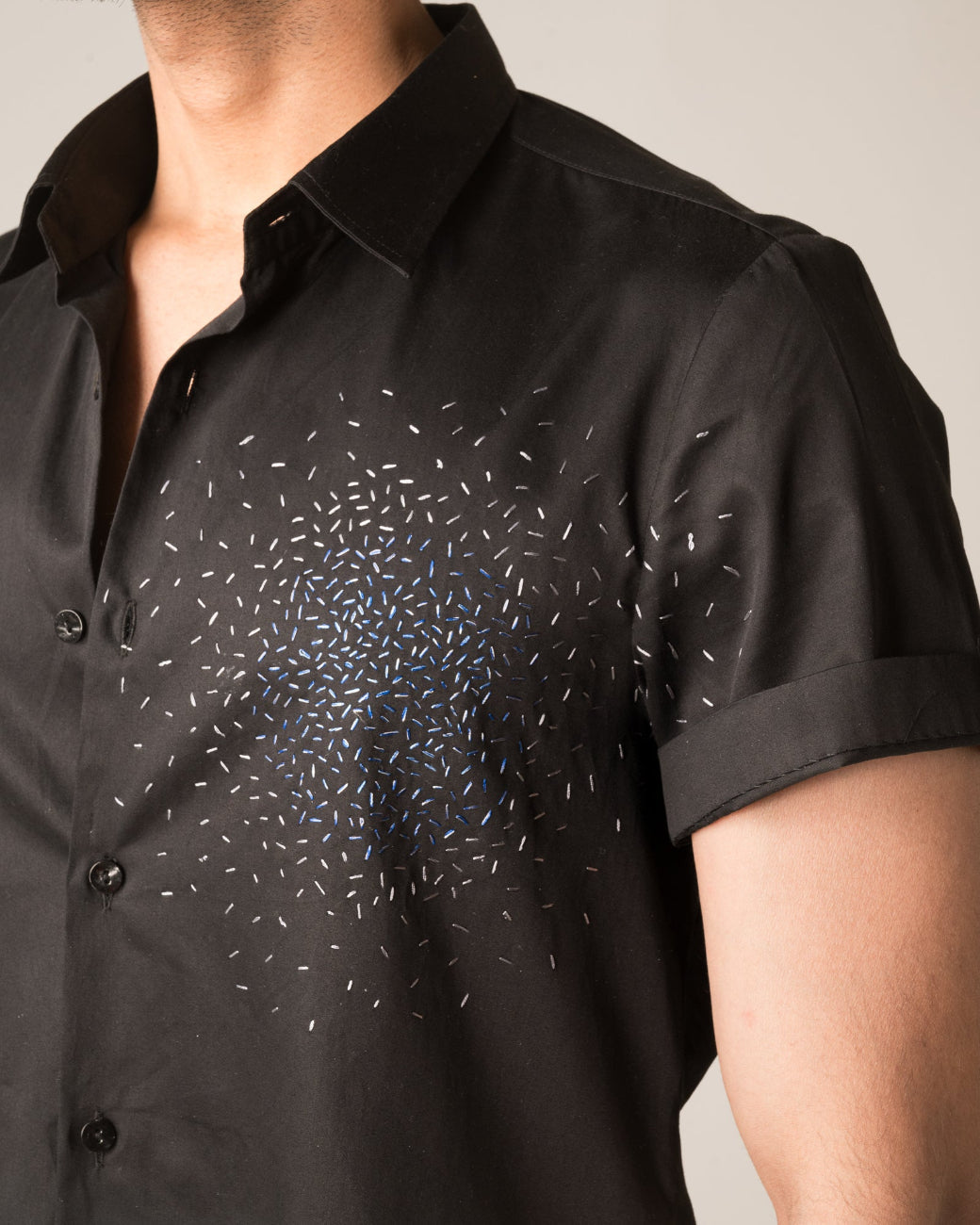 A clear bestseller, thread hand emboirdererd in shades of blue & grey on a premium egyptian cotton fabric. Perfect for hanging out with friends, vacations, parties and dinners