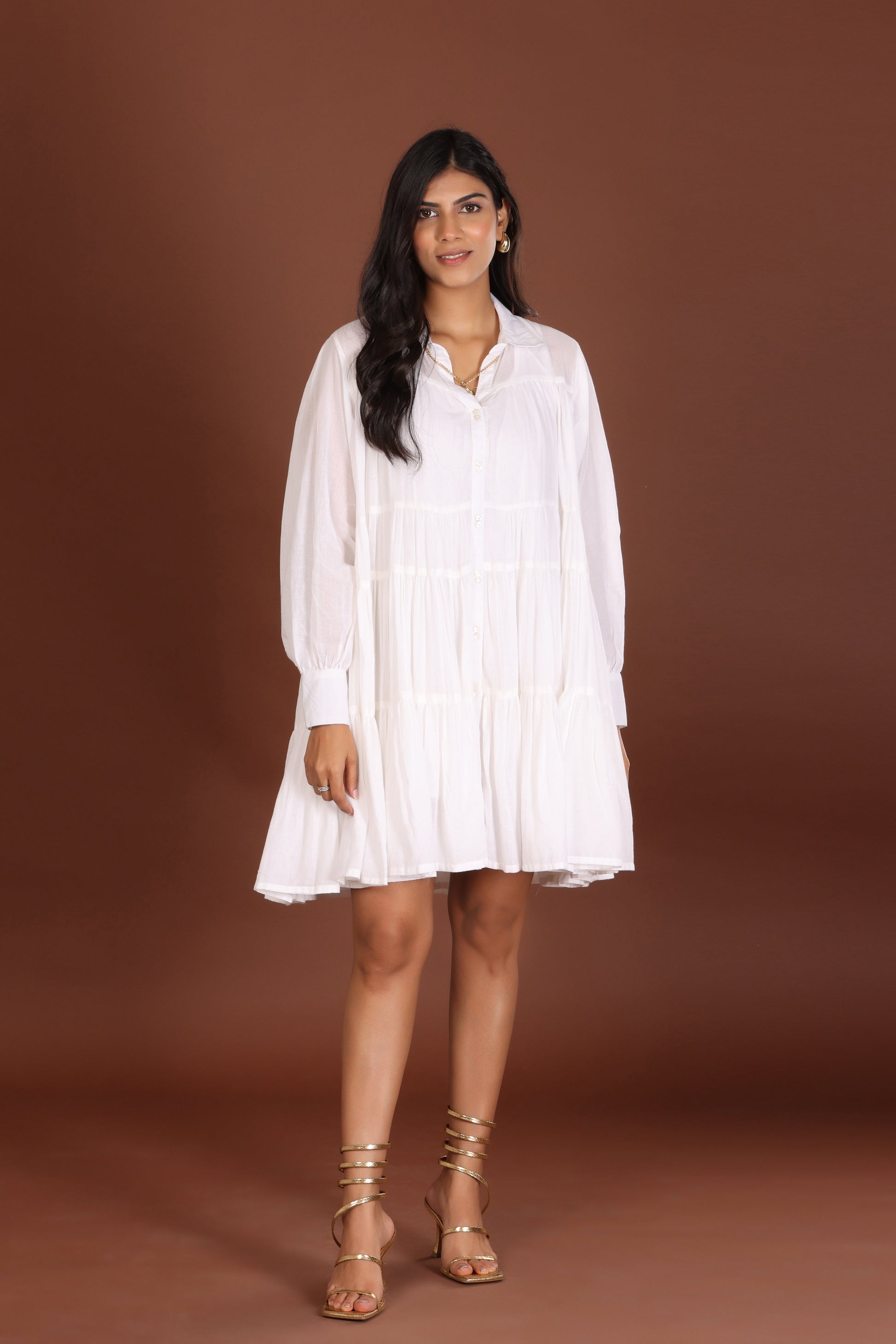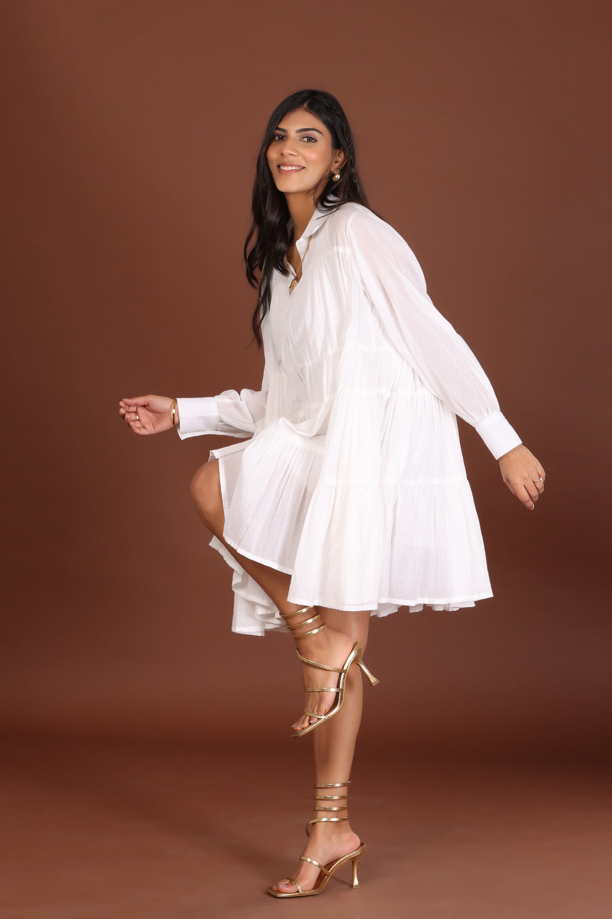 Introducing our elegant tiered dress: Elevate your fashion game effortlessly with this White voil short dress that promises both comfort and style and will surely turn heads of the people.
