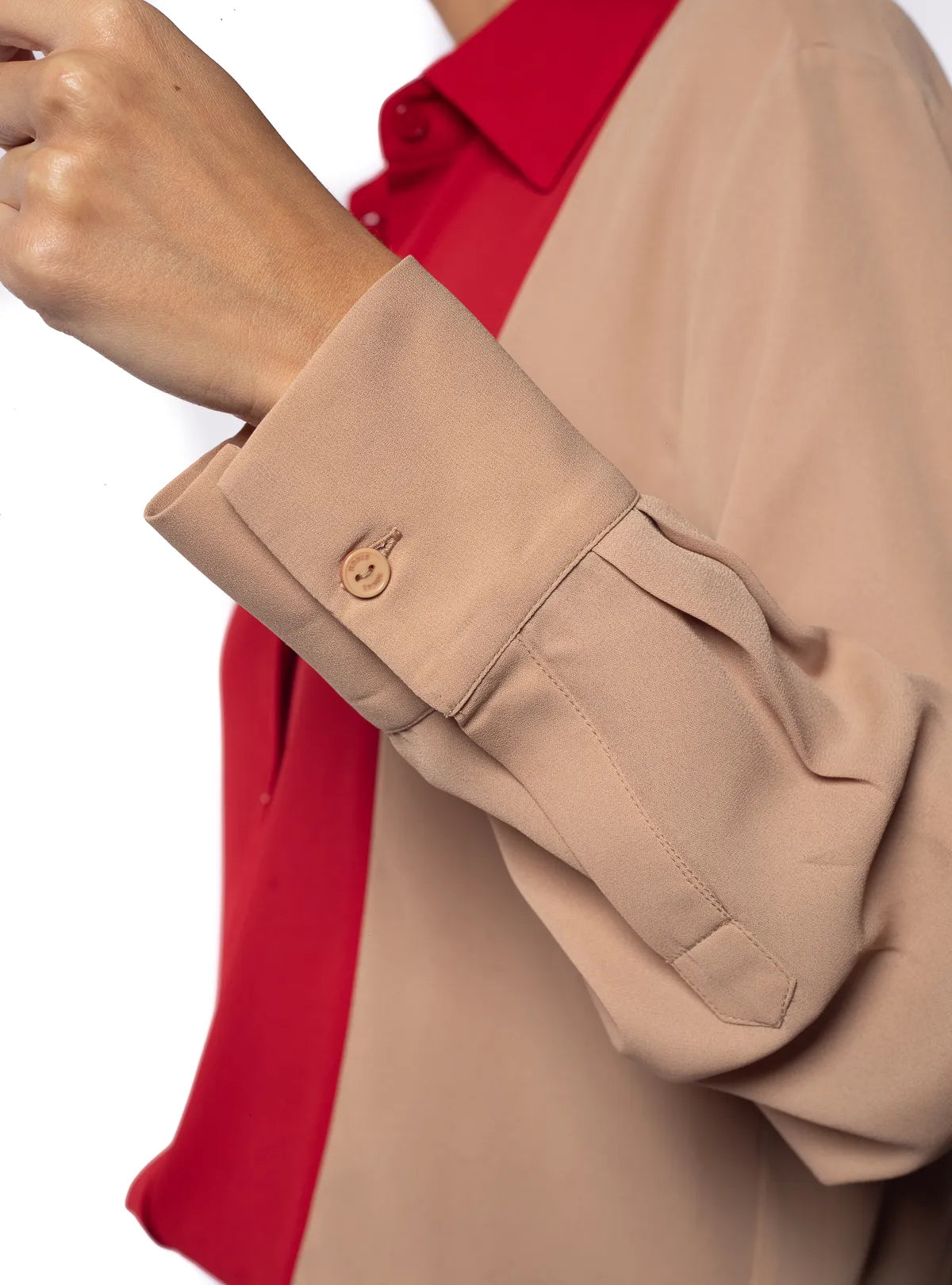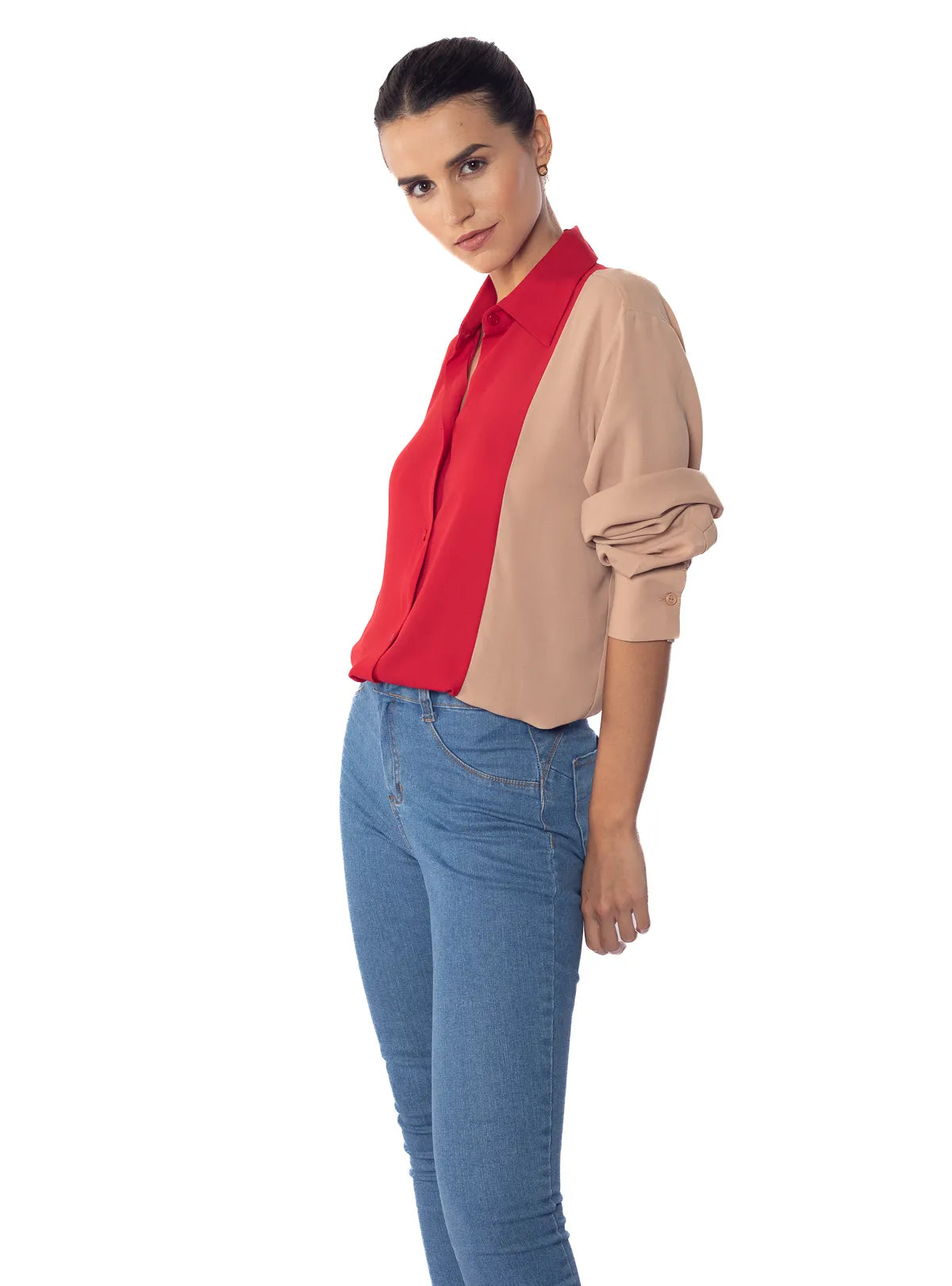 Elevate your basics with our timeless color-block shirt, expertly pairing fresh green and soothing blue hues. Clean staple design, perfectly proportioned for a versatile fit.