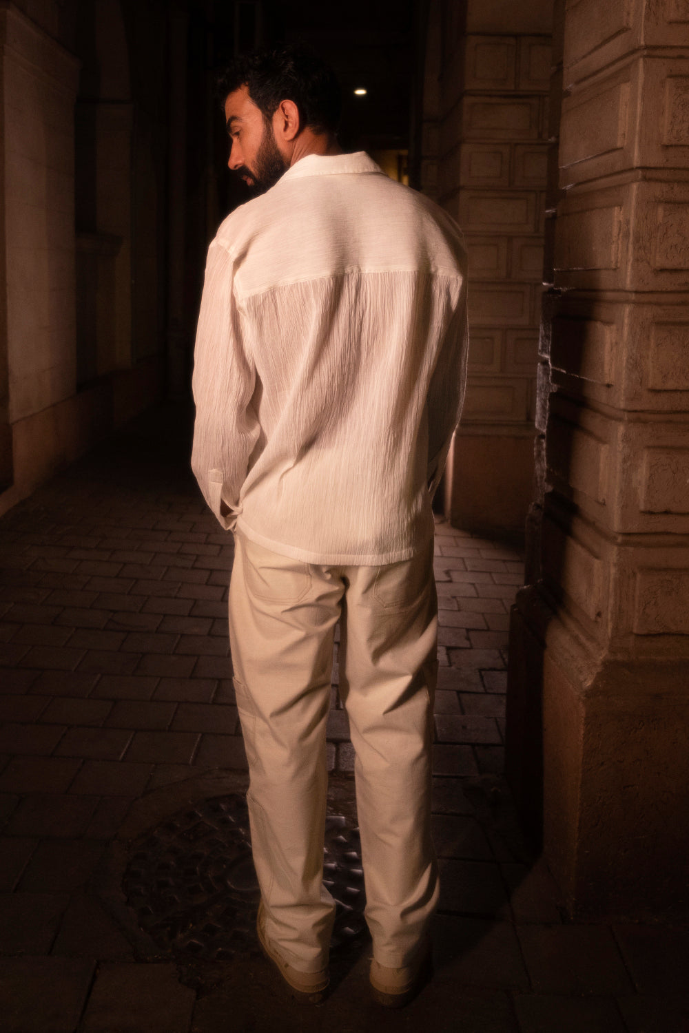 Experience elegance with our Sheer Wrinkle Shirt, designed for discerning tastes. Crafted with a delicate sheer fabric, this shirt showcases a unique wrinkle texture, offering a blend of sophistication and modern flair. Perfect for both formal engagements and chic casual outings.