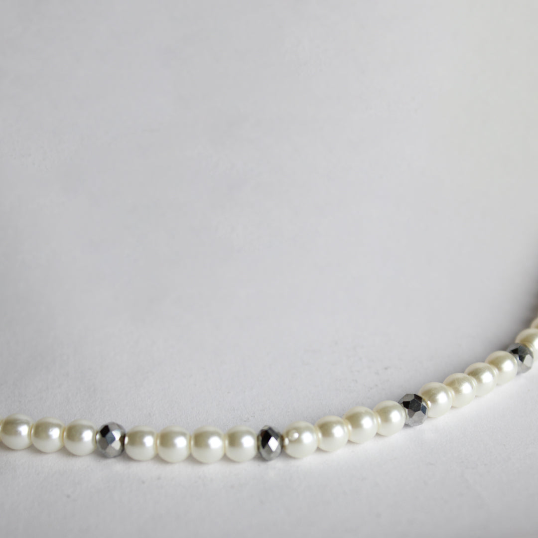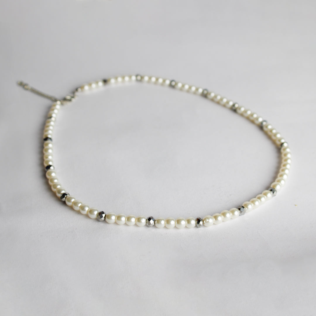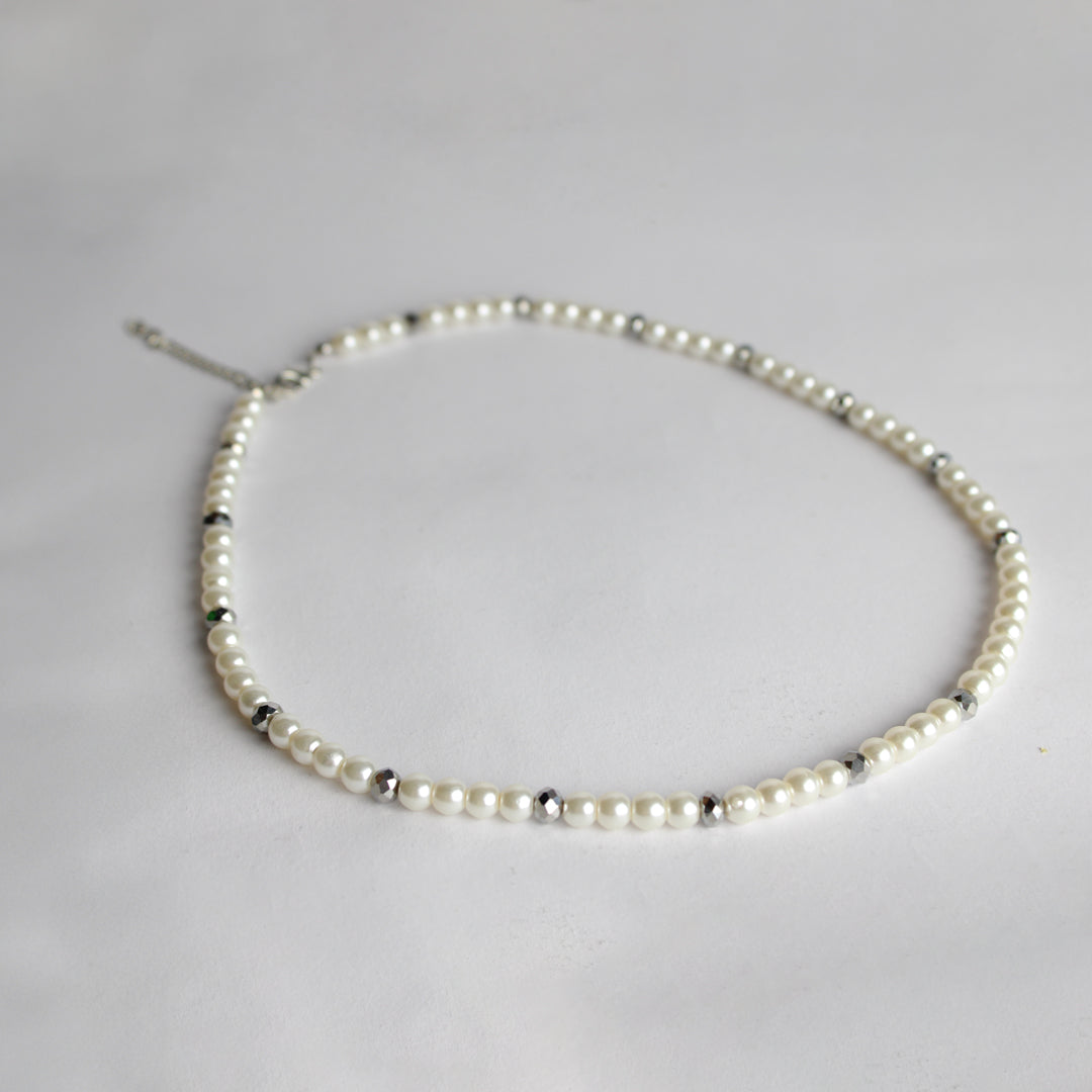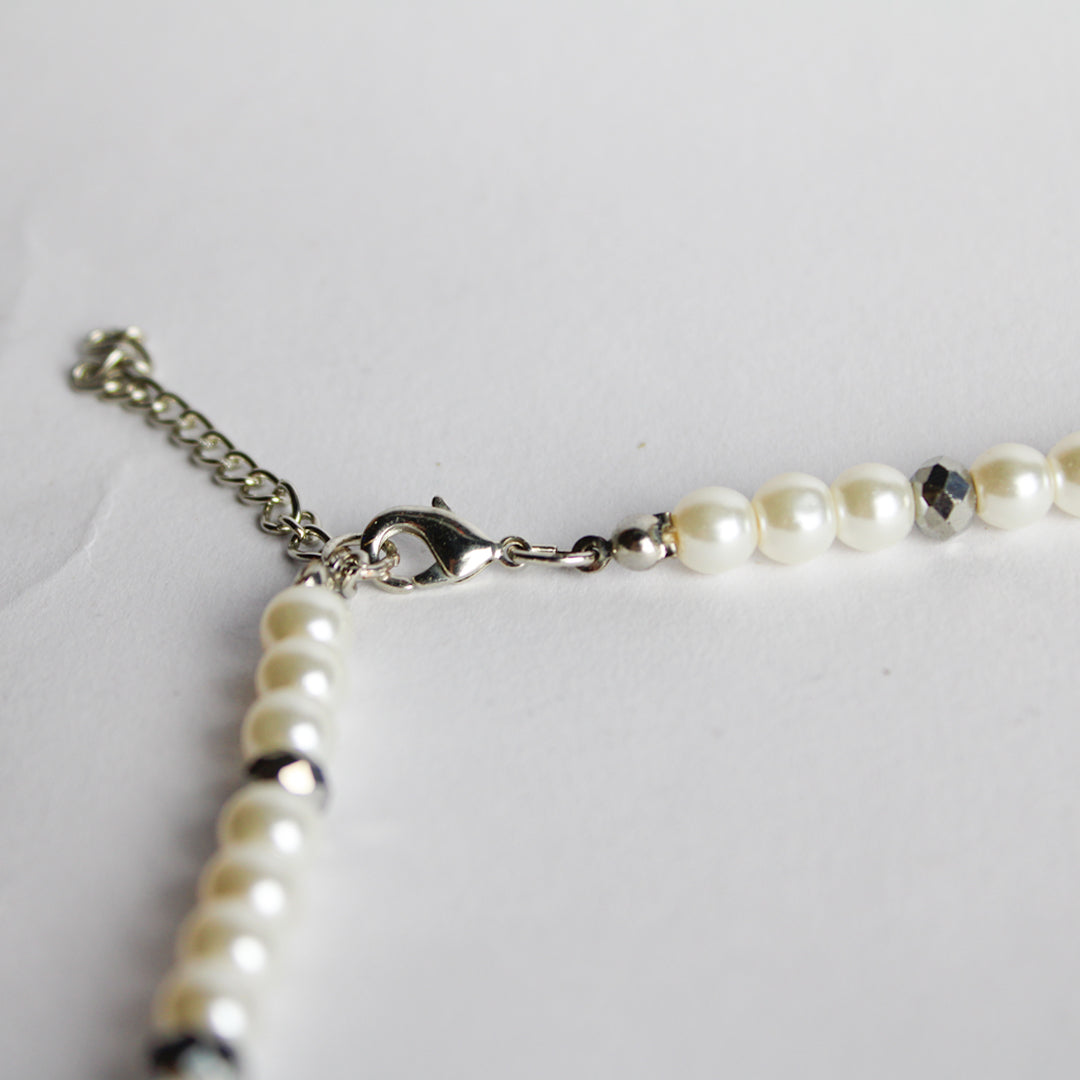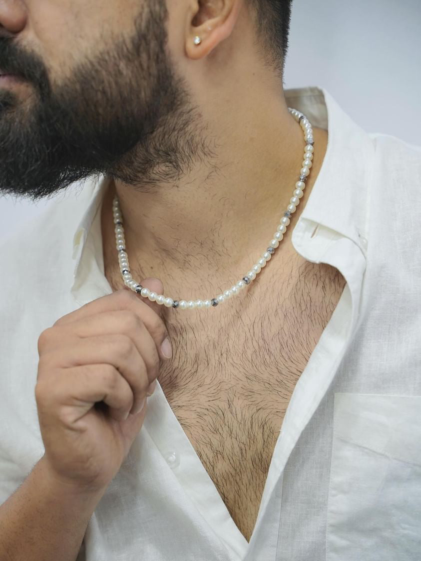 Expertly crafted from high-quality silver metal, this stunning Pearl Necklace adds an elegant touch to any outfit. The lustrous pearls add a classic and timeless appeal, making it the perfect accessory for any occasion. Elevate your style with the sophisticated beauty of this Silver Pearl Necklace.