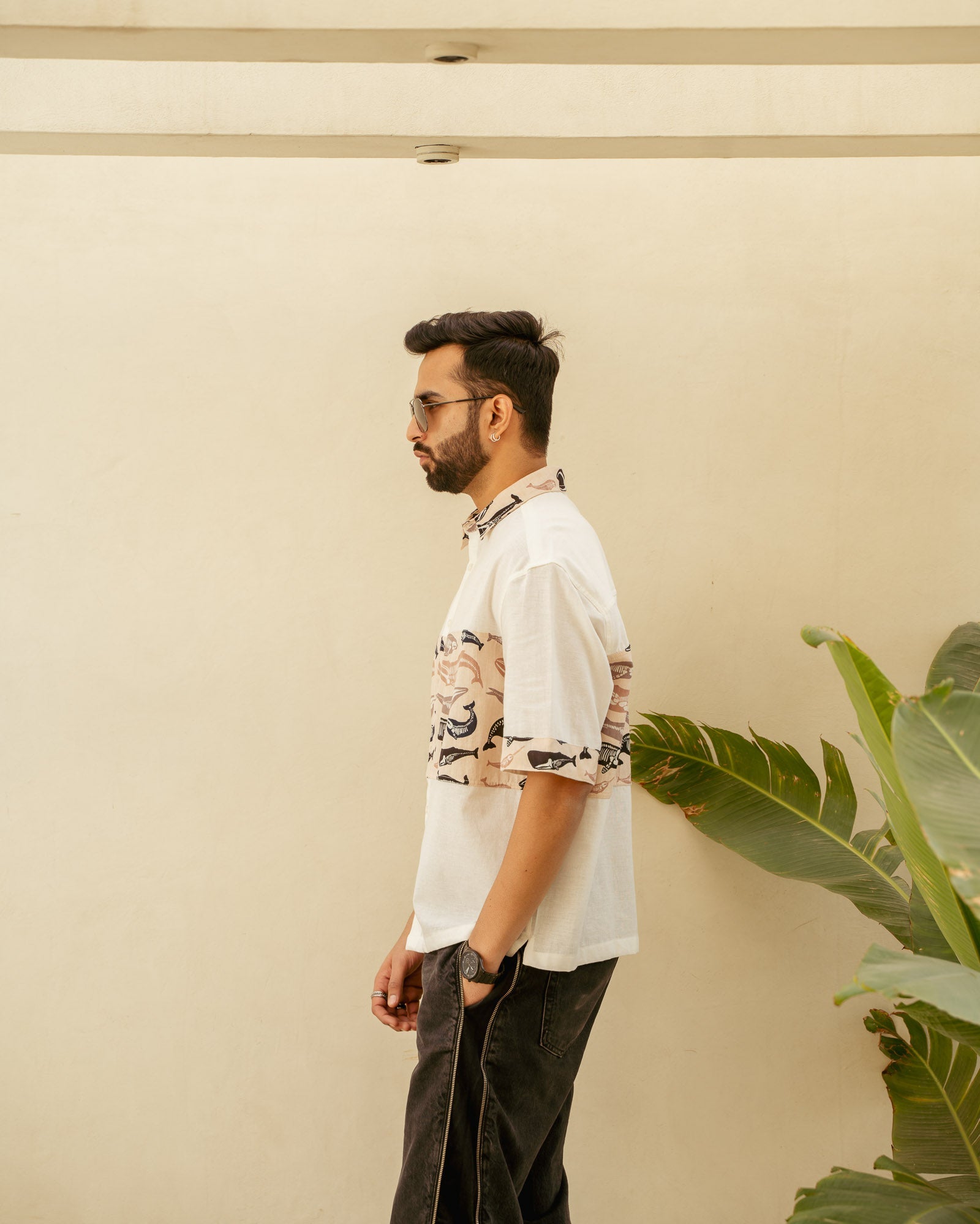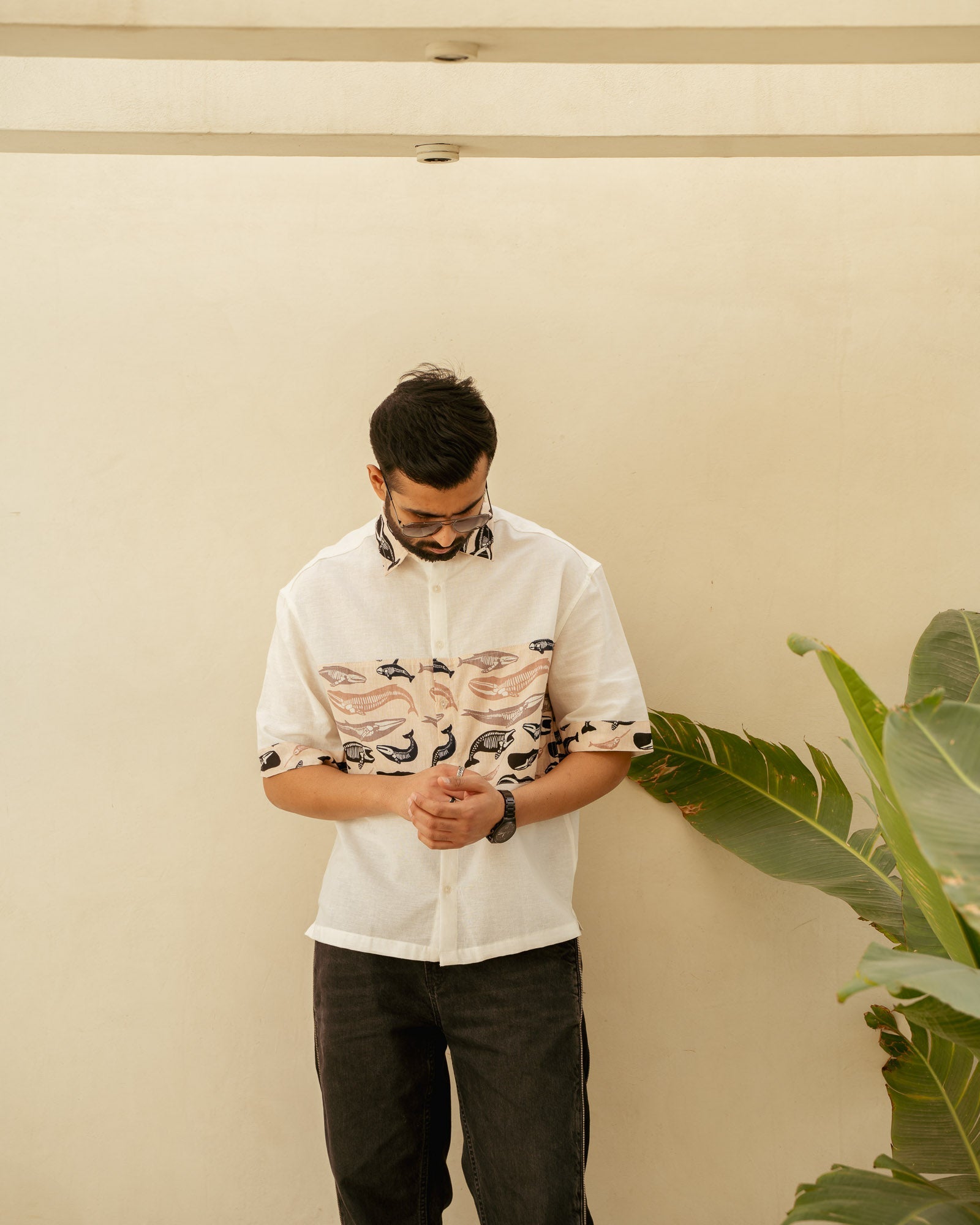Skeleton Fish Flirt Middle Patch Oversize Linen Shirt