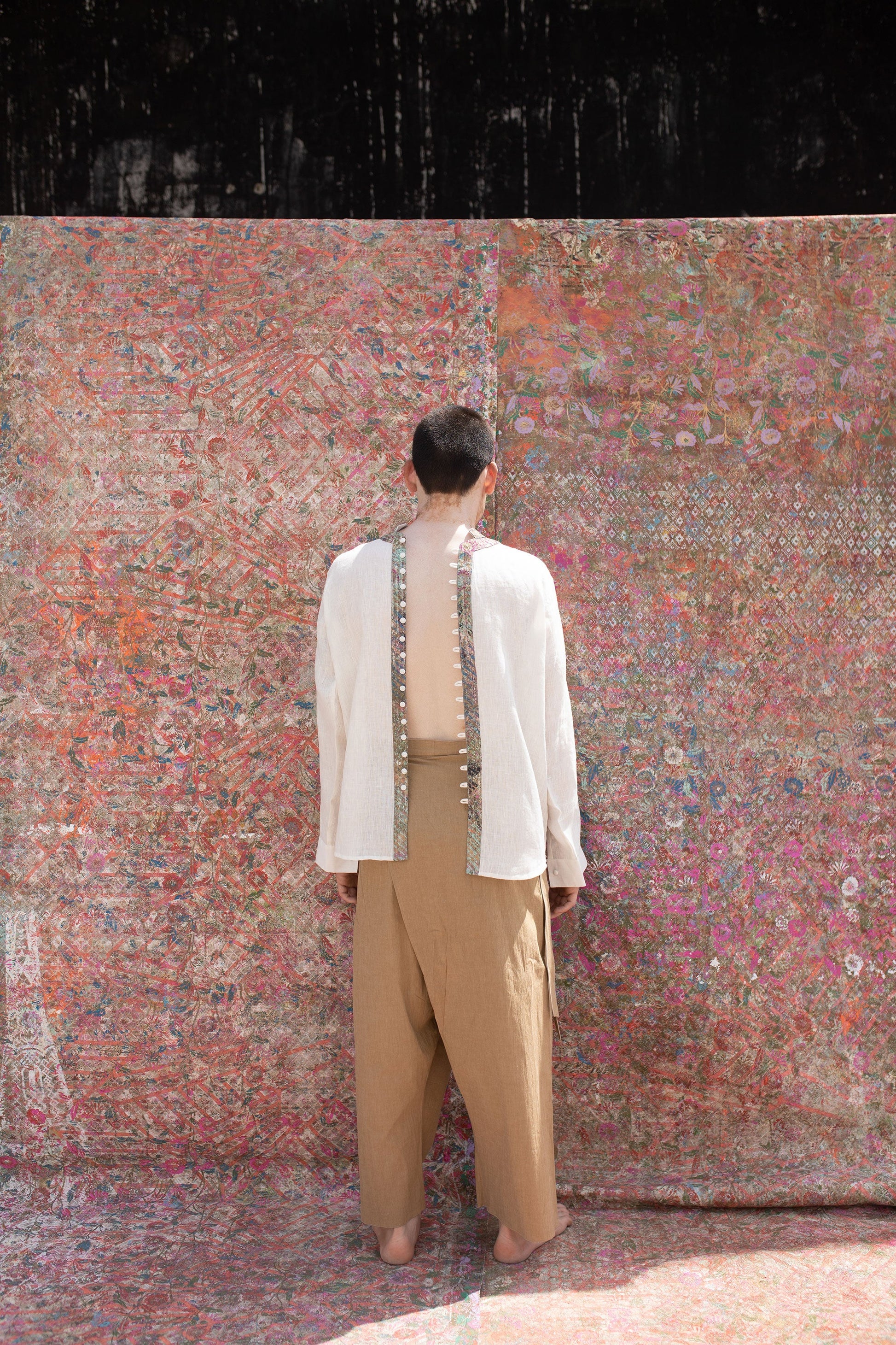 The Patina Collection is created using soft handwoven Bhagalpuri linen. These textiles are highlighted with different geometrical textures and patterns in different colors using recycled hand block print using hand carved traditional wooden blocks from Sanganer.