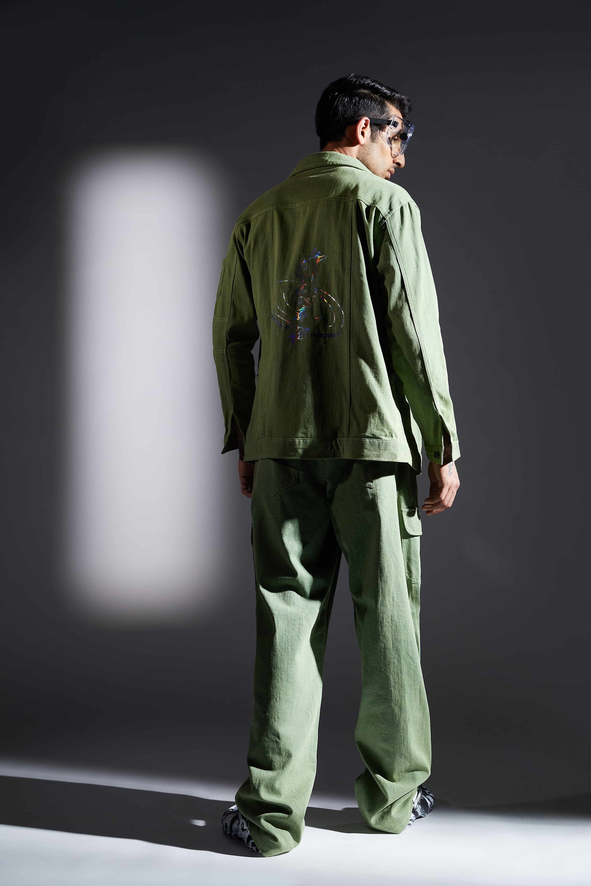 Green denim straight fit pants. Detailed with Flap patch pocket along with side pockets. This collection is in collaboration with Muskaan. An NGO for specially abled. 15% of our net profits will be donated for their welfare.