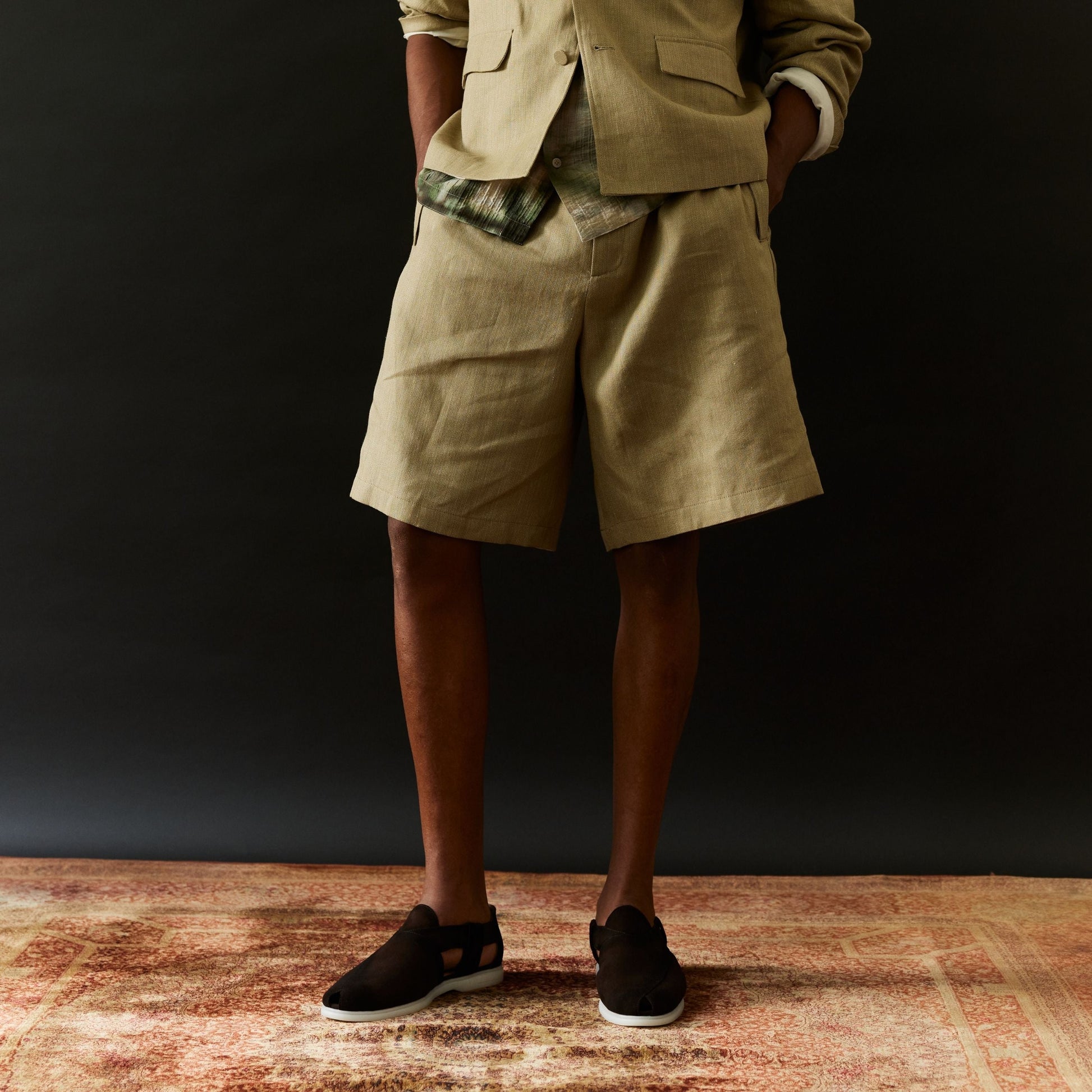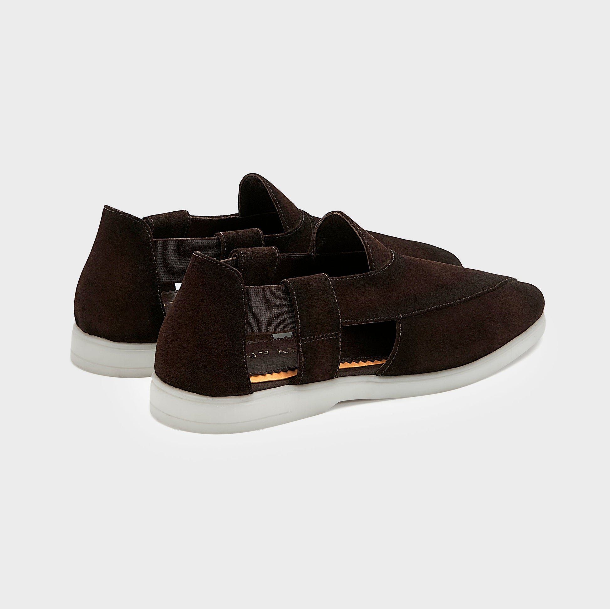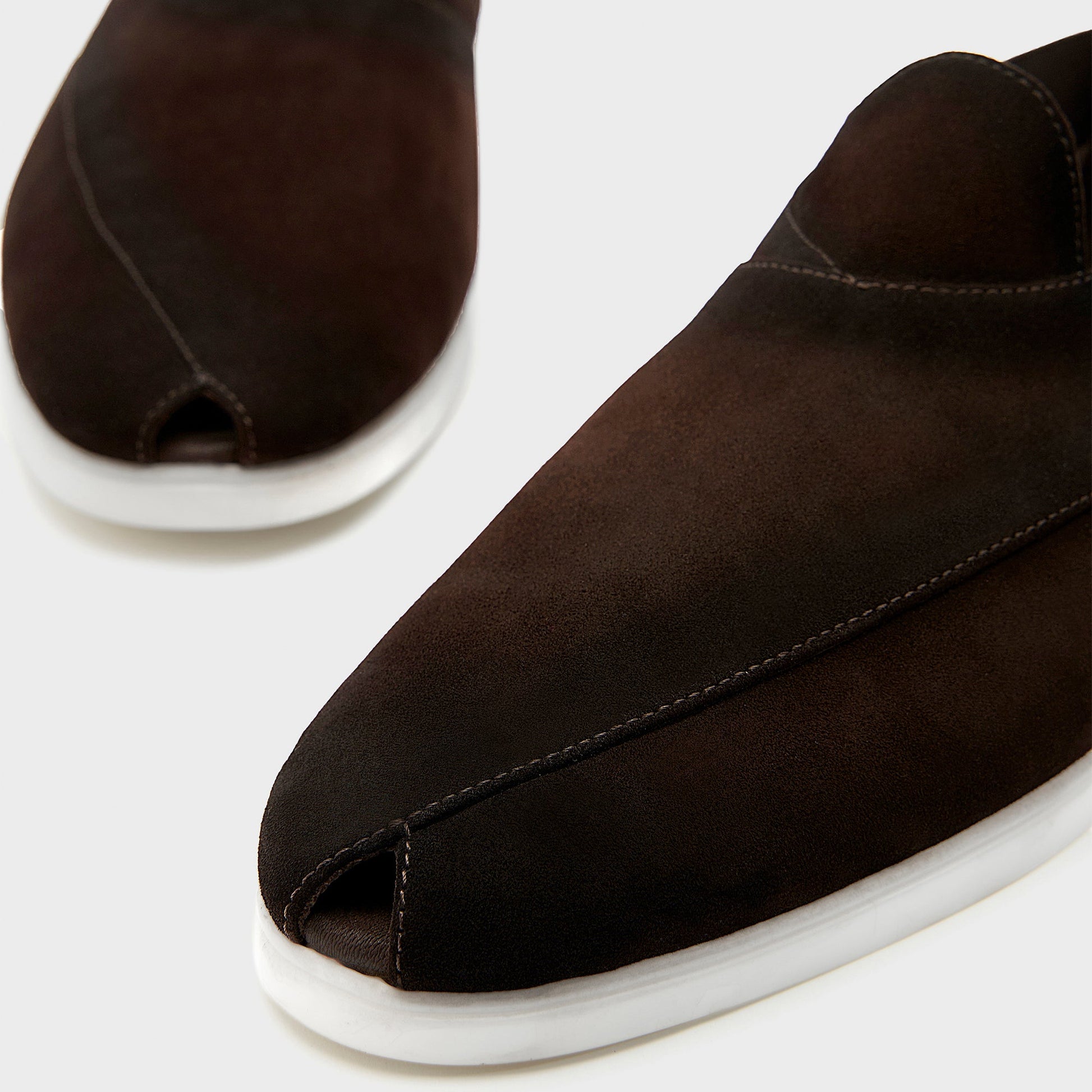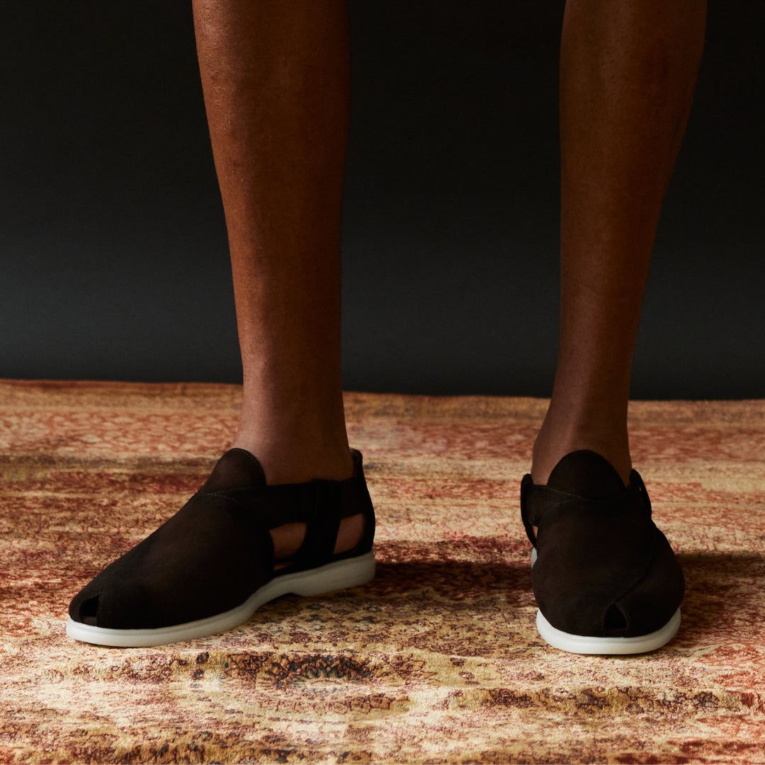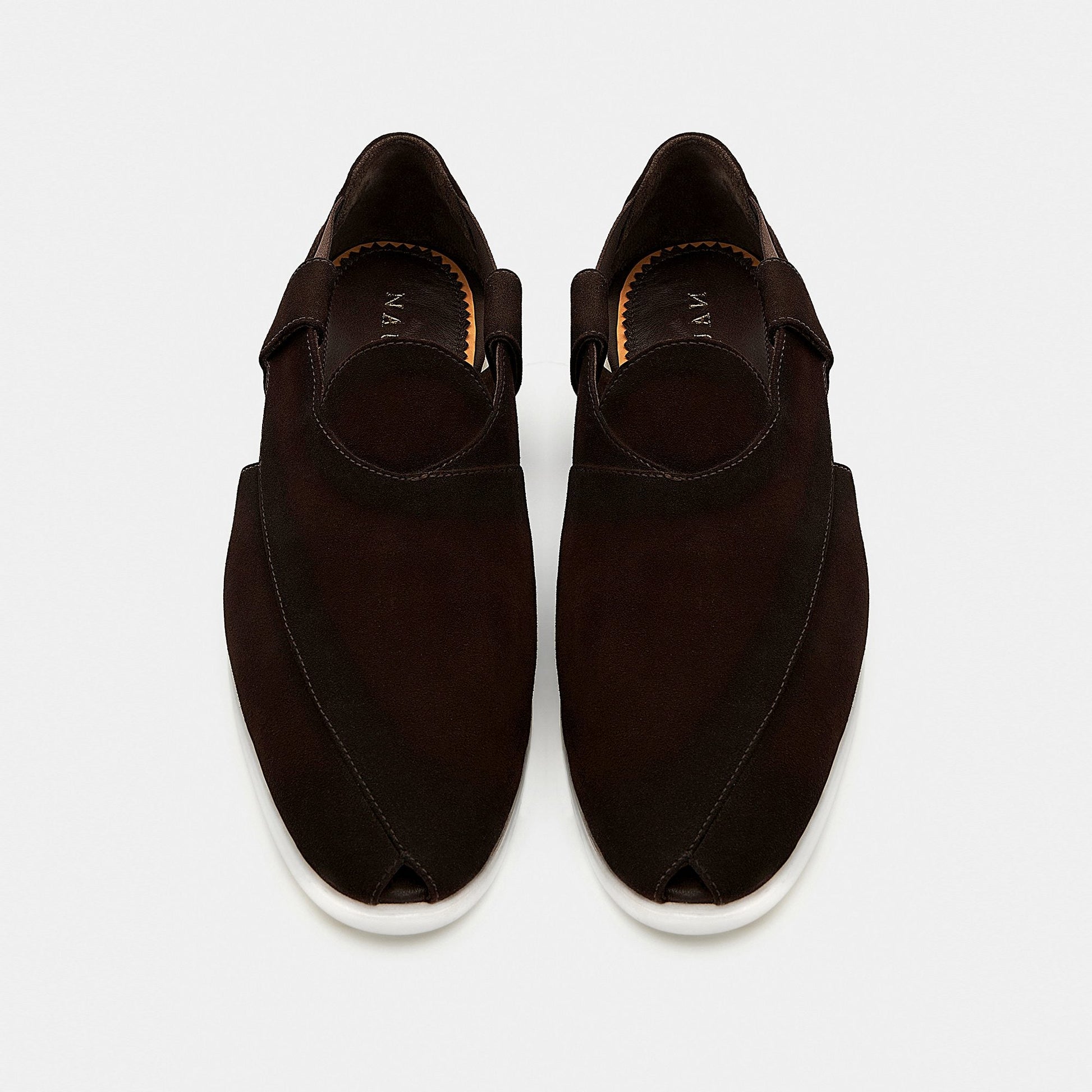 The classic Peshauri, reimagined with a slightly heeled rubber sole for a modern touch. The understated silhouette and sharp design, combined with pebble leather and buttery lamb lining, make each handmade pair unique and perfect for casual summer wear.