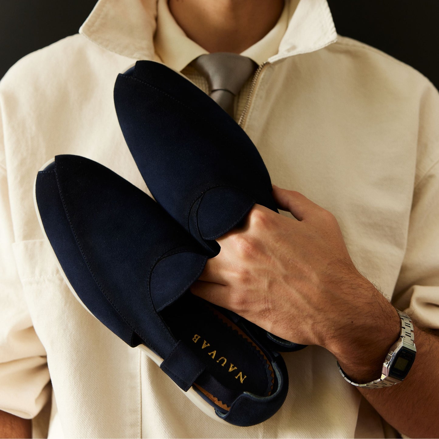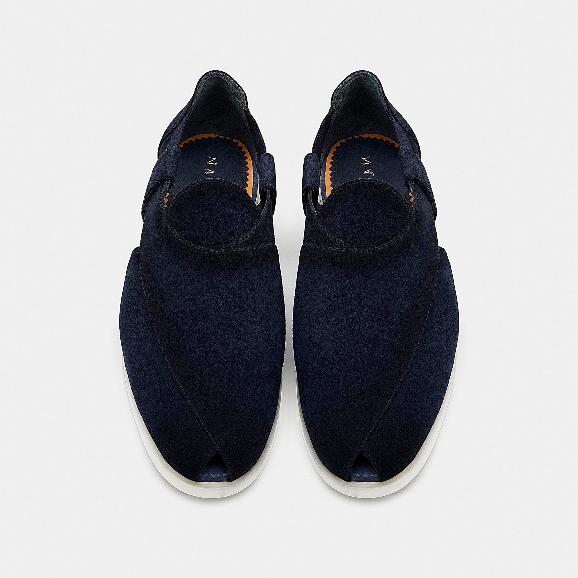 The classic Peshauri, reimagined with a slightly heeled rubber sole for a modern touch. The understated silhouette and sharp design, combined with pebble leather and buttery lamb lining, make each handmade pair unique and perfect for casual summer wear.