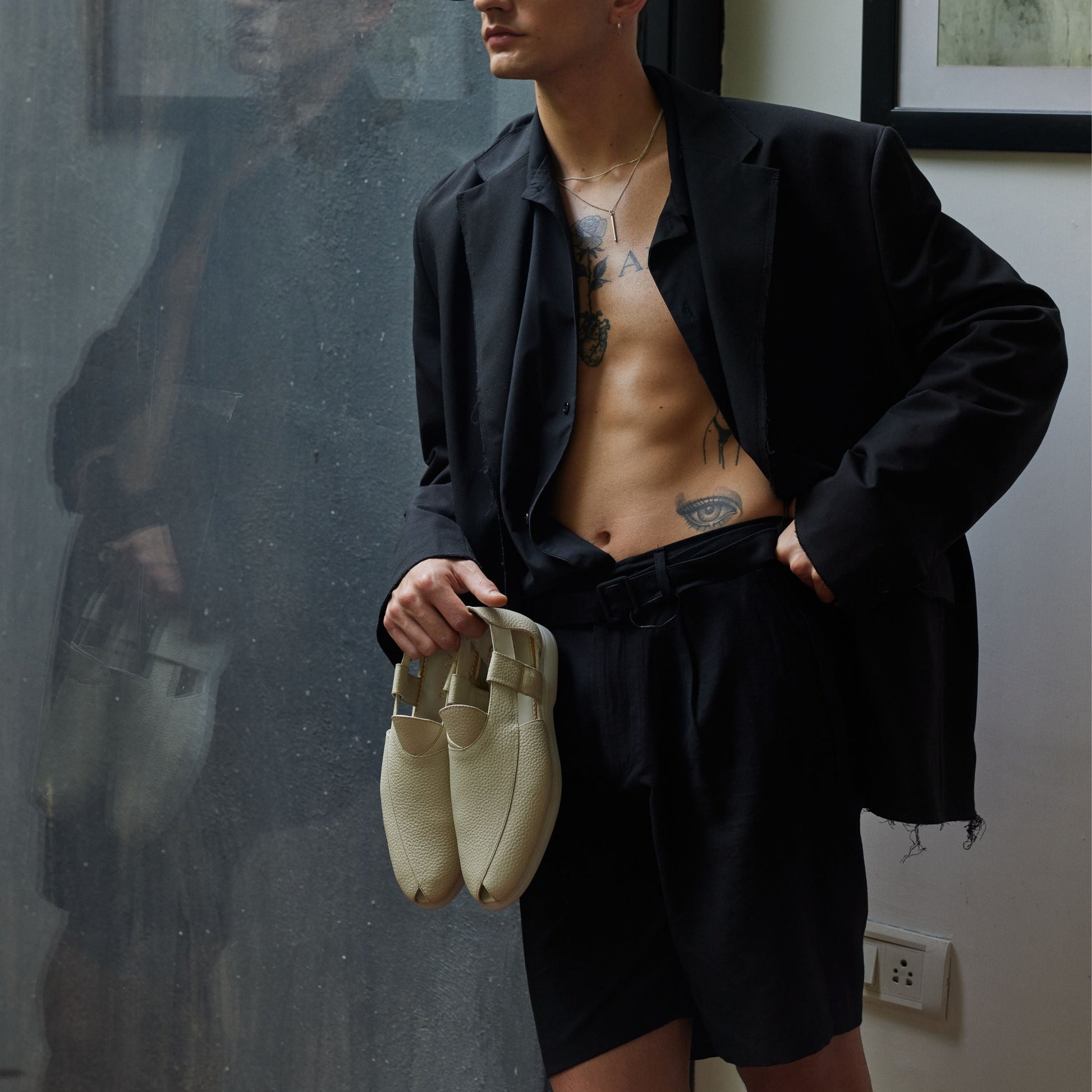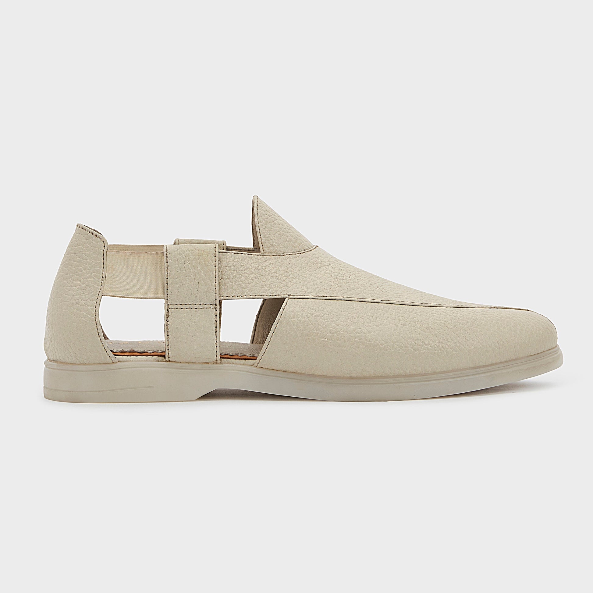 The classic Peshauri, reimagined with a slightly heeled rubber sole for a modern touch. The understated silhouette and sharp design, combined with pebble leather and buttery lamb lining, make each handmade pair unique and perfect for casual summer wear.