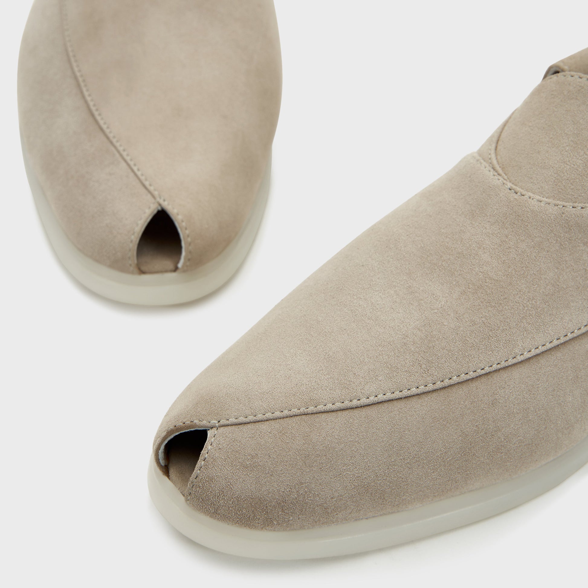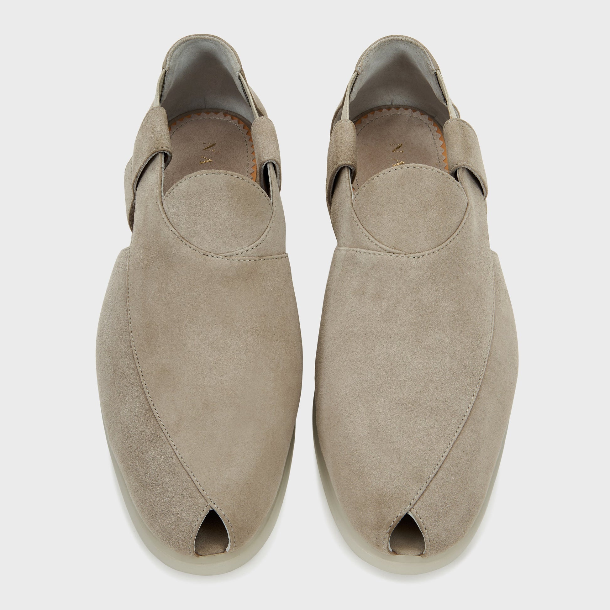The classic Peshauri, reimagined with a slightly heeled rubber sole for a modern touch. The understated silhouette and sharp design, combined with pebble leather and buttery lamb lining, make each handmade pair unique and perfect for casual summer wear.