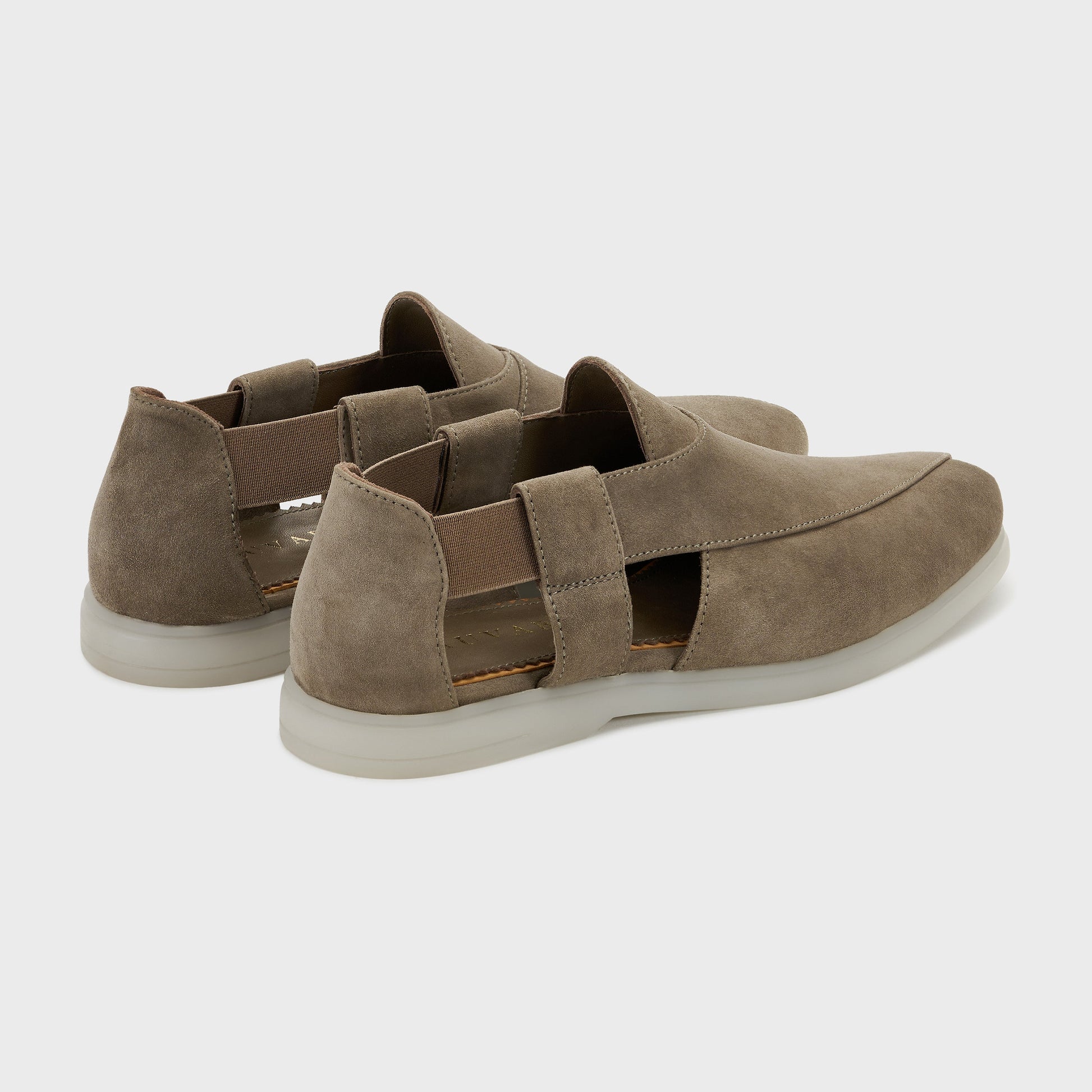 The classic Peshauri, reimagined with a slightly heeled rubber sole for a modern touch. The understated silhouette and sharp design, combined with pebble leather and buttery lamb lining, make each handmade pair unique and perfect for casual summer wear.