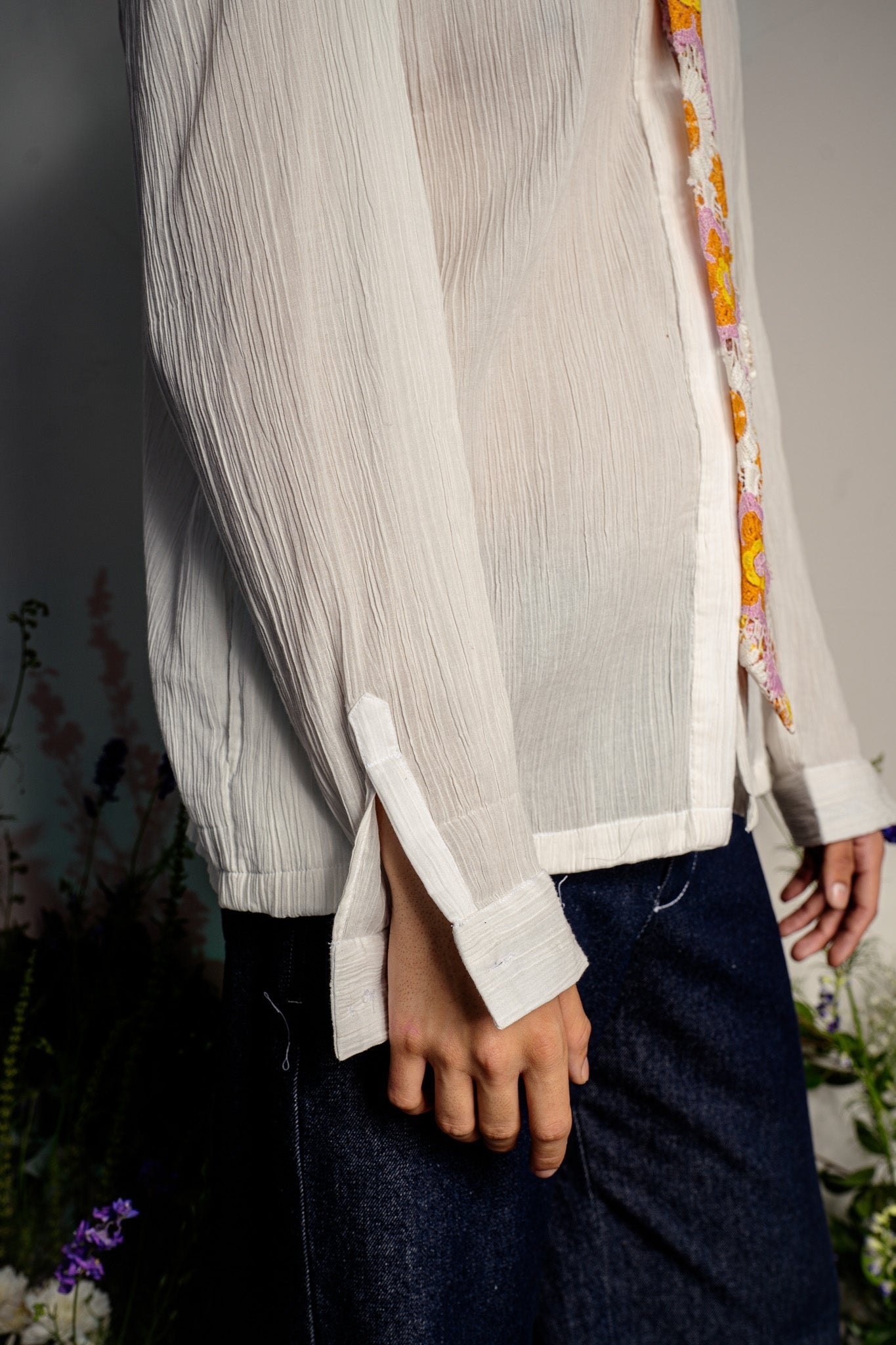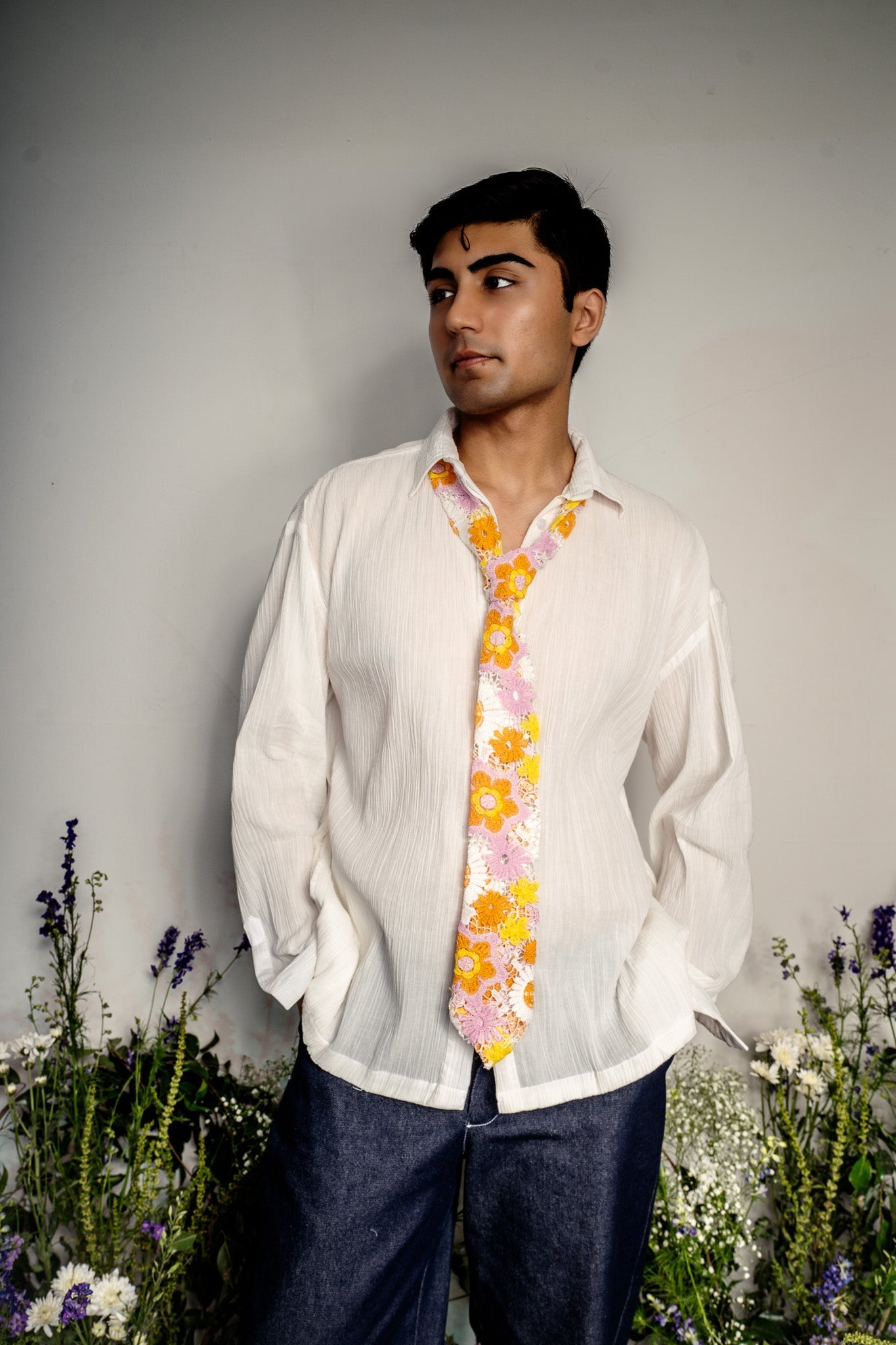 The First Man Shirt is a game-changer in the realm of white shirts. Crafted from cotton, it redefines the natural texture with intricate pleats and a subtle texture. A nice elevated basic to have!