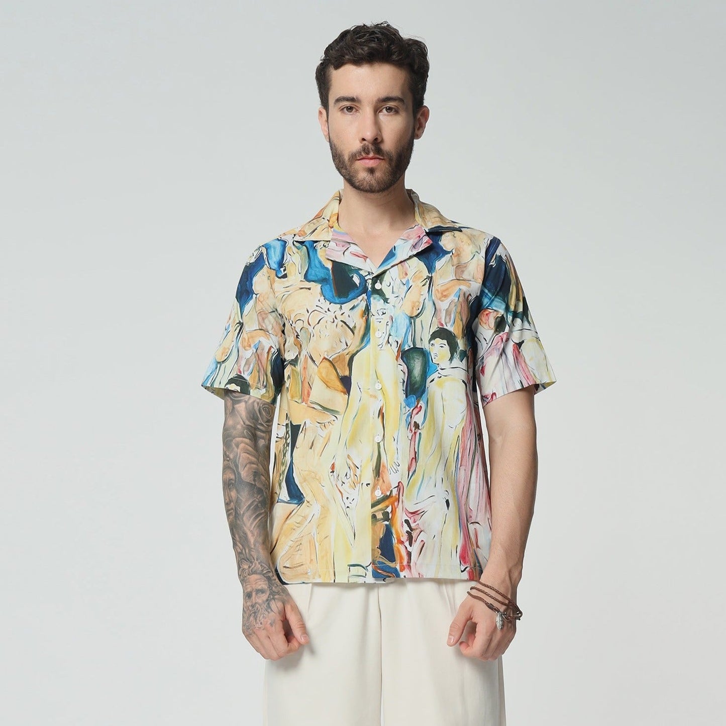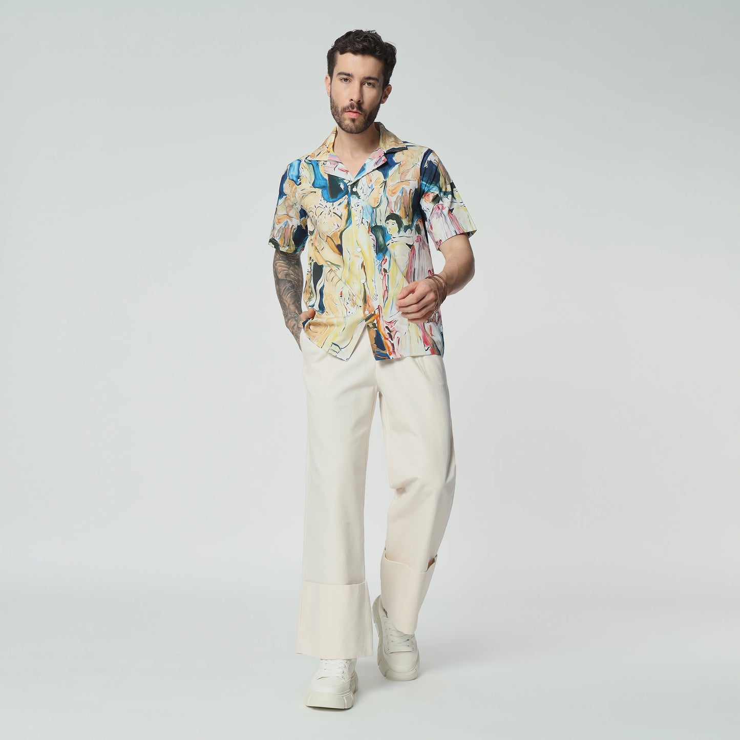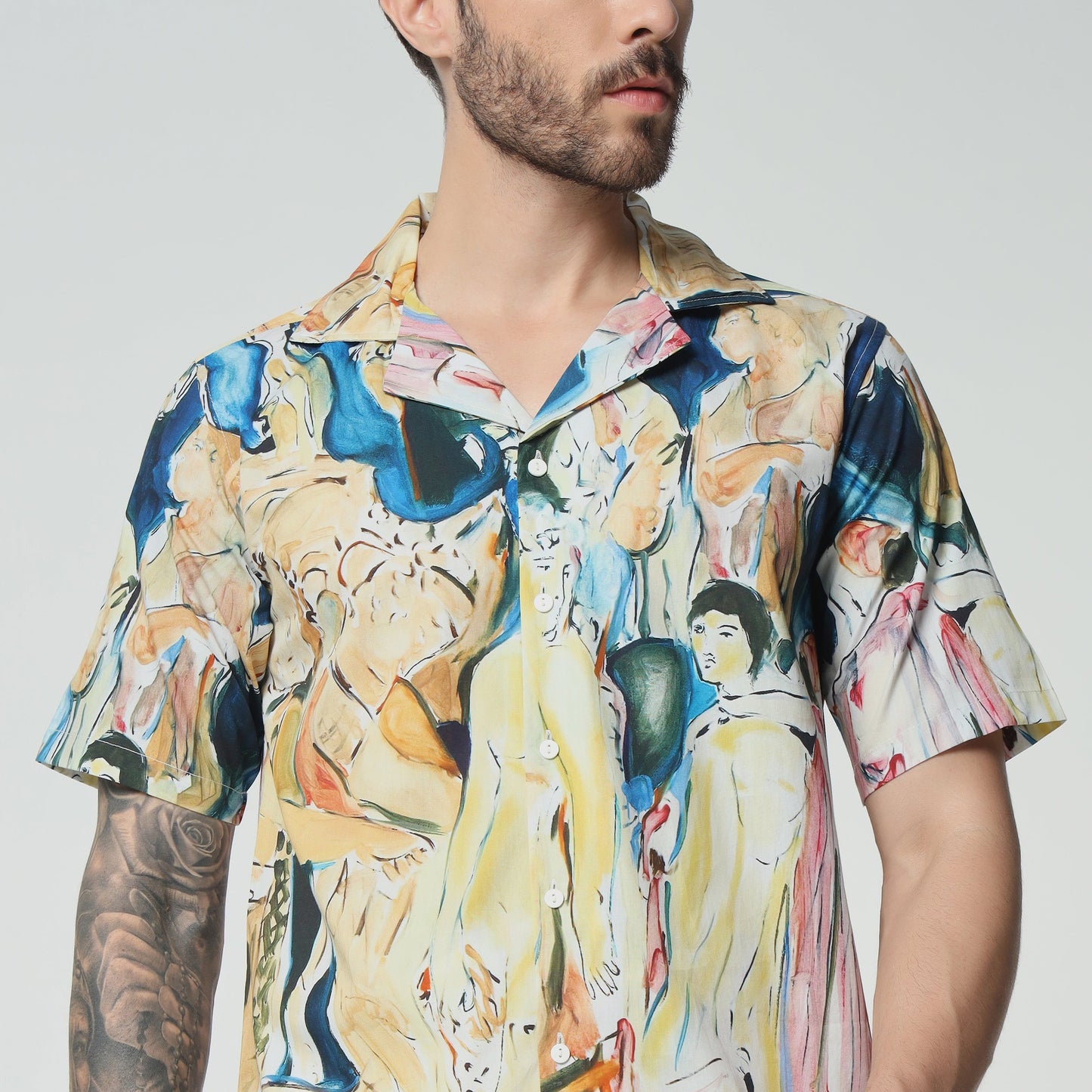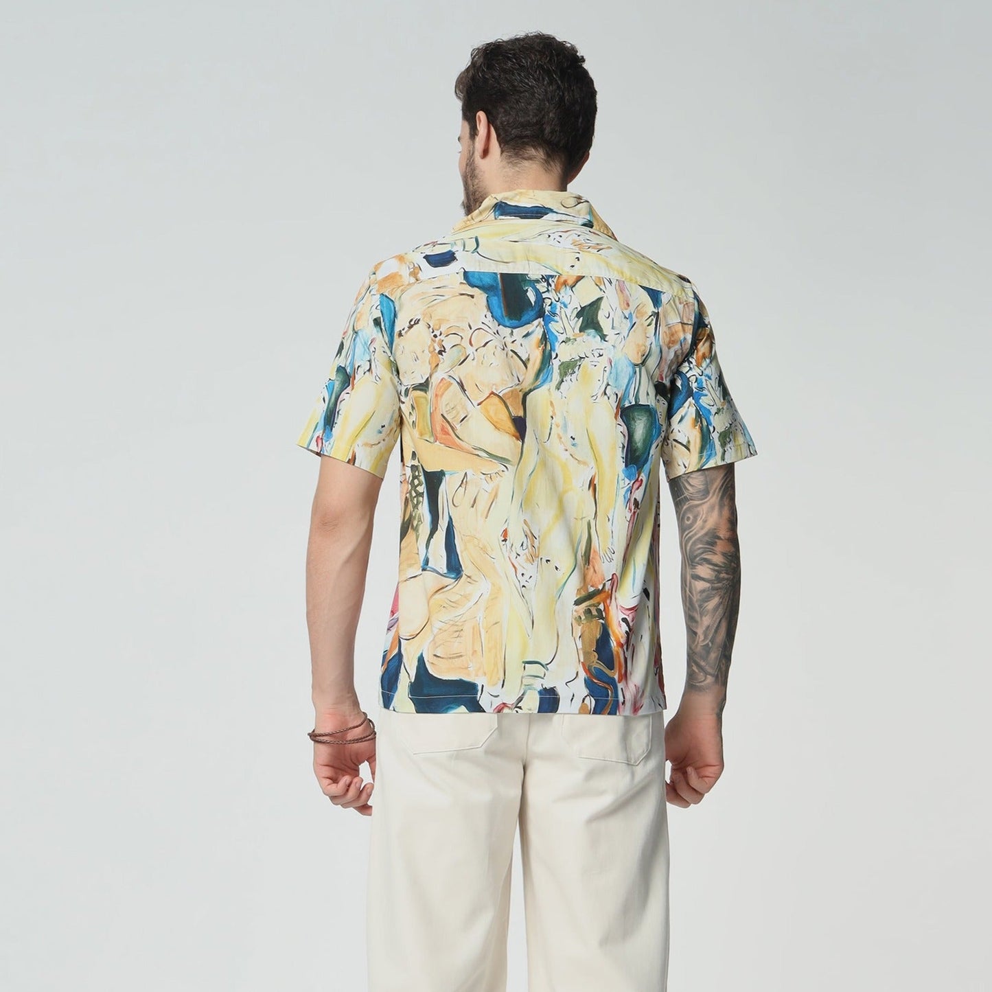 What's special about this shirt? Embrace timeless elegance with this cotton shirt, that echoes the grandeur of a vintage celebration. The design is a nostalgic homage to old-world festivities, filled with intricate patterns and classic charm. Wear it to evoke the spirit of bygone eras, where every moment was a lavish affair.