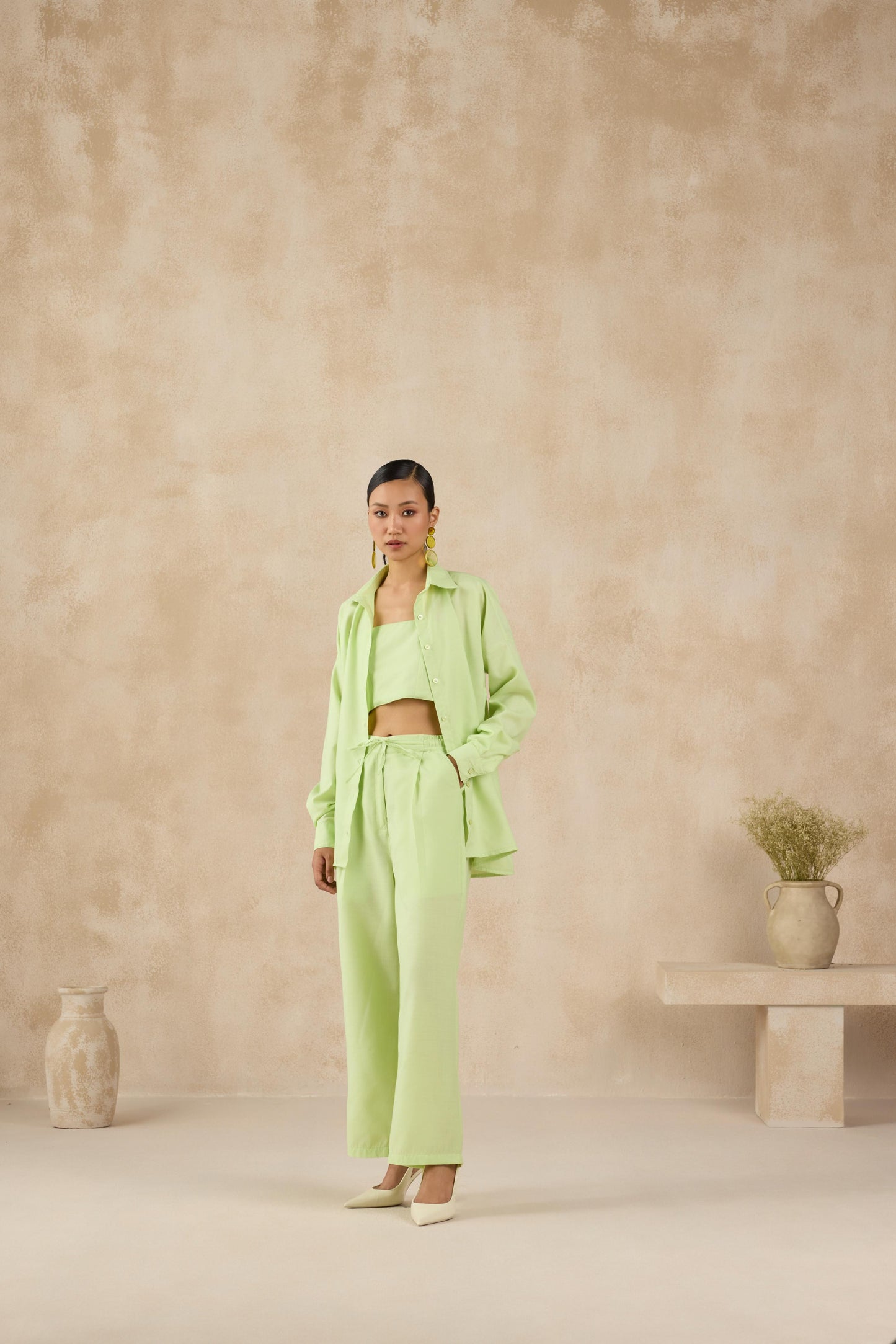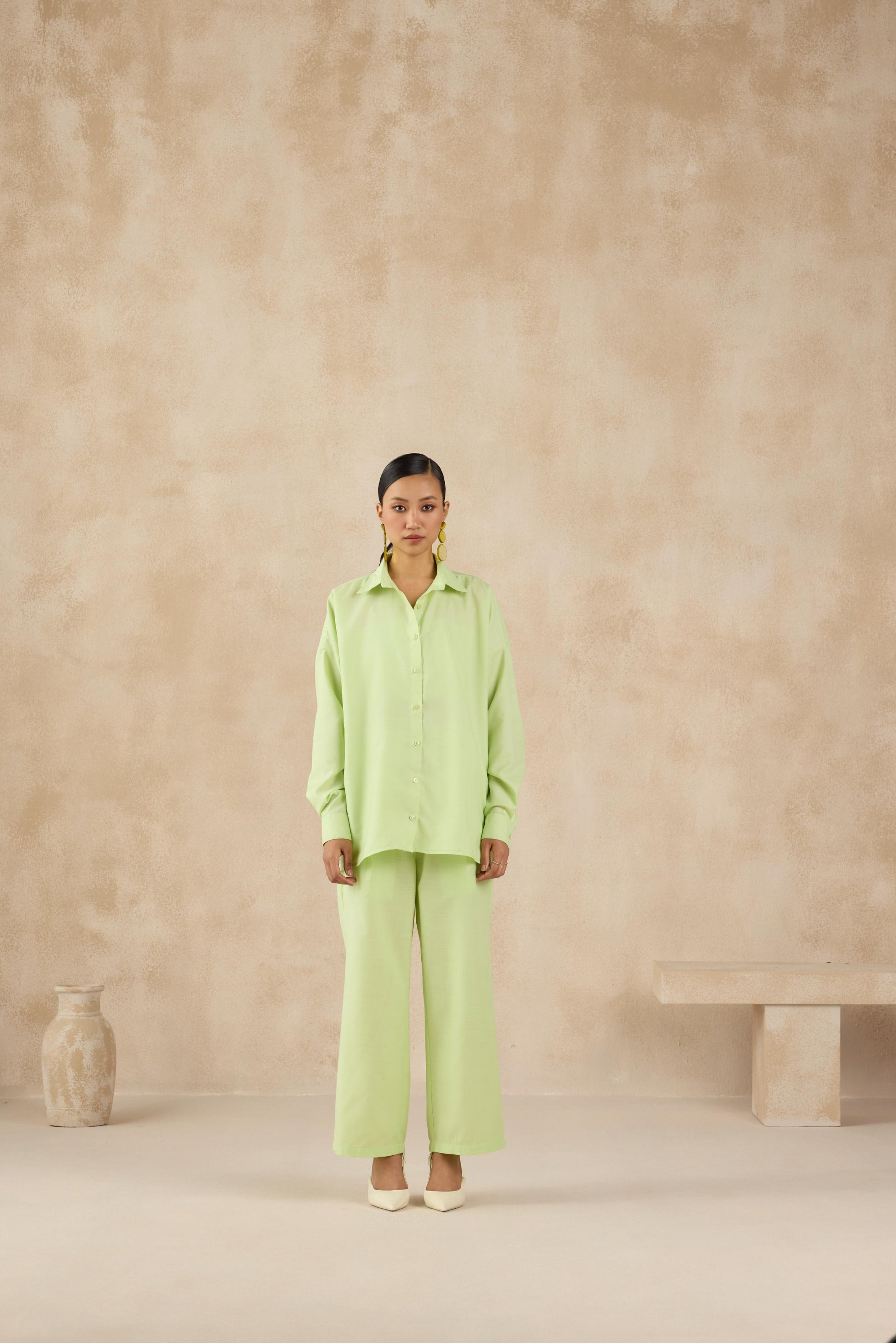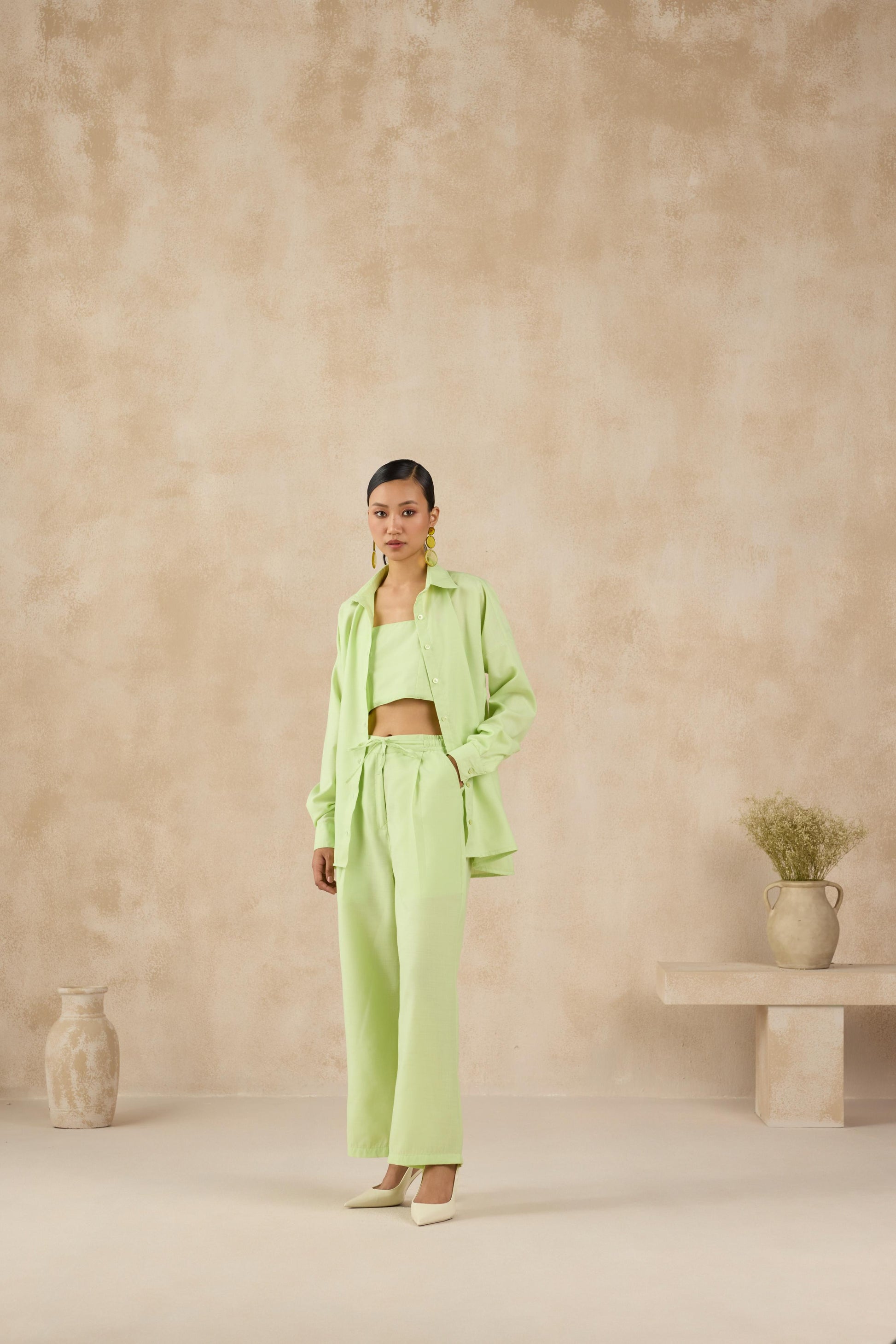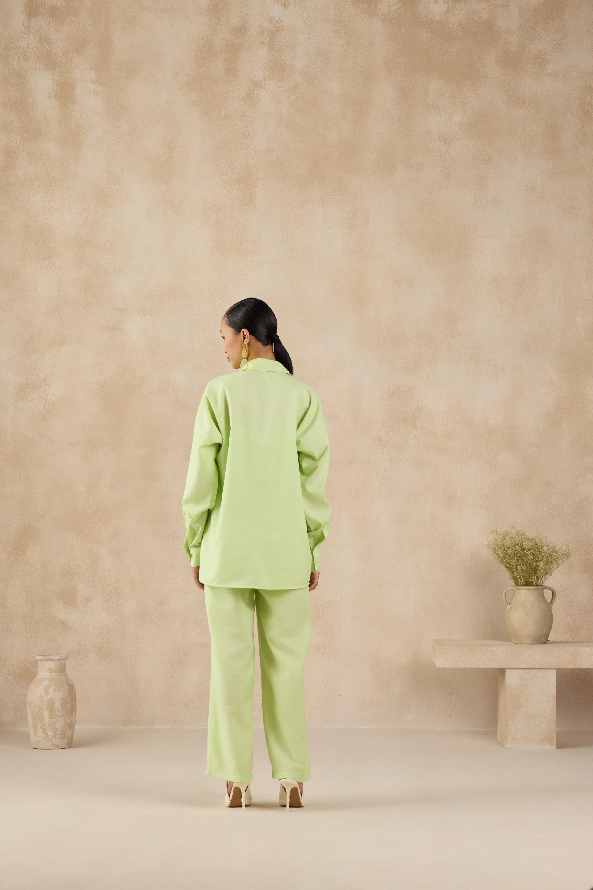 The Florida Set is the perfect mix of effortless style and breezy comfort! Crafted from a super breathable linen blend in a striking lime neon green, this co-ord features an oversized shirt paired with straight pants, making it the ultimate summer staple. Chic yet relaxed, it’s a statement piece that exudes confidence—and it's loved by Priyanka Chopra too!