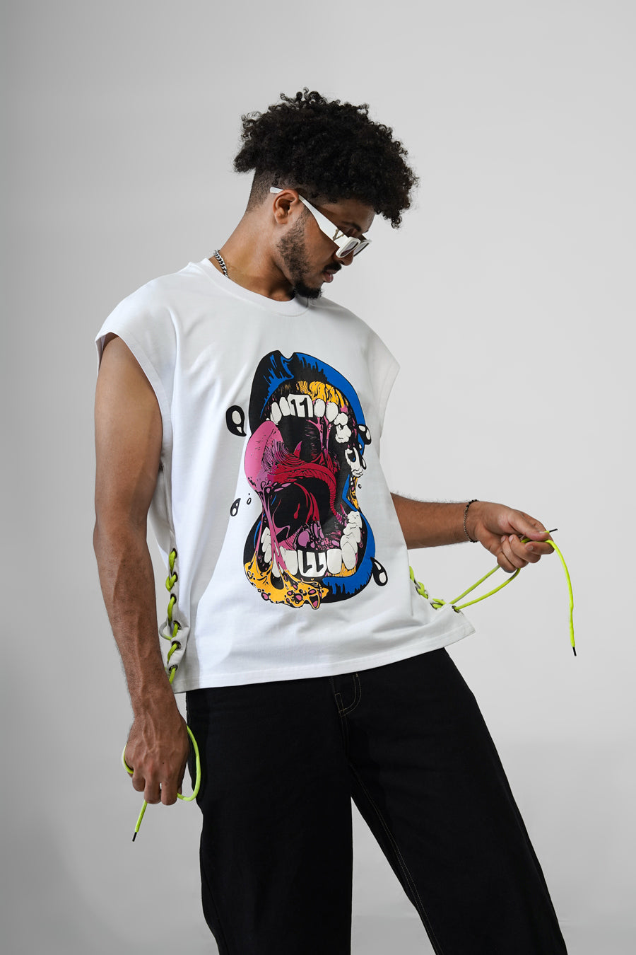 The Rolling Tongue Tank Top White by 3Eleven is a must-have for those who embrace a bold, music-inspired style. Crafted from premium cotton, this tank features an eye-catching graphic that pays tribute to rock and roll culture. Its relaxed fit ensures comfort and breathability, making it perfect for warm days, gym sessions, or laid-back outings.