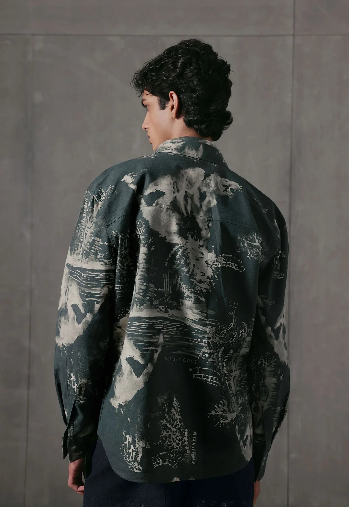 Relaxed-fit full sleeve shirt featuring a watercolour mythological landscape